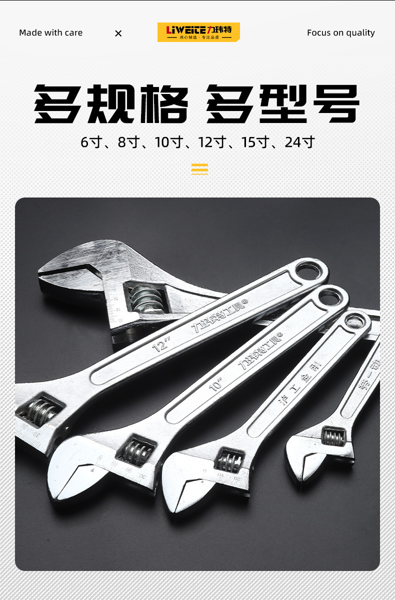 조정 가능한 렌치 크롬 도금 조정 가능한 렌치 도매 조명 핸들 조정 가능한 렌치 오픈 엔드 조정 가능한 렌치 공장 공급스토어 가기