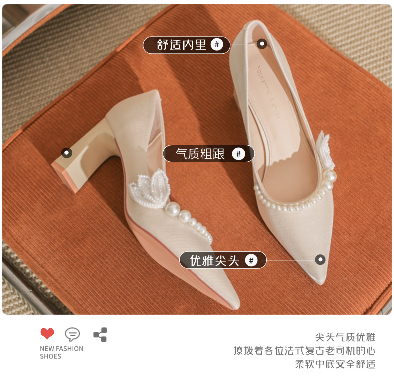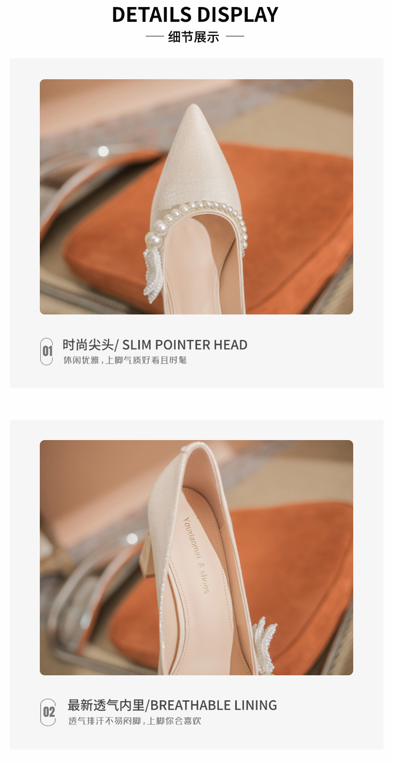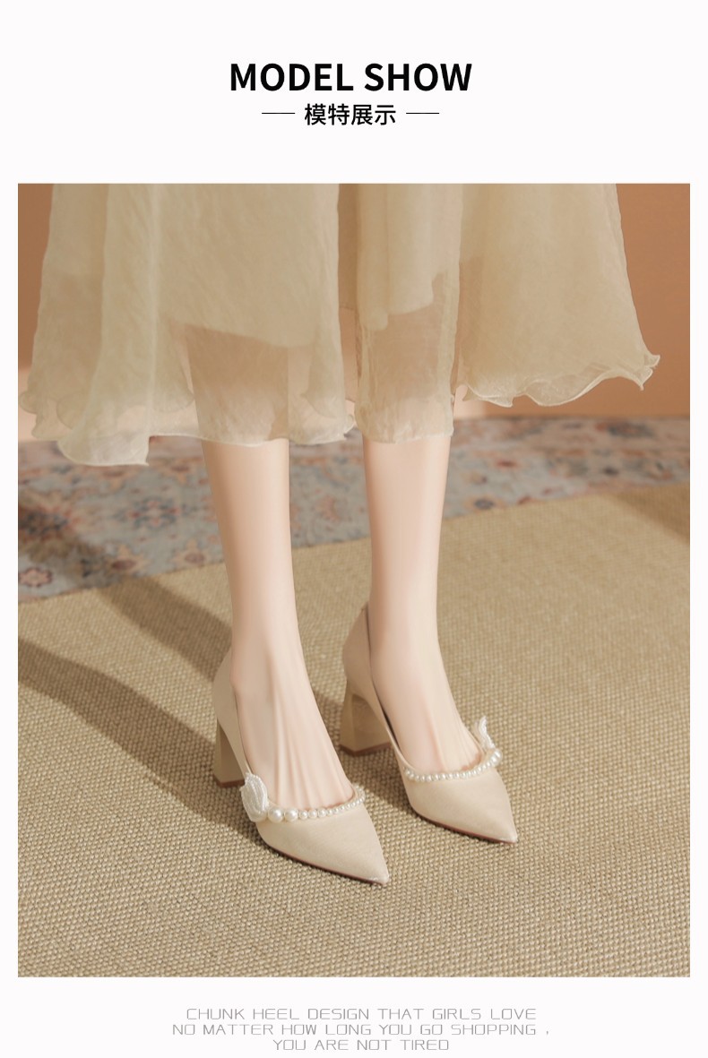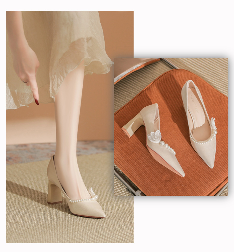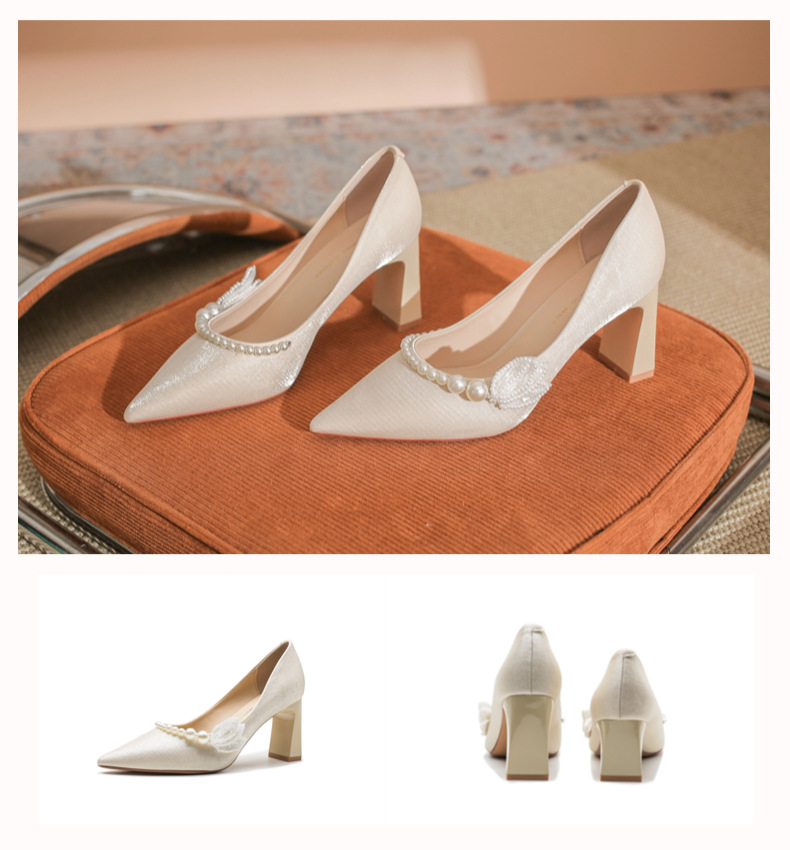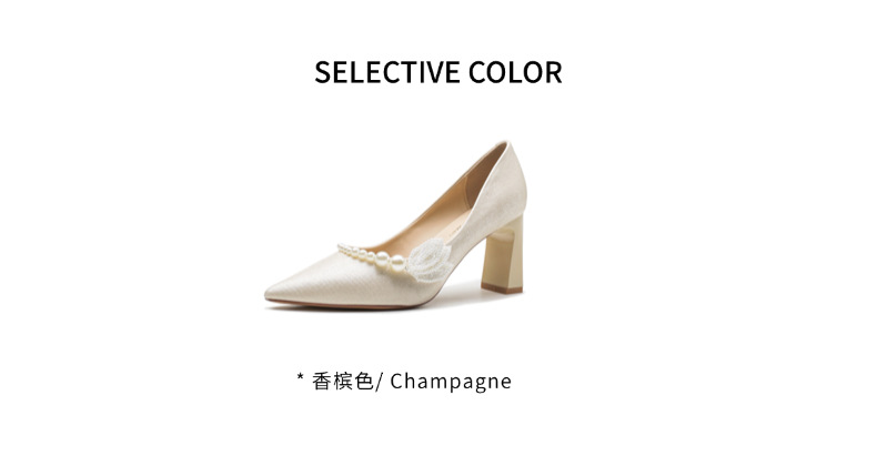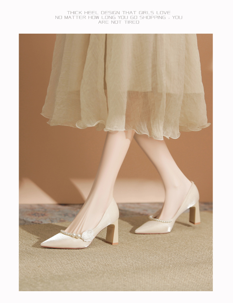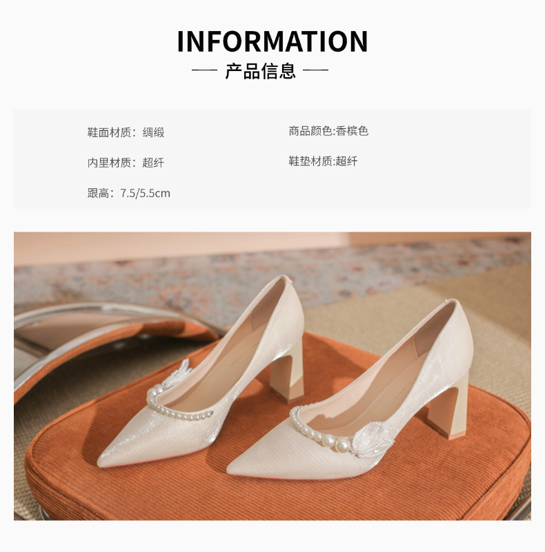 7777-1 하이힐 여성용 두꺼운 힐 웨딩 신발 진주 새틴 피곤하지 않은 발 샴페인 뾰족한 신발 신부 들러리 신발스토어 가기