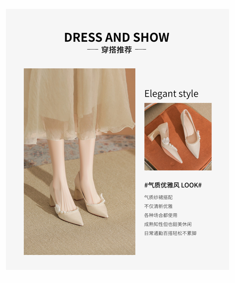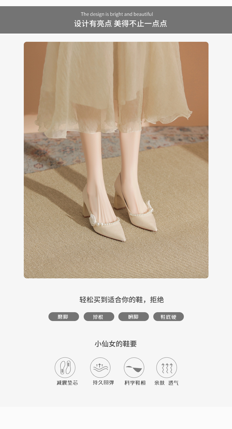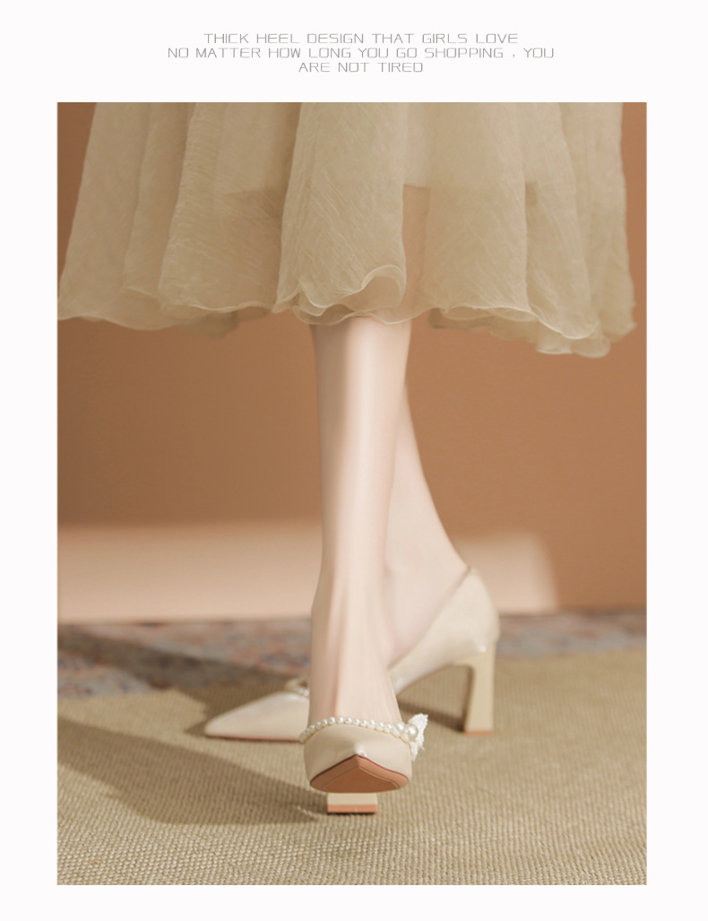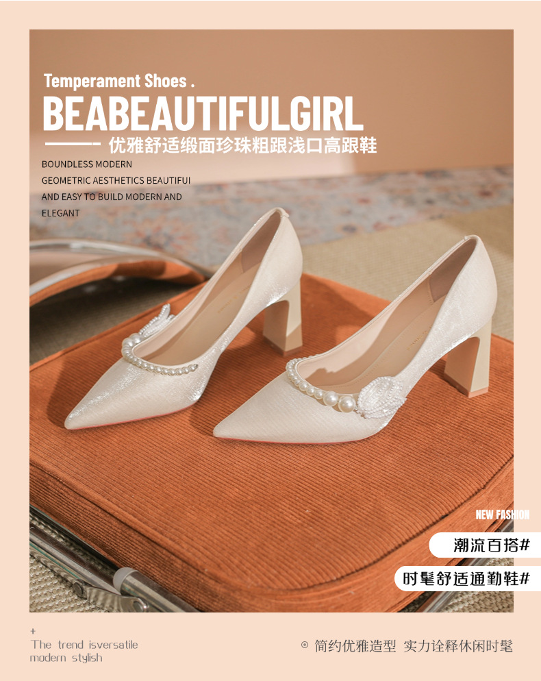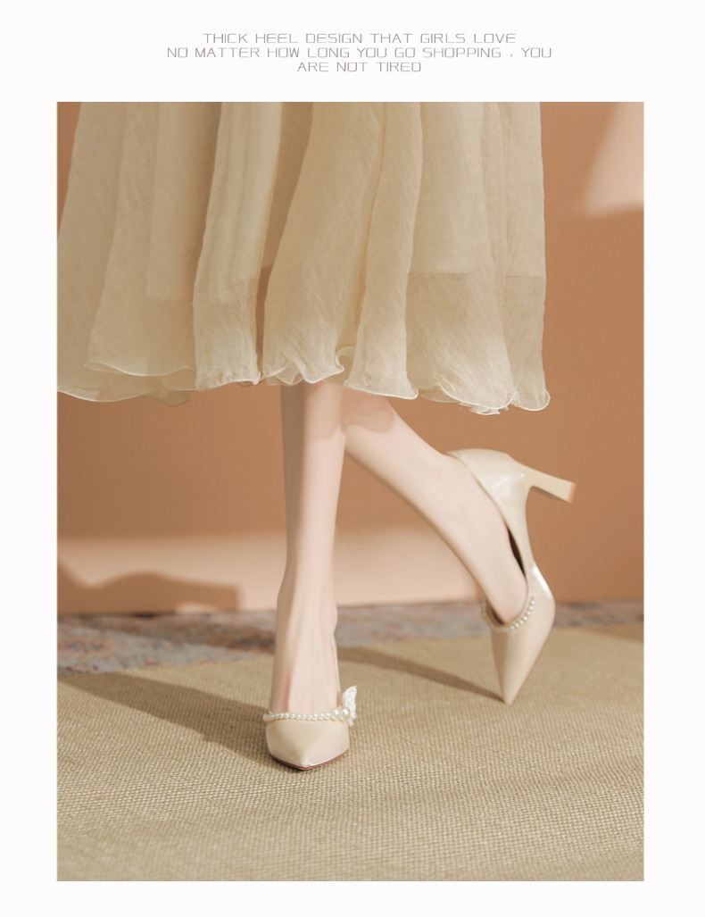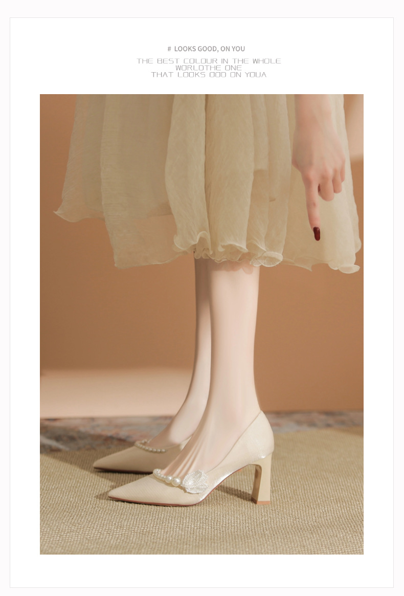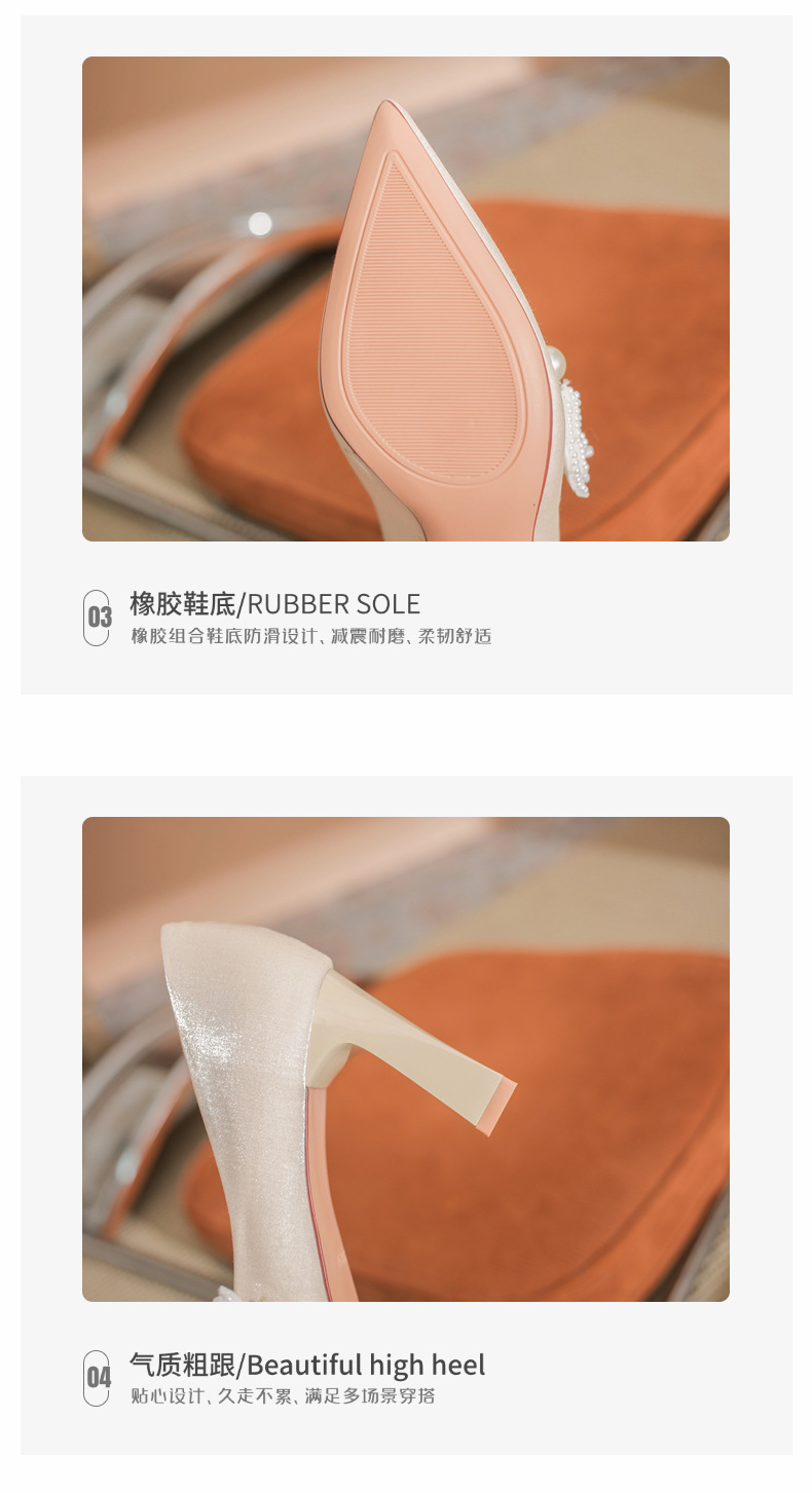 7777-1 하이힐 여성용 두꺼운 힐 웨딩 신발 진주 새틴 피곤하지 않은 발 샴페인 뾰족한 신발 신부 들러리 신발스토어 가기
