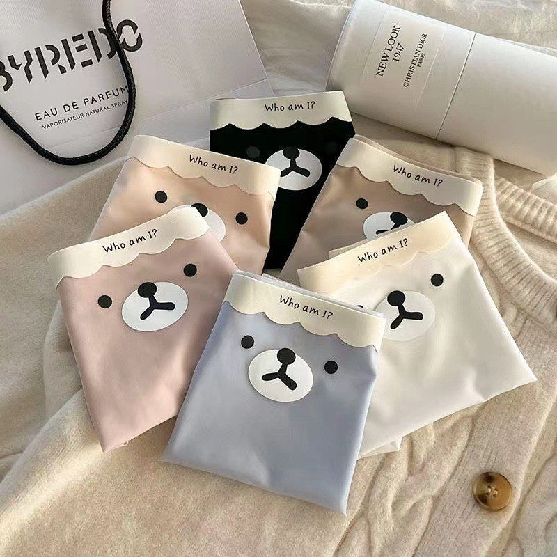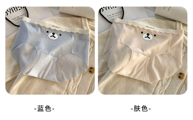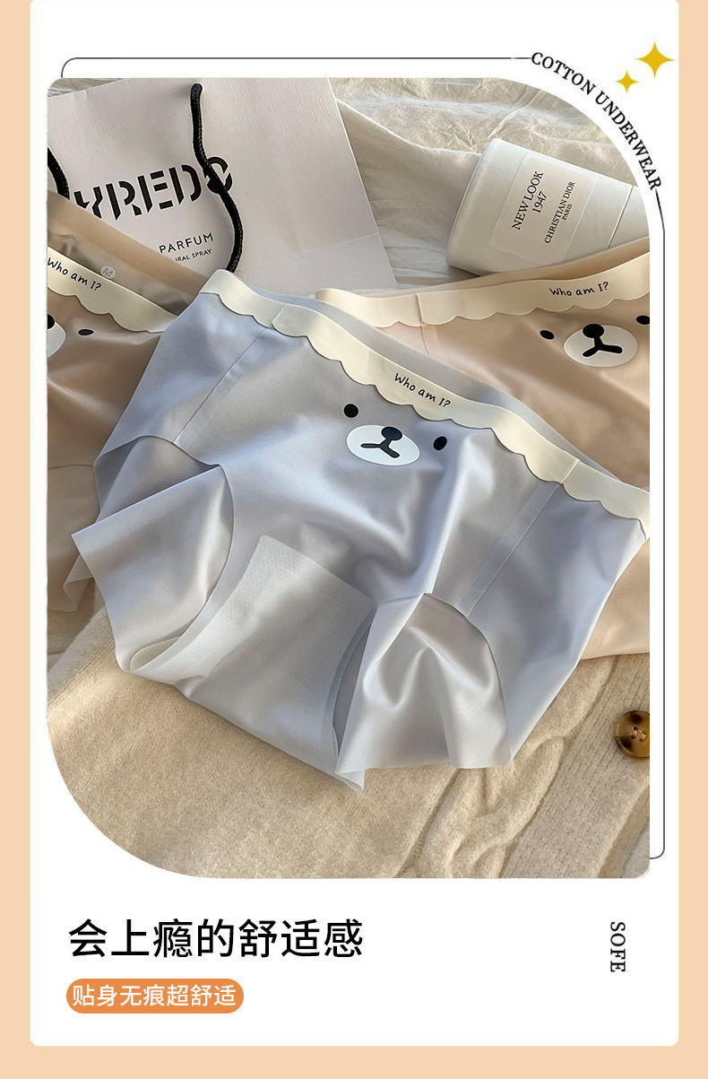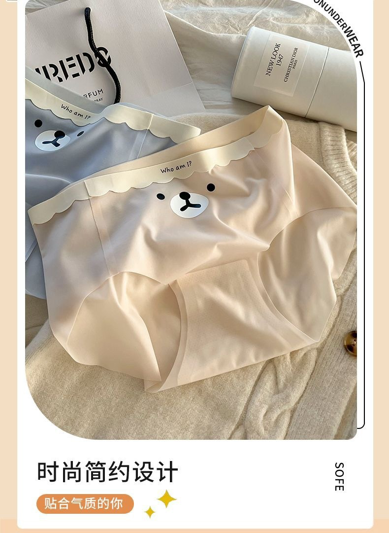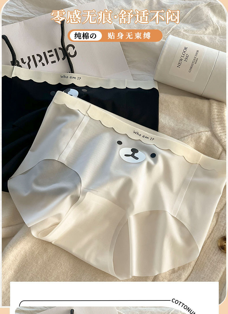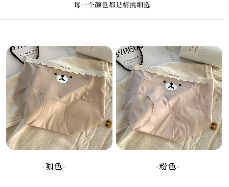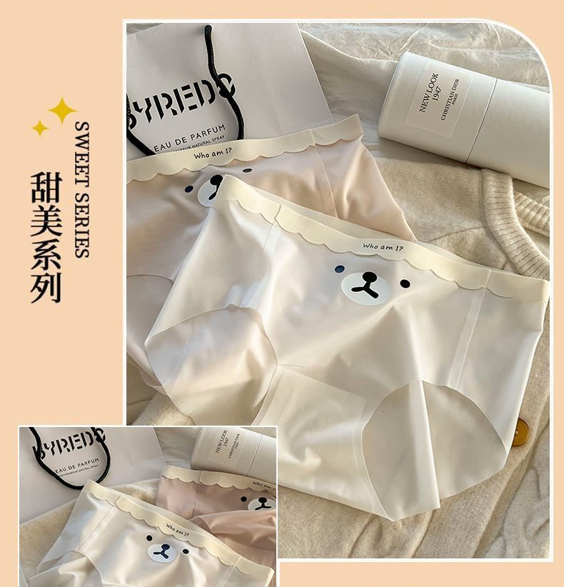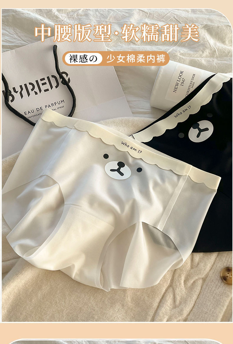 추적없는 달콤한 속옷 여성의 인쇄 귀여운 곰 중간 허리 코튼 Crotch 빠른 건조 통기성 여성의 삼각형 반바지스토어 가기