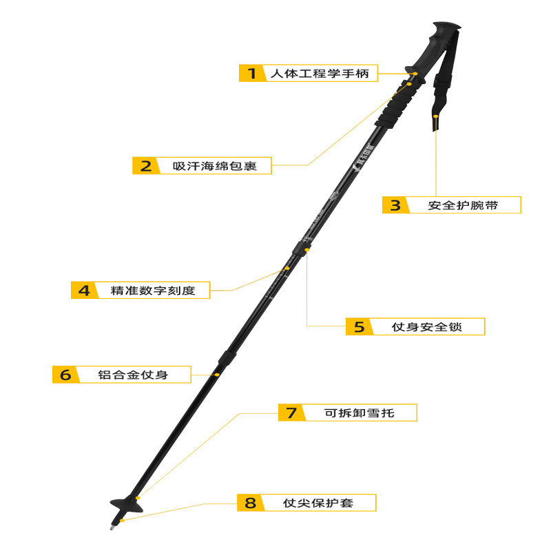 야외 하이킹 스틱 탄소 초경량 텔레스코픽 폴딩 스키 미끄럼 방지 클러치 다기능 하이킹 장비