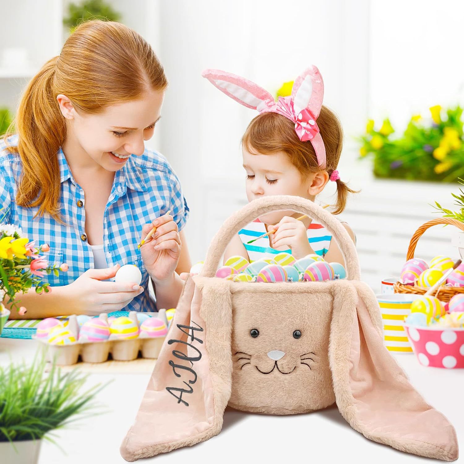 봉제 토끼 가방 부활절 가방 어린이 토트 가방 토끼 가방 부활절 바구니 플란넬 토트 백 diy스토어 가기