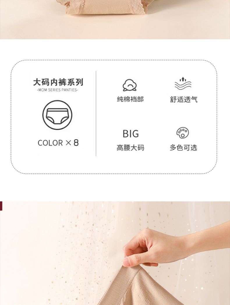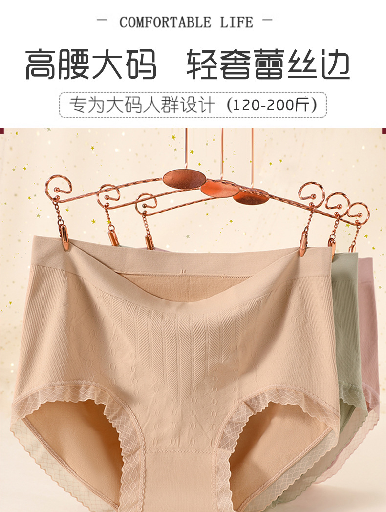 플러스 사이즈 200kg 통통녀 허리 속옷 여성의 단색 통기성 코튼 확장 가랑이 배 엉덩이 삼각형 반바지
