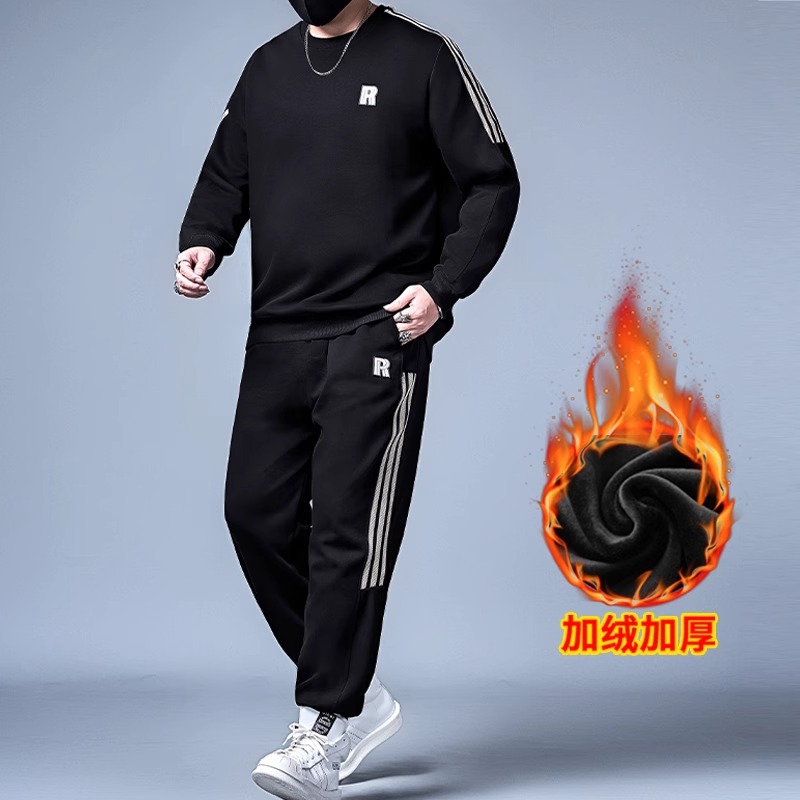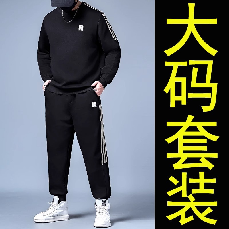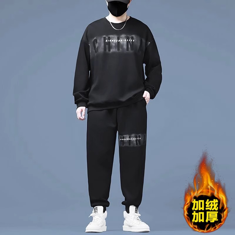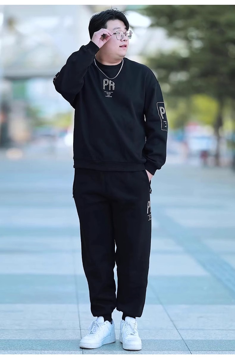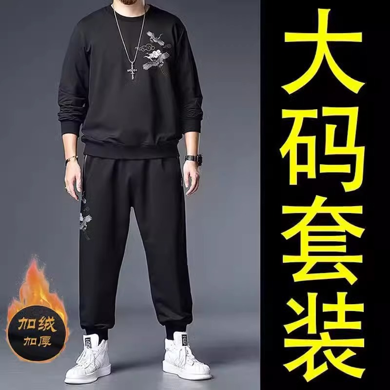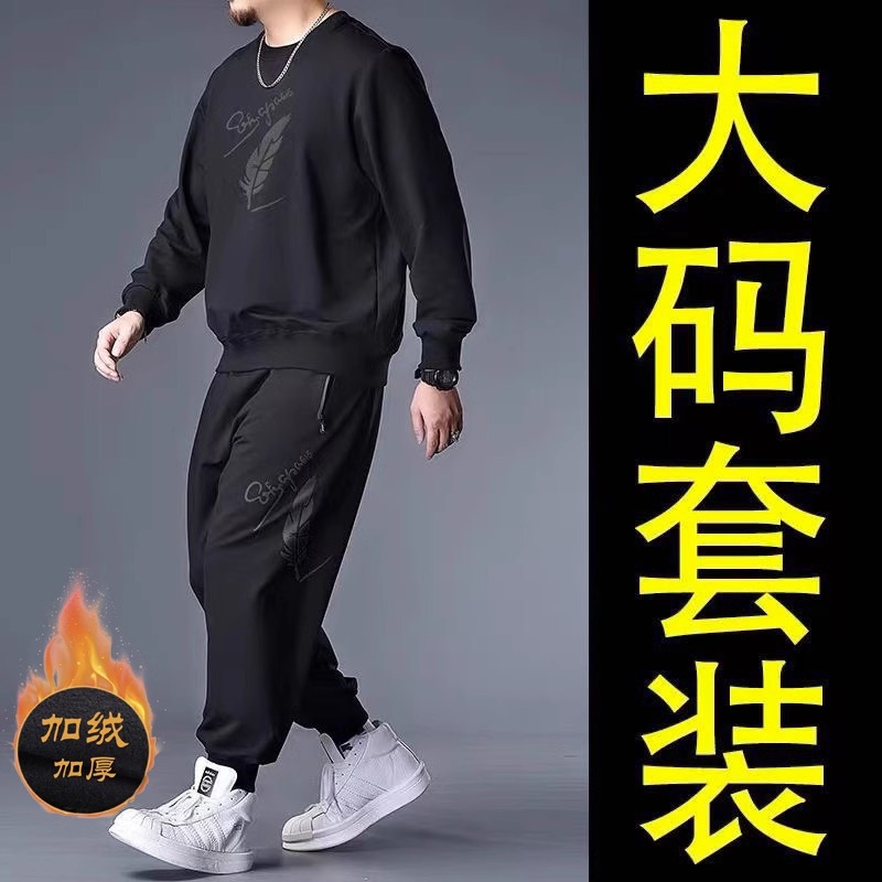 플러스 사이즈 스웨터 세트 남성 가을과 겨울 남성 플러스 지방 증가 기모 레저 스포츠웨어 2024 새로운 지방 남성 의류스토어 가기