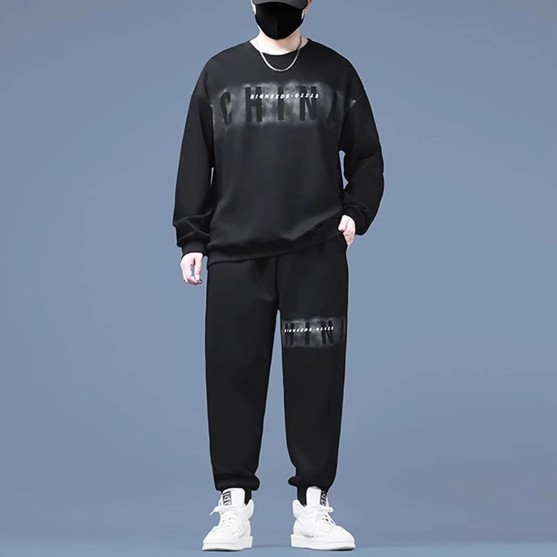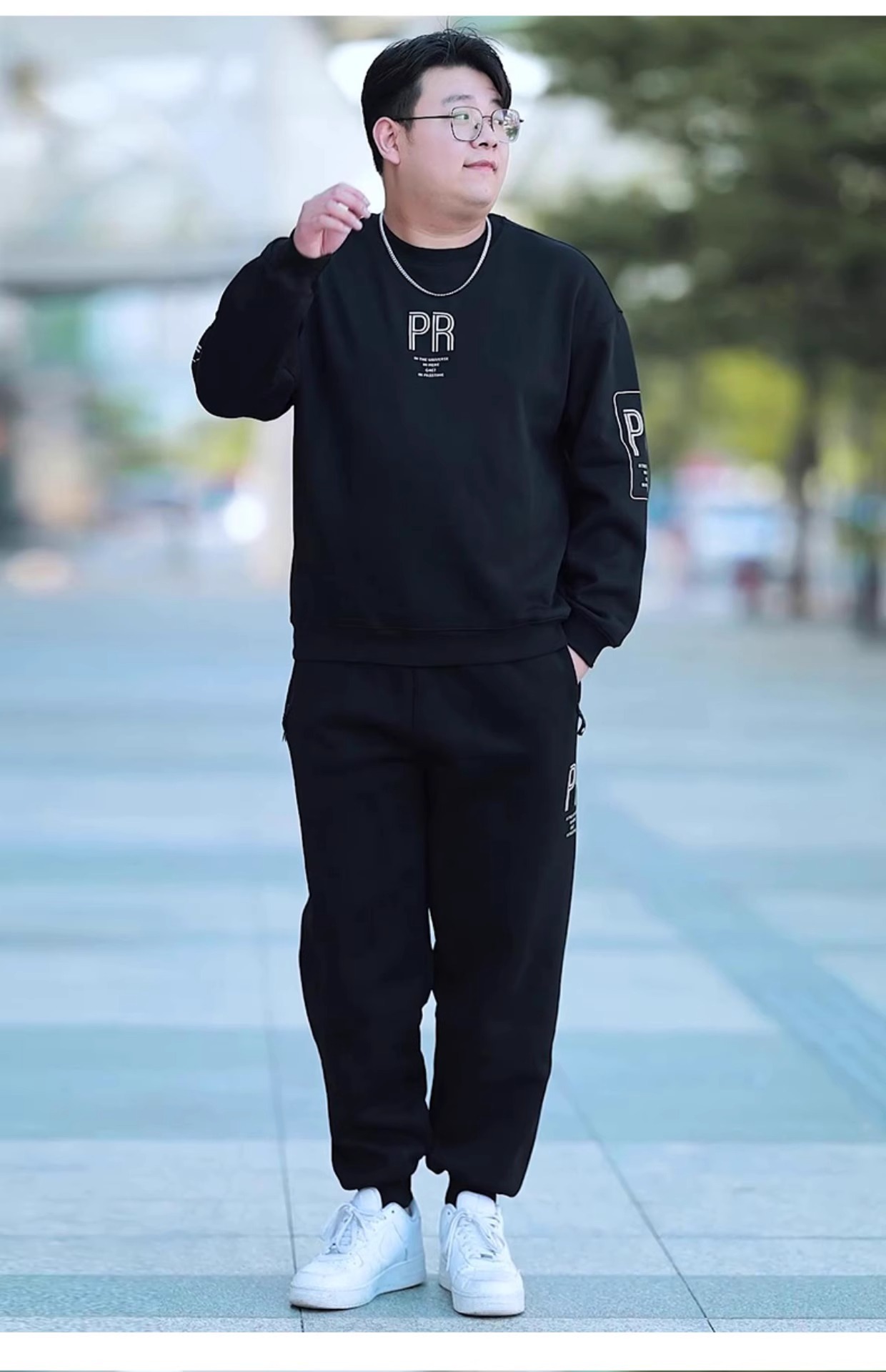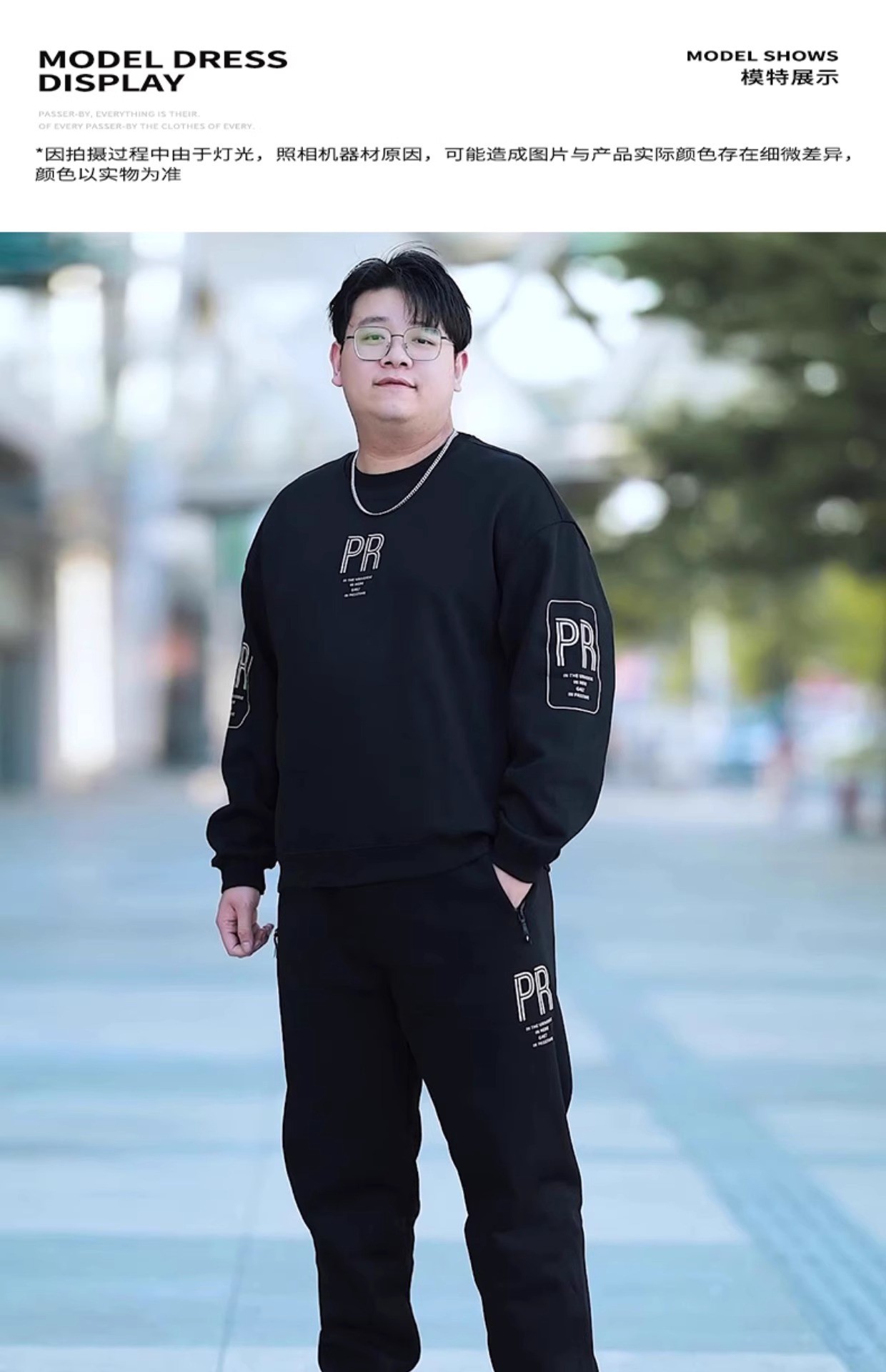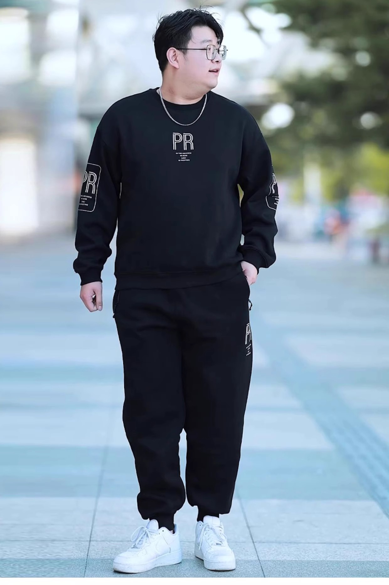 플러스 사이즈 스웨터 세트 남성 가을과 겨울 남성 플러스 지방 증가 기모 레저 스포츠웨어 2024 새로운 지방 남성 의류스토어 가기