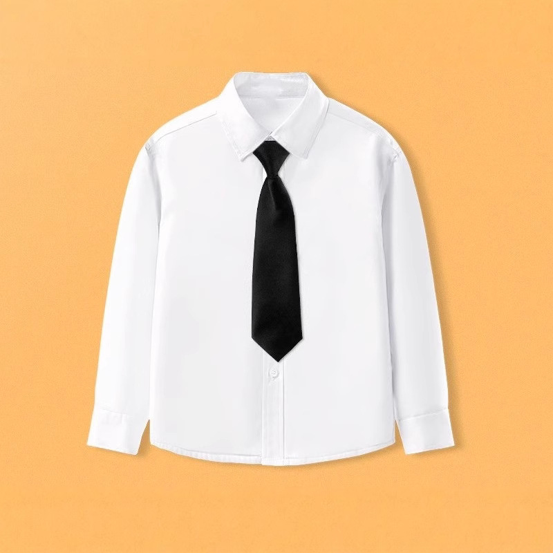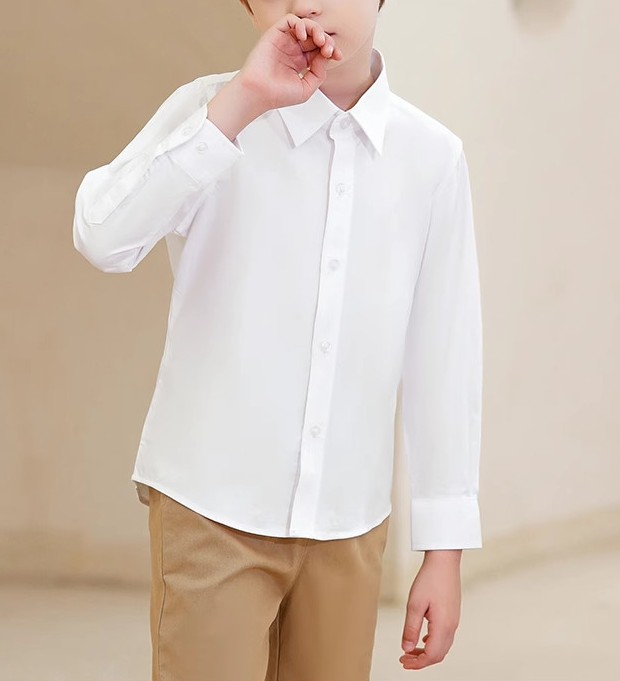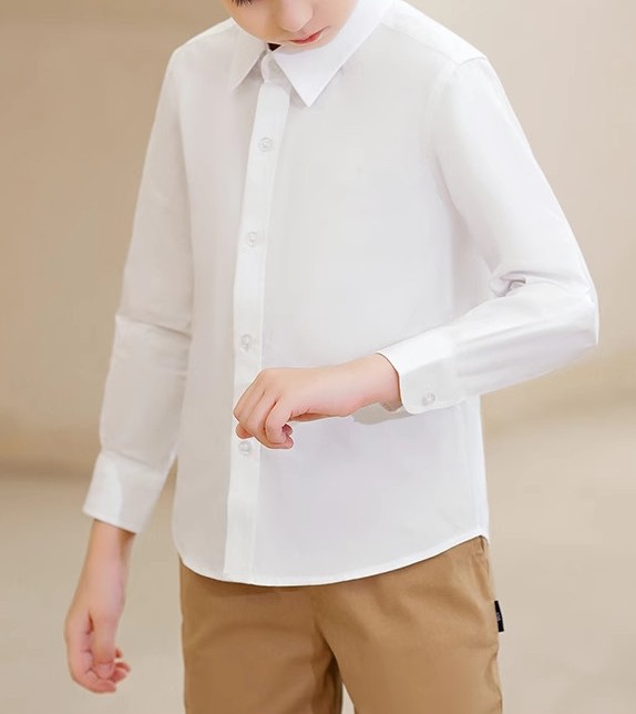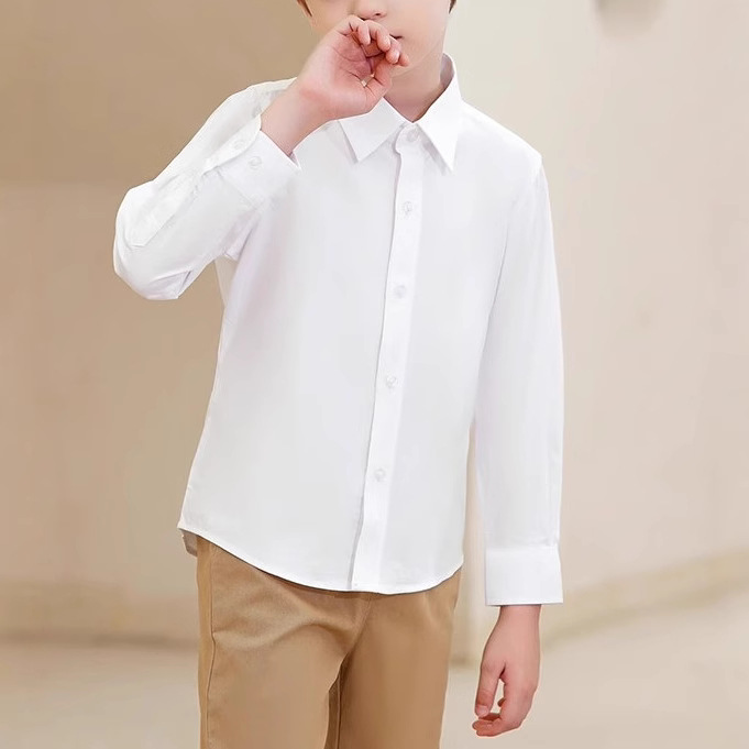 소년 중다 어린이 솔리드 컬러 슬림 핏 긴팔 셔츠 봄과 가을 학생 공연 의류 옷깃 올매치 화이트 셔츠 트렌디스토어 가기