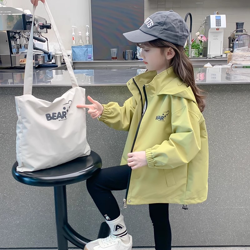 소녀 코트 봄과 가을 2025 새로운 스타일 충전 옷 소녀 봄 후드 탑 어린이 봄 얇은 옷스토어 가기