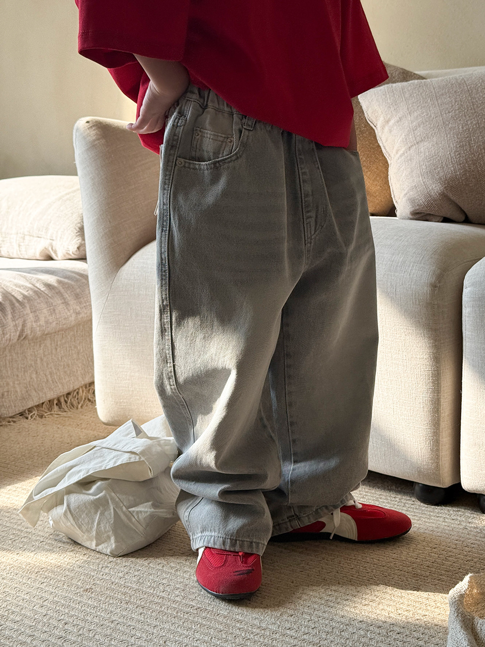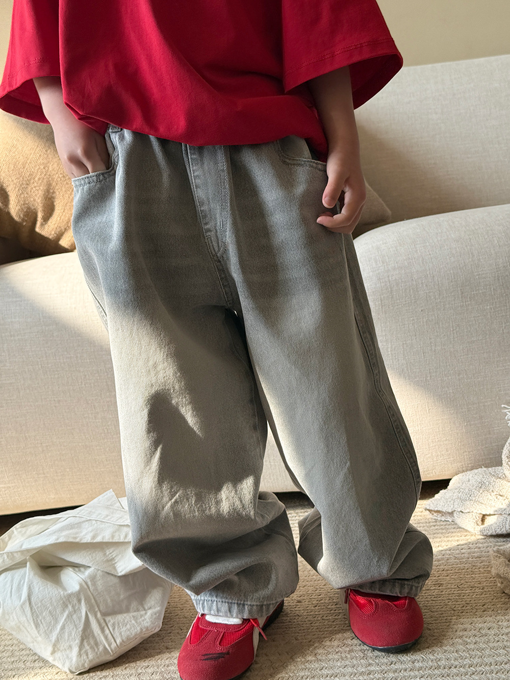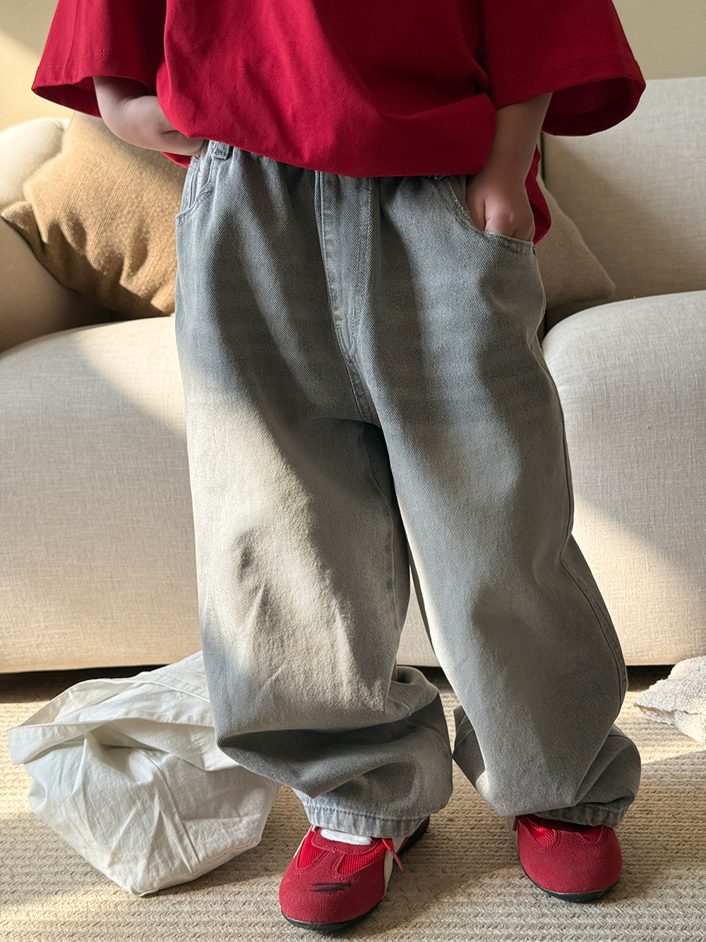 소년 바지 봄과 여름 2025 새로운 어린이 한국식 올매치 청바지 여성 아기의 캐주얼 느슨한 바지스토어 가기