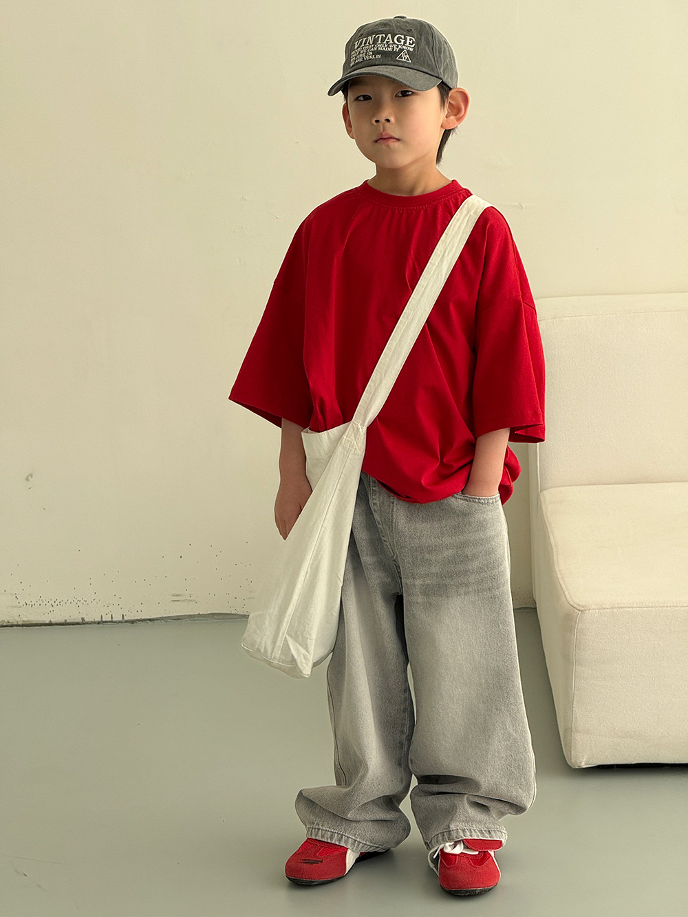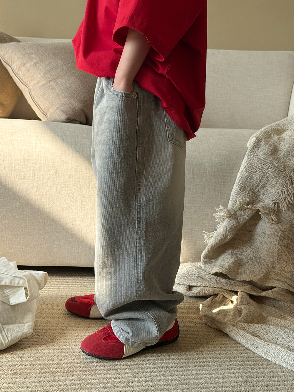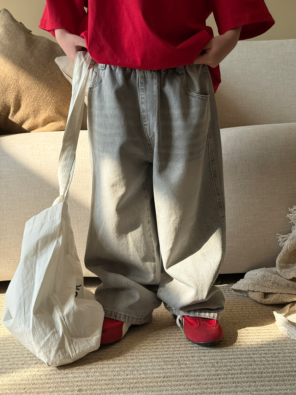 소년 바지 봄과 여름 2025 새로운 어린이 한국식 올매치 청바지 여성 아기의 캐주얼 느슨한 바지스토어 가기
