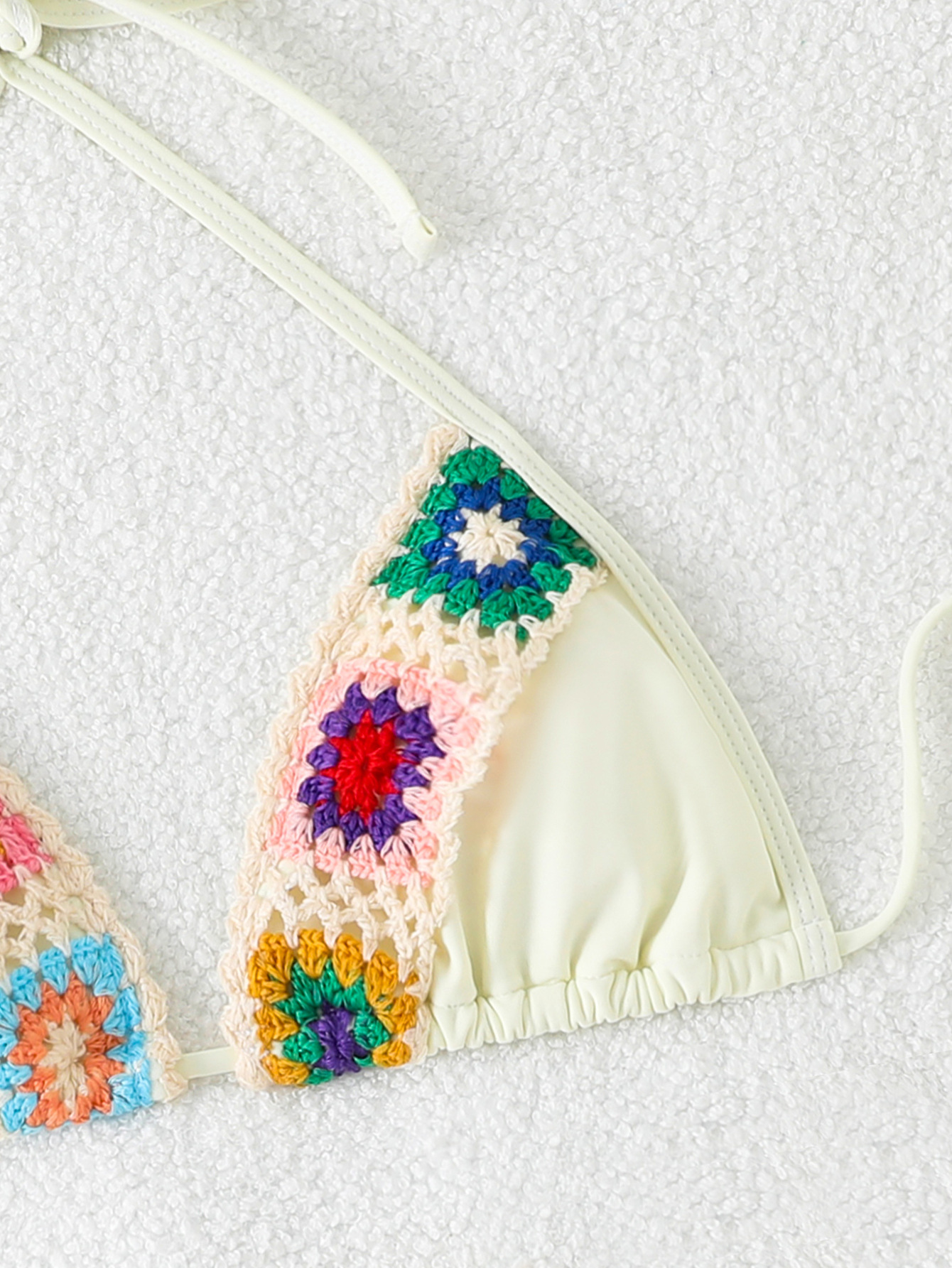 2025 유럽 및 미국 수영복 여성 시장 비키니 니트 레이스 업 레트로 3 점 비키니 대외 무역 수영복스토어 가기