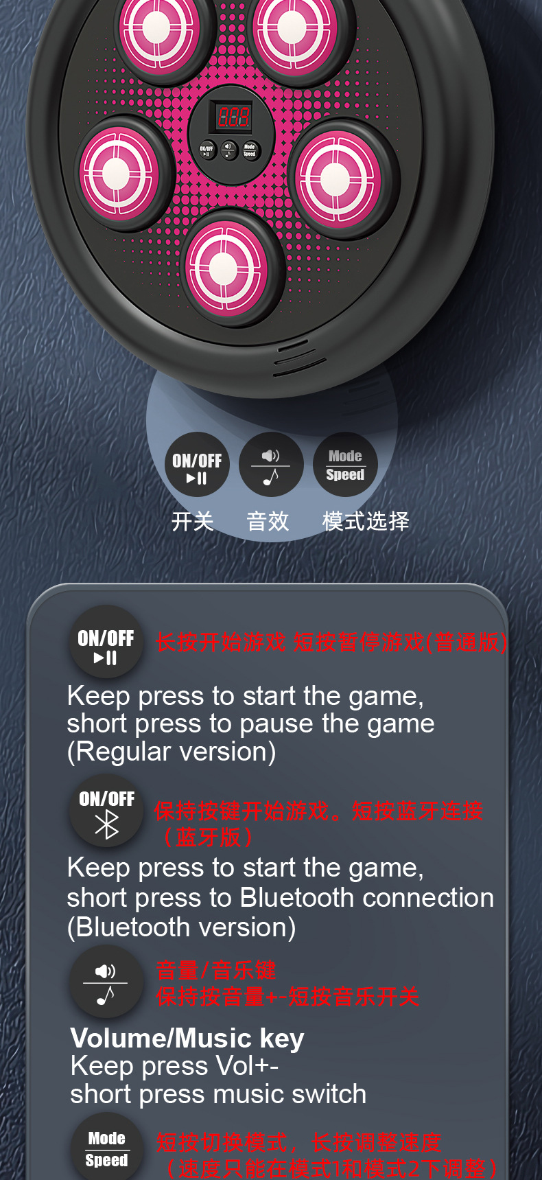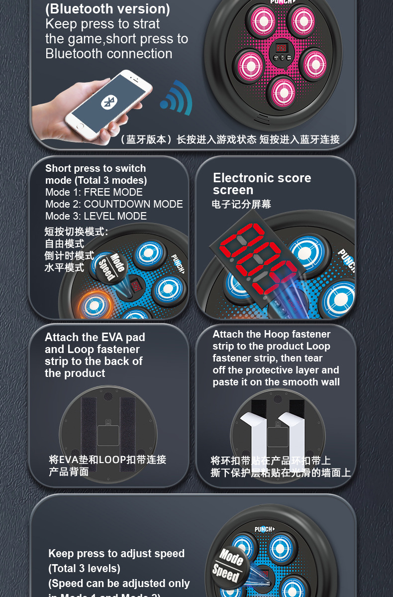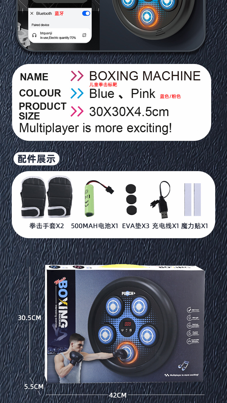 品名:SJL3610音乐拳击靶(蓝牙版:蓝/粉)