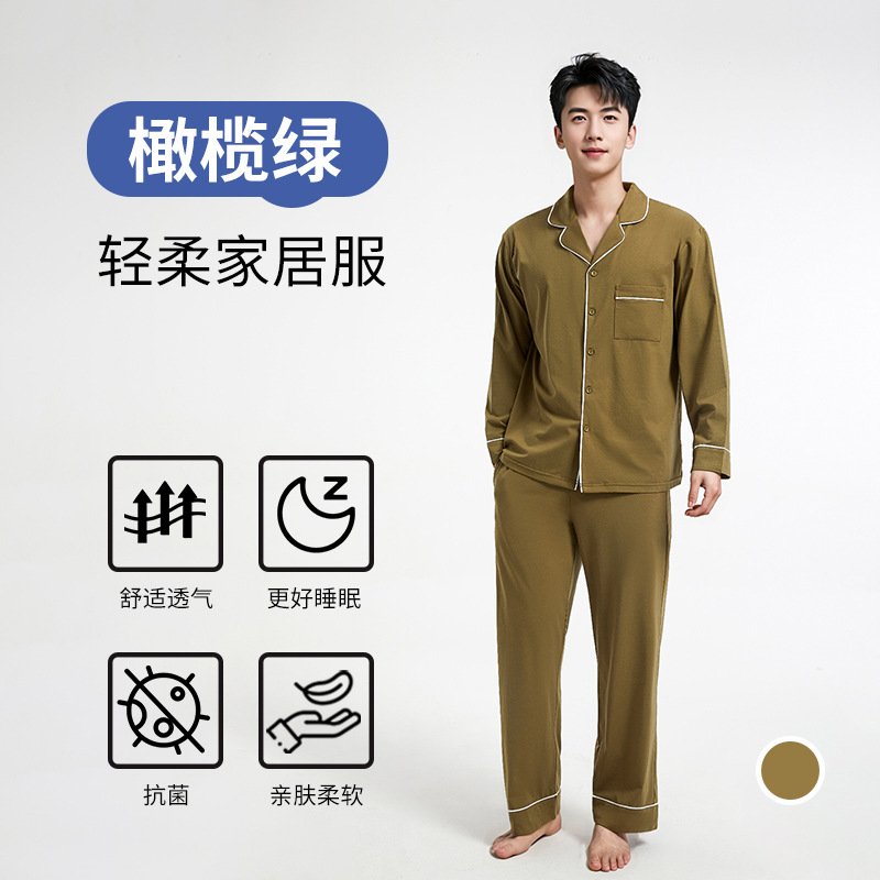 봄, 가을용 코마면 남성 홈웨어, 라펠 칼라 긴팔 긴바지 세트, 외출복으로도 착용 가능, 항균 잠옷, 남성용 항균 통기성 잠옷스토어 가기