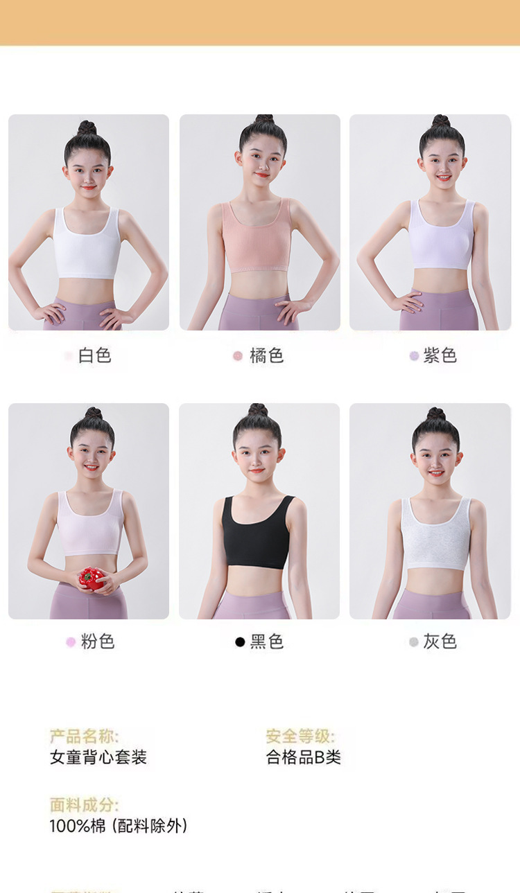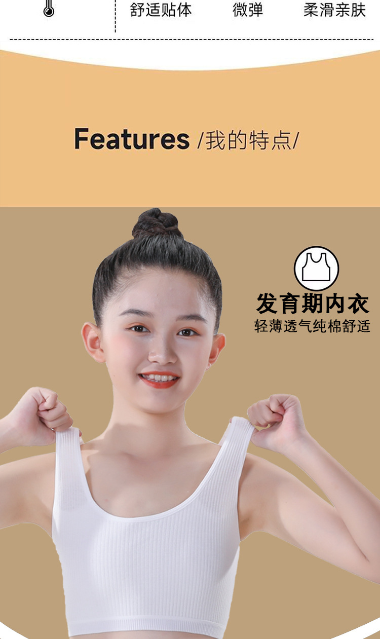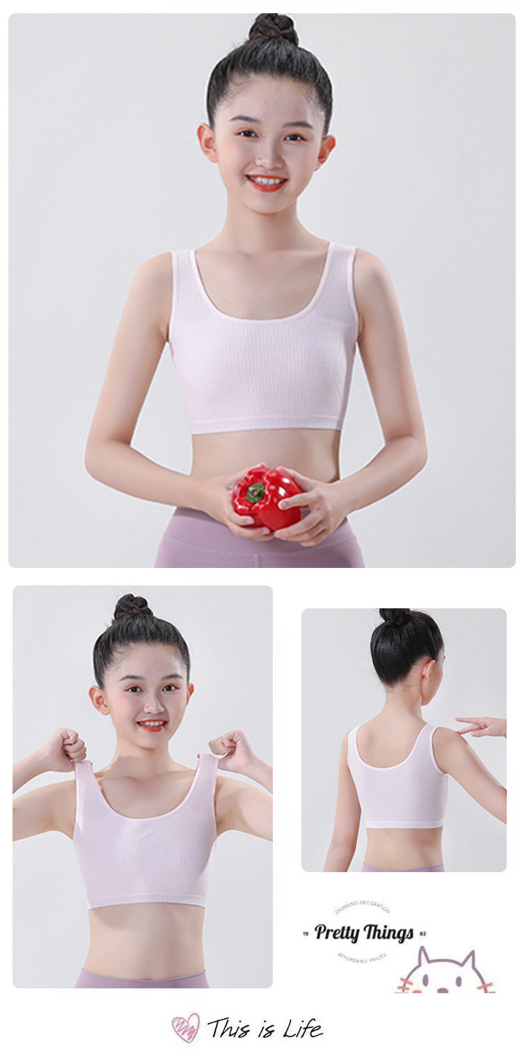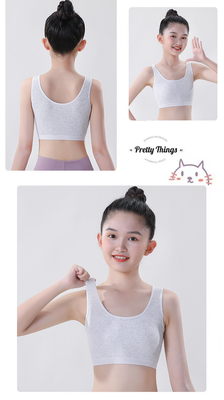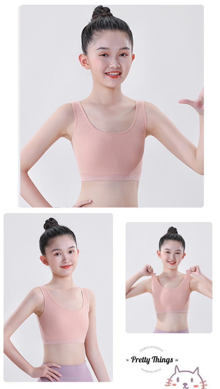 8-15 세 소녀 면화 개발 기간 더블 레이어 작은 조끼 속옷 초등 및 중등 학교 학생 강철 링 튜브가없는 초기 소녀스토어 가기