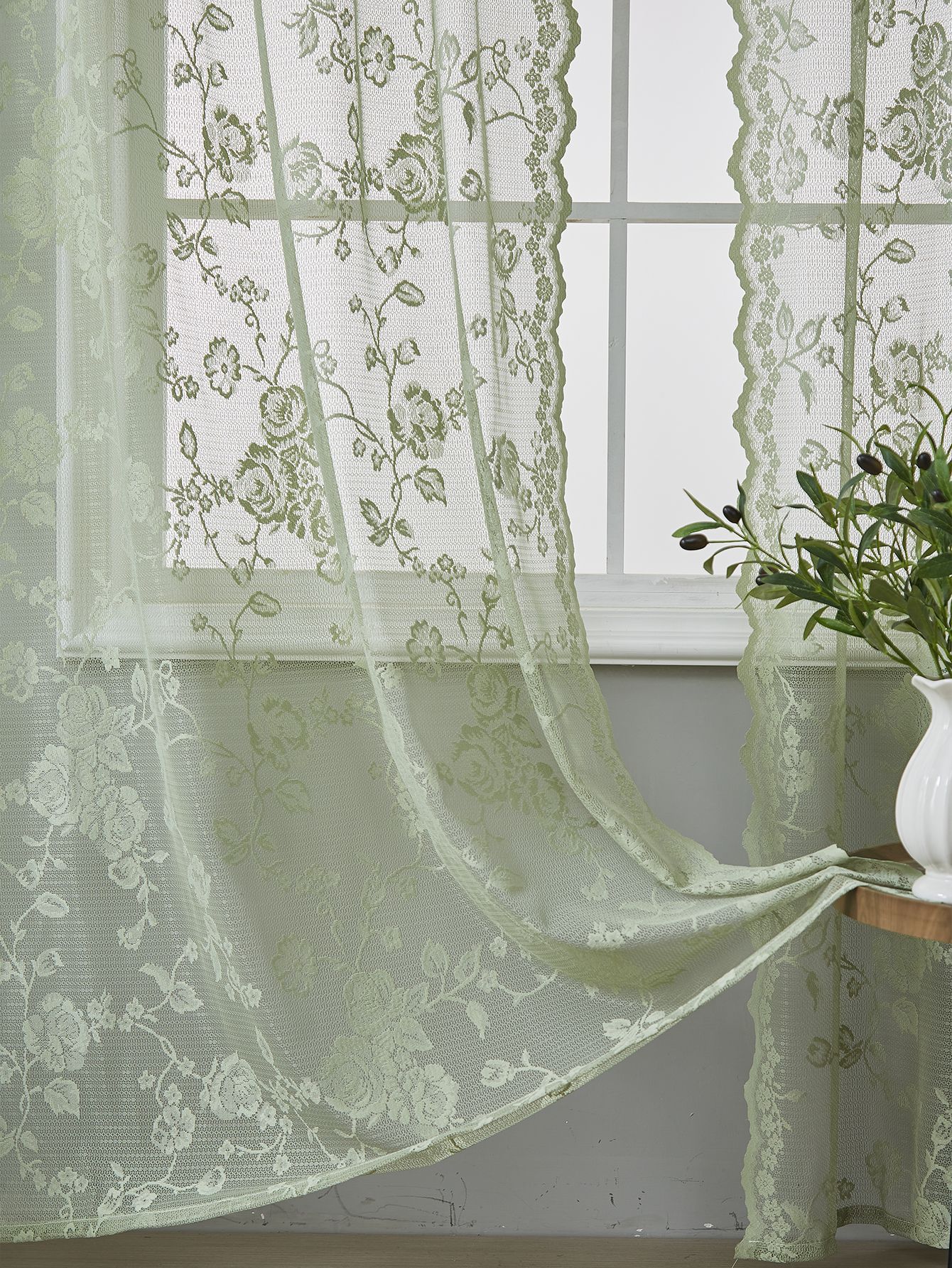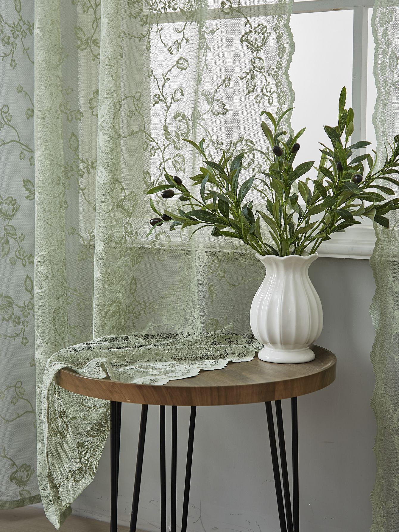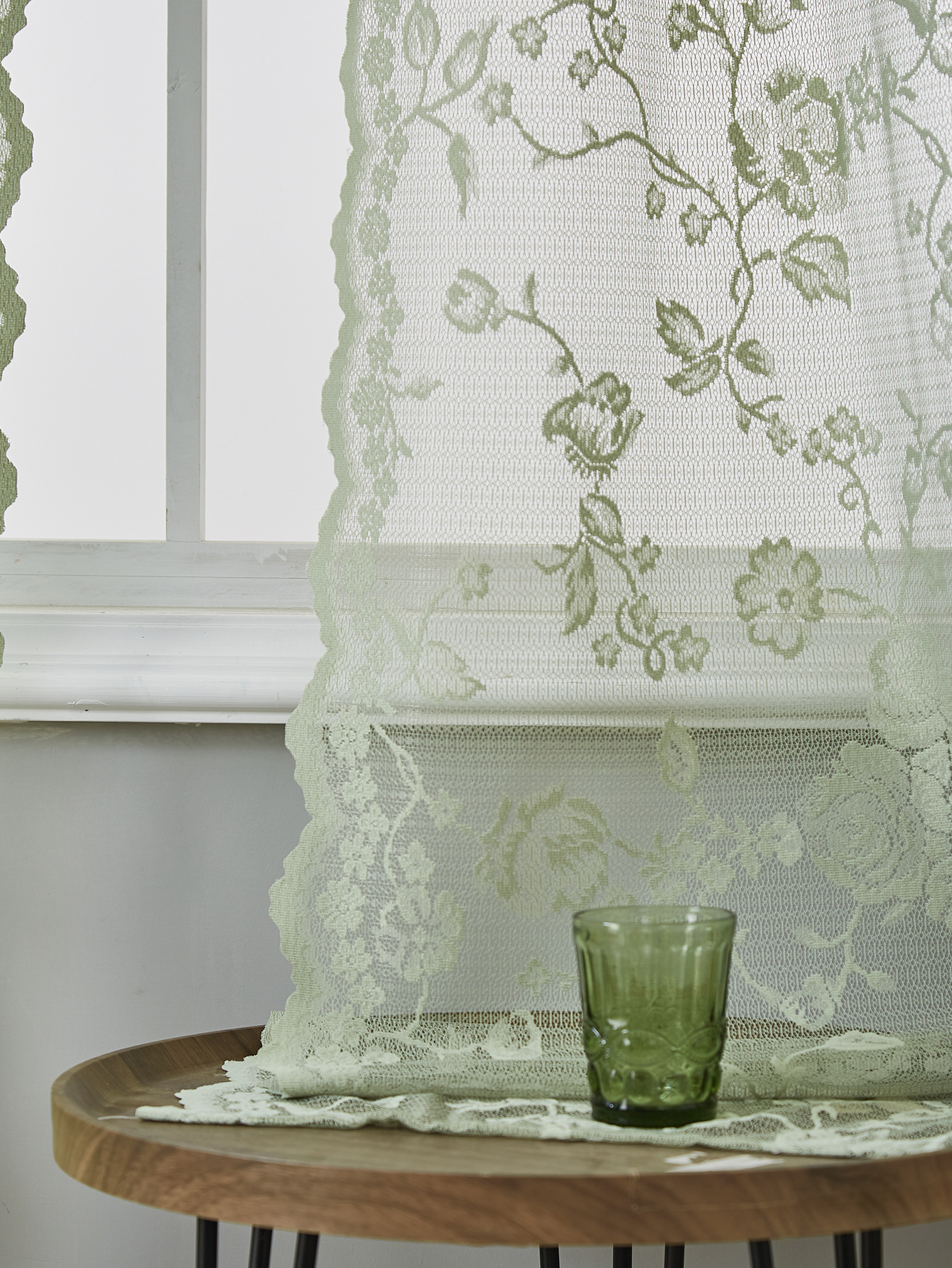 프랑스 녹색 주방 거즈 커튼 레트로 미국 투명 프랑스 더블 레이스 침실 파티션 커튼 베이 창 커튼