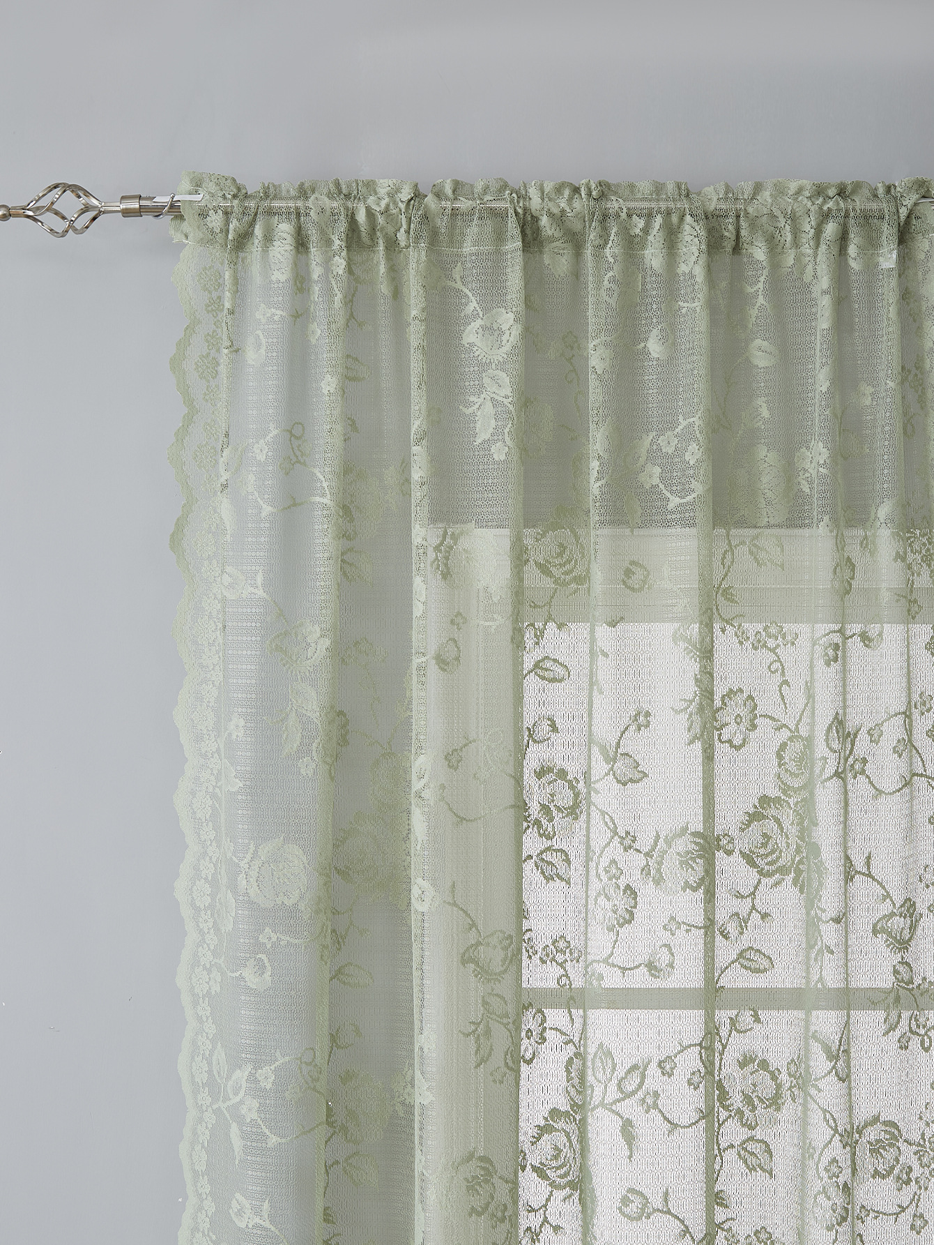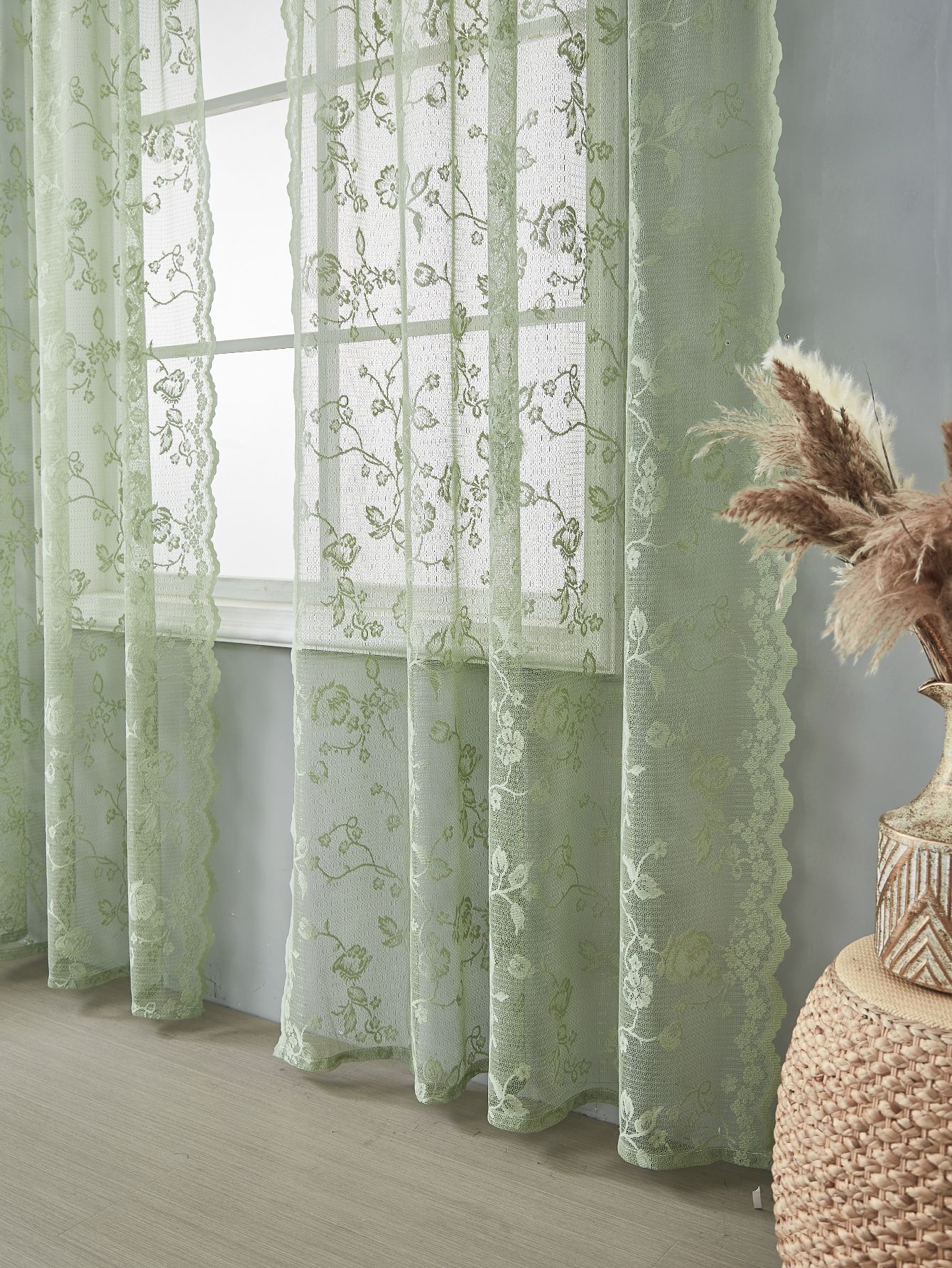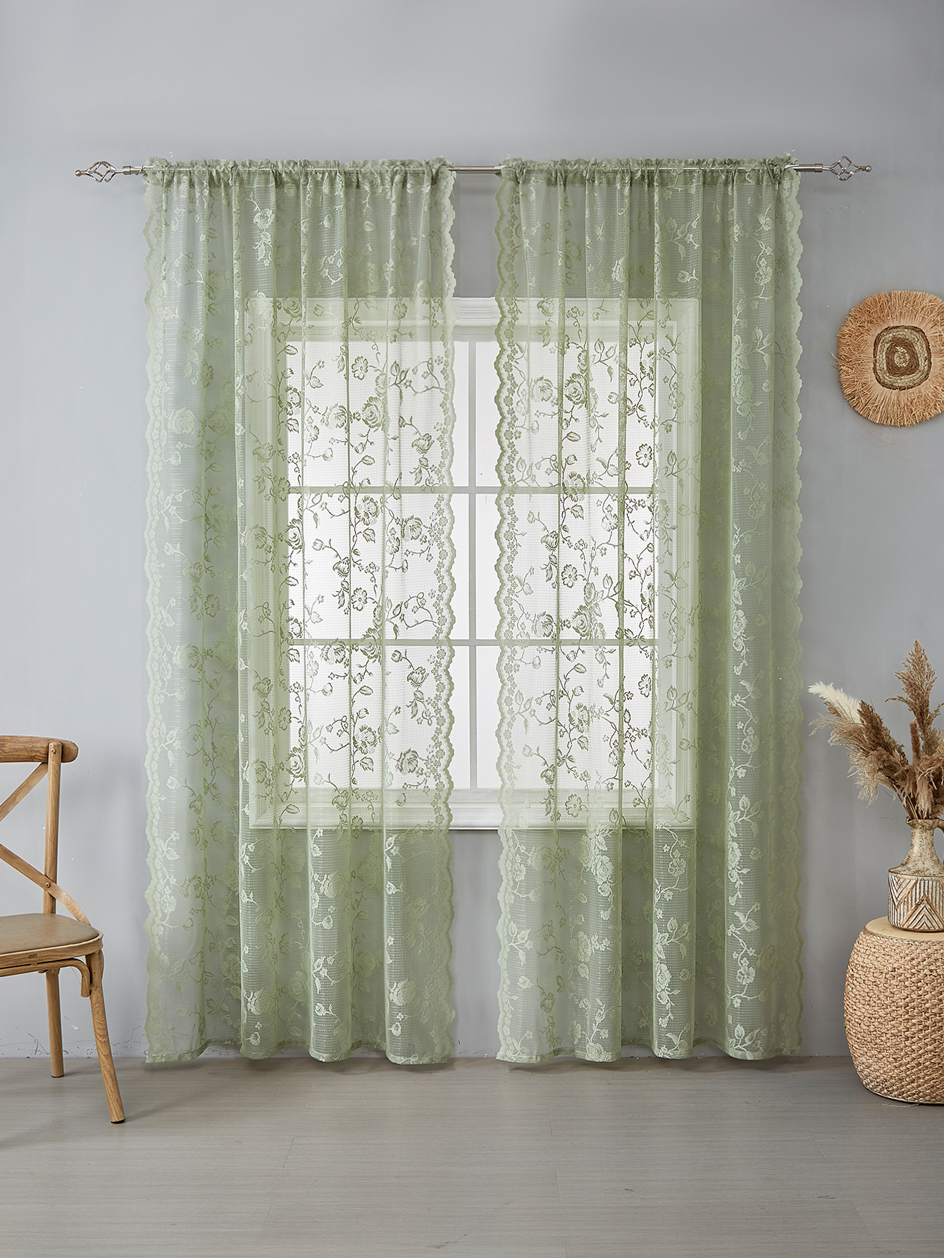 프랑스 녹색 주방 거즈 커튼 레트로 미국 투명 프랑스 더블 레이스 침실 파티션 커튼 베이 창 커튼