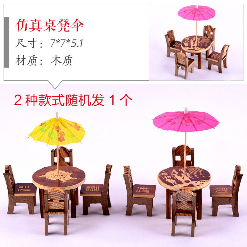 • 시뮬레이션된 테이블 및 의자 우산(2가지 스타일 중 1개가 무작위로 배포됨)