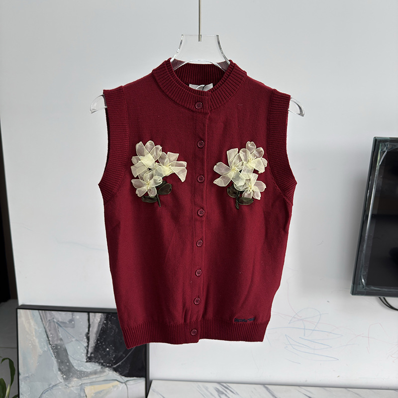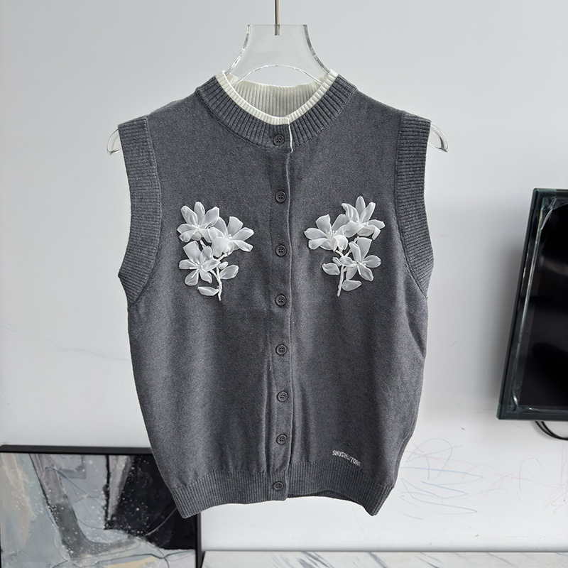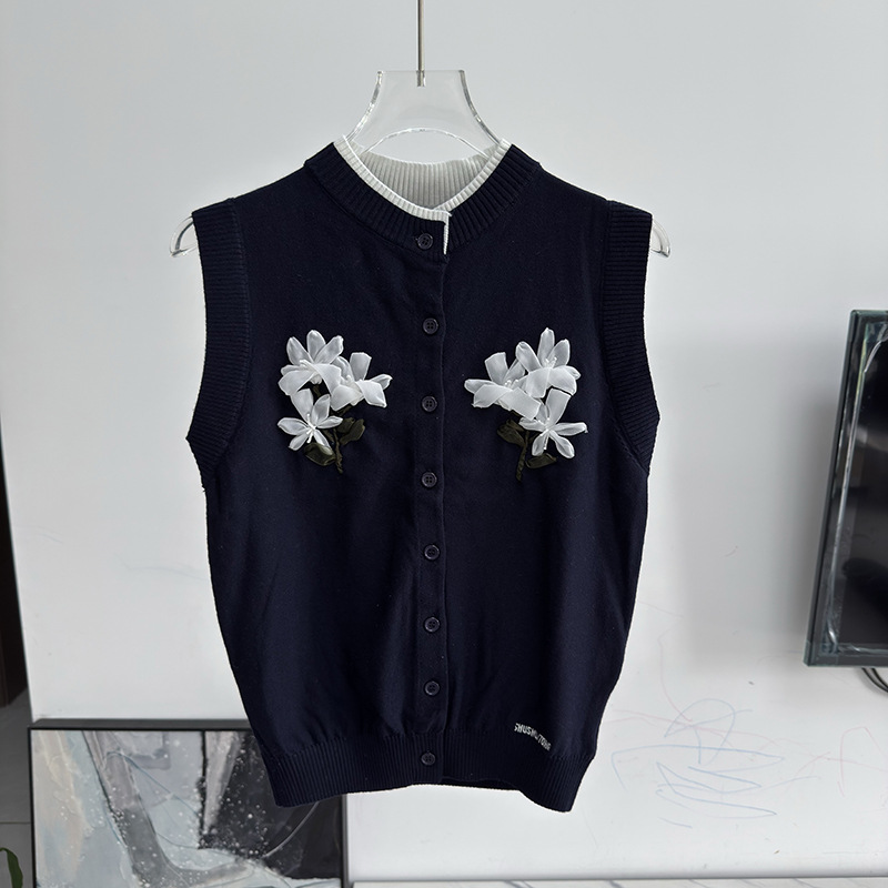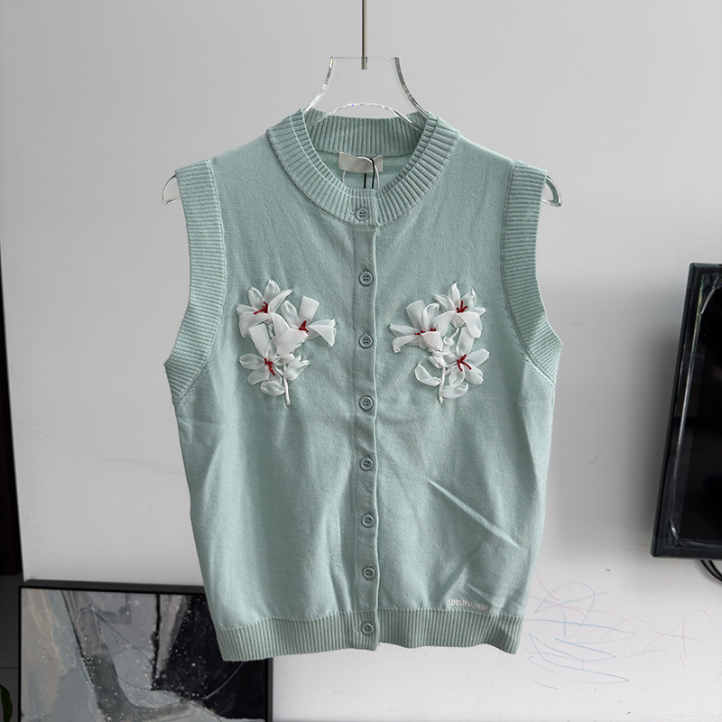 [재고] 2025 봄 여름 입체 플라워 장식 슬림 민소매 니트 가디건 탑 25115