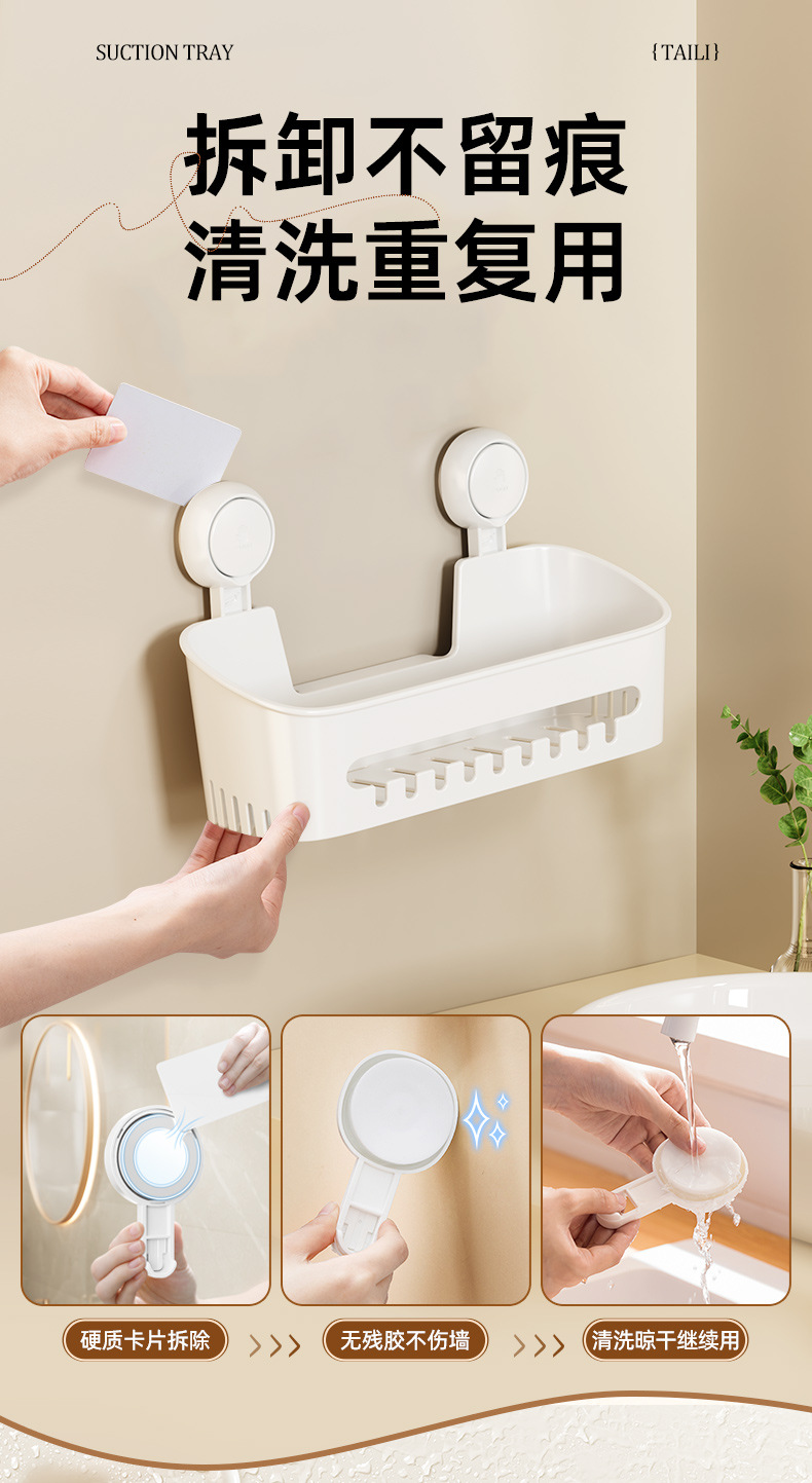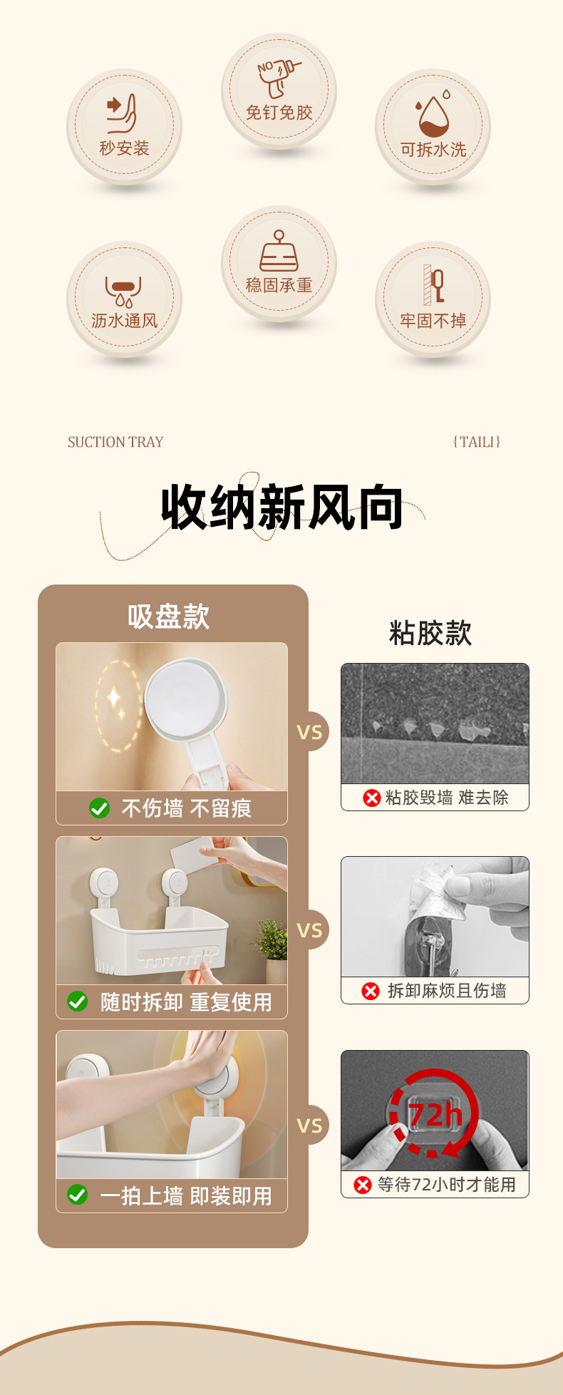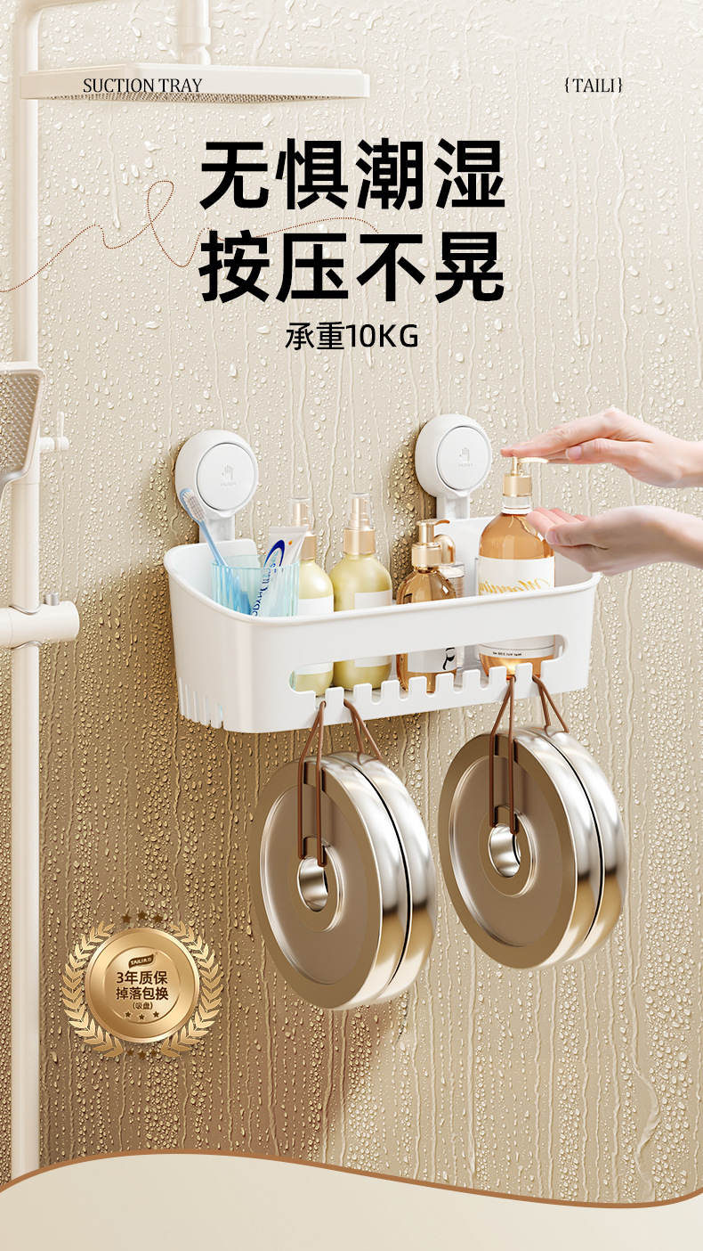 Taili 욕실 선반 흡입 컵 수건 걸이 펀치없는 수건 바 욕실 선반 단일 막대 후크 걸이 막대