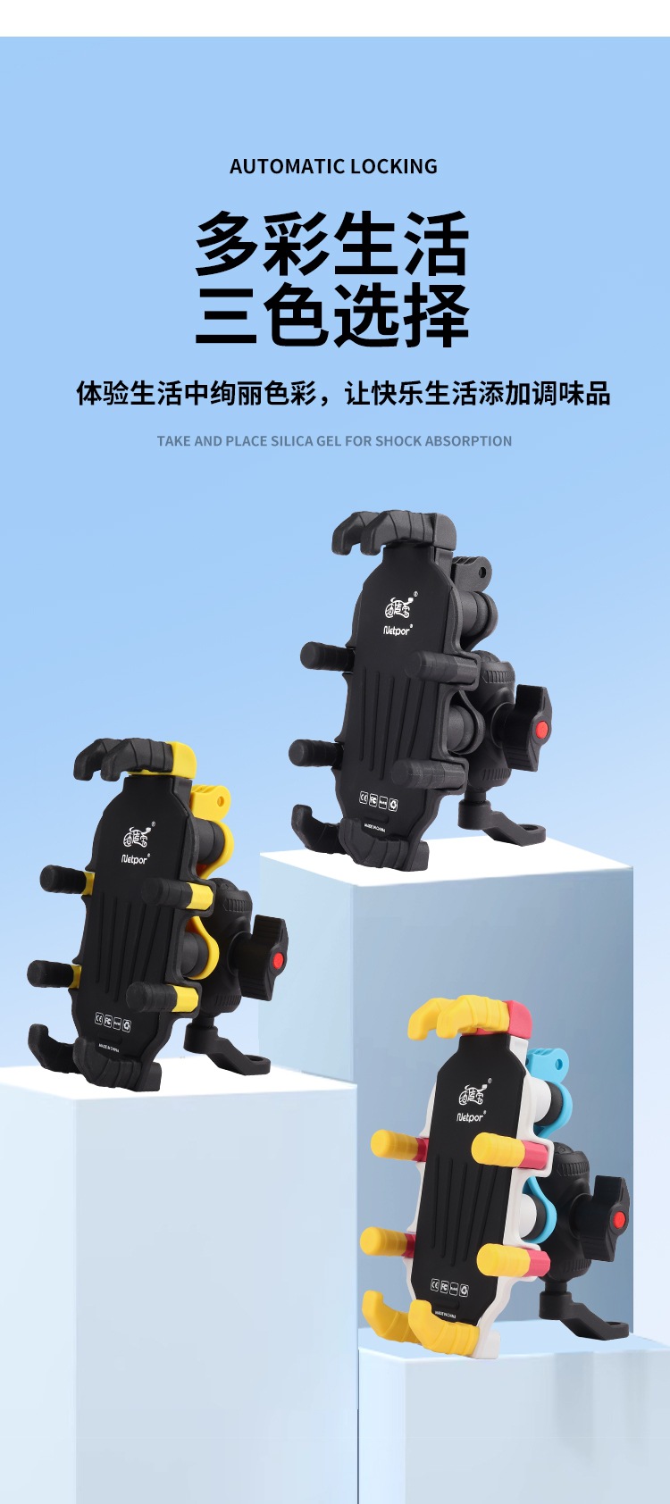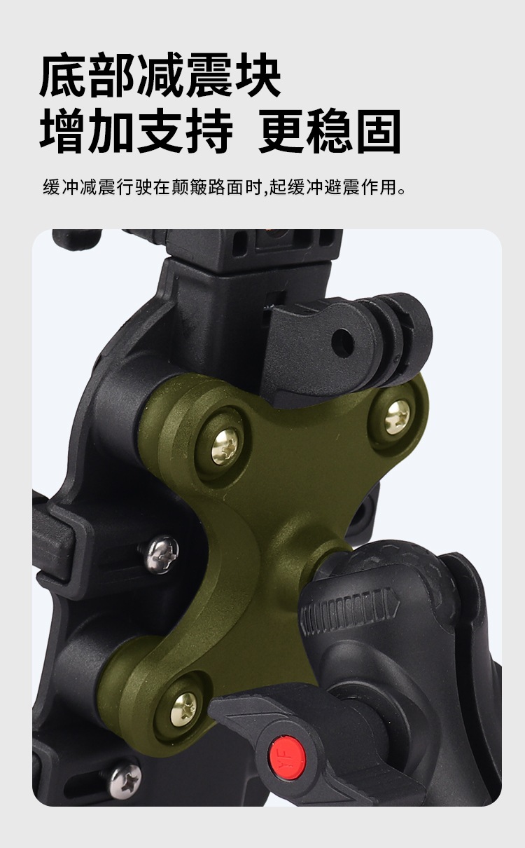 2、稳固防抖:使用高弹性减震硅胶制作的一体缓冲减震模块和特殊的八爪包裹设计,即使在崎岖不平的道路上行驶,也能确保您的手机牢固地固定在手机支架上