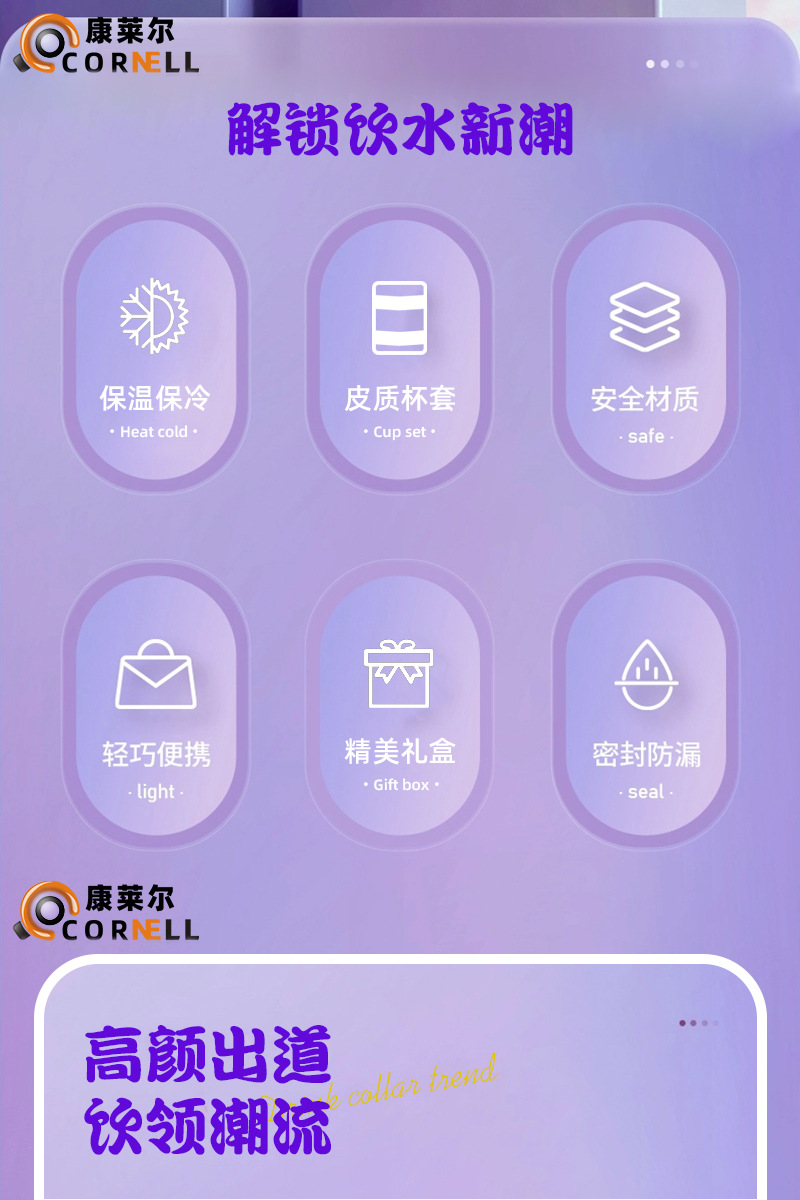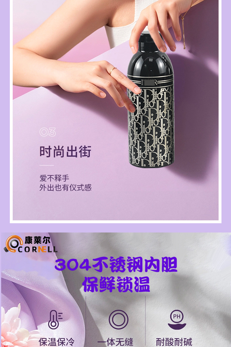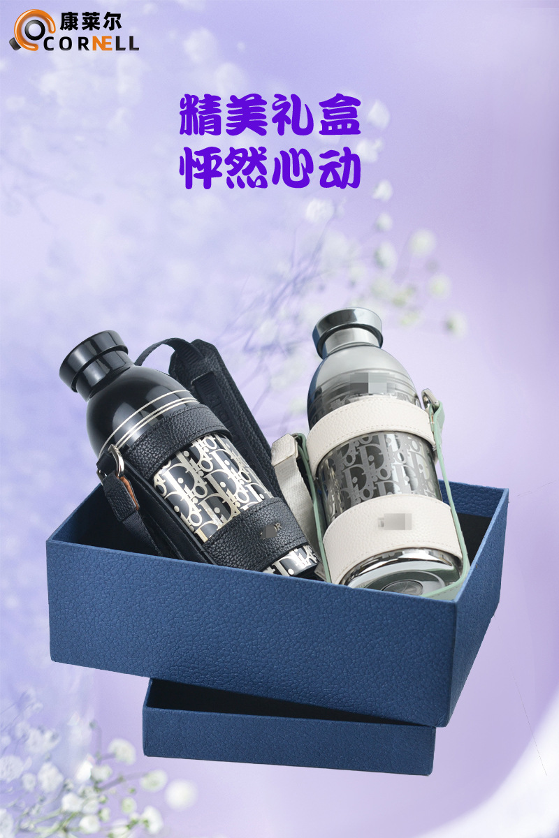 爆款D家高档保温杯新款双层不锈钢保温壶水杯情侣斜跨户外便携杯