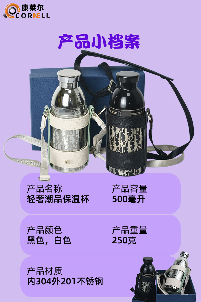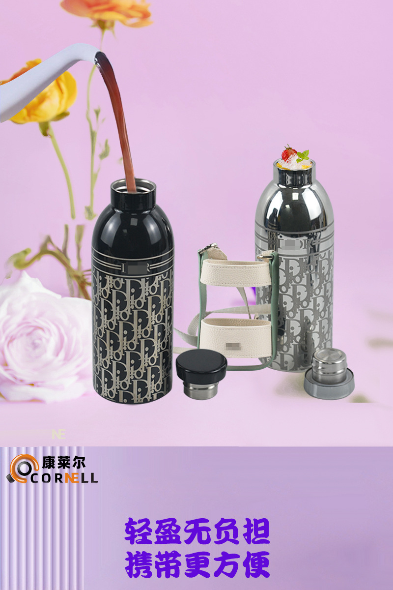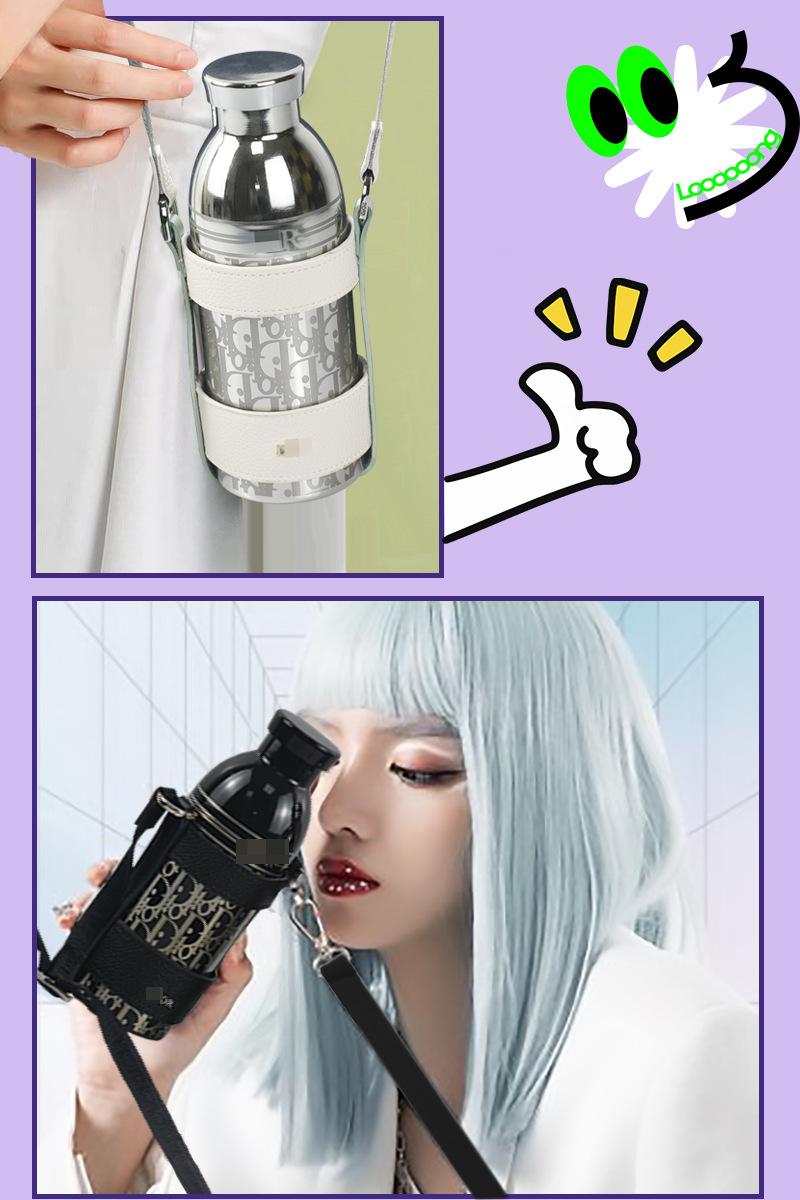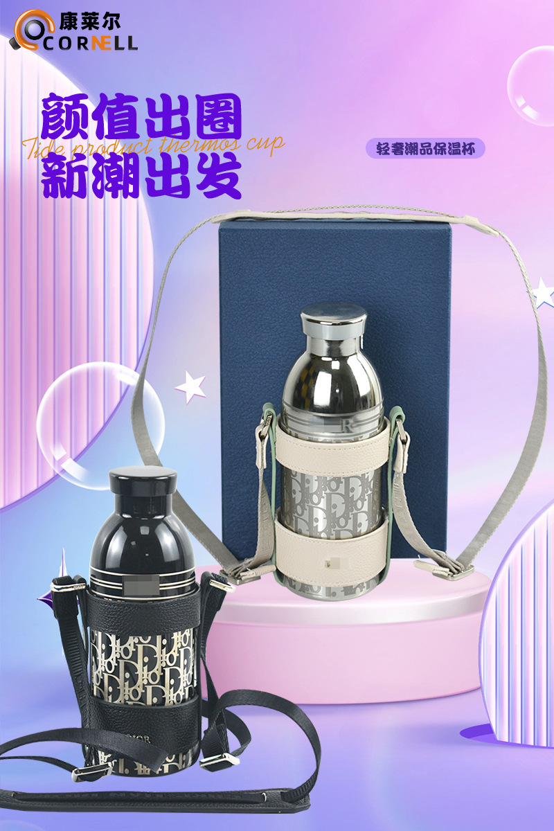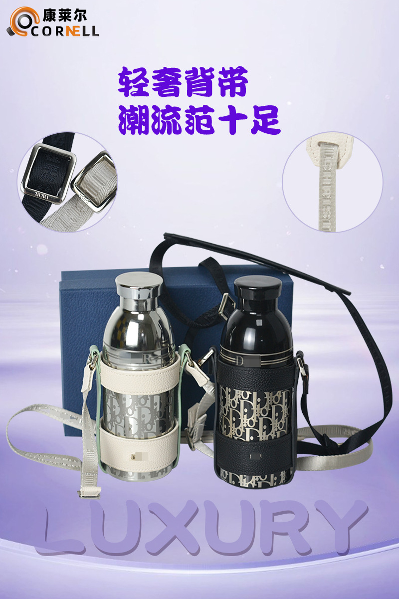 D家同款不锈钢保温杯户外便携背带运动水壶情侣爆款轻奢水杯批发