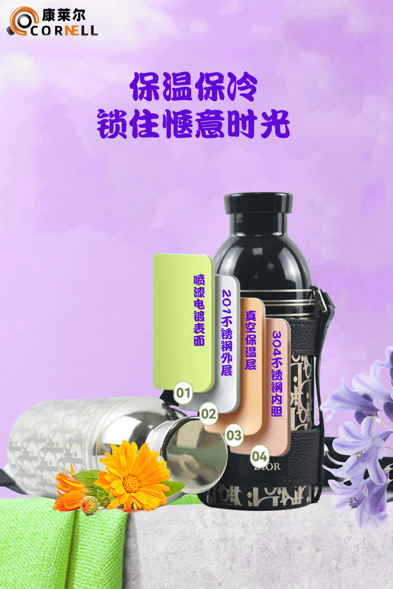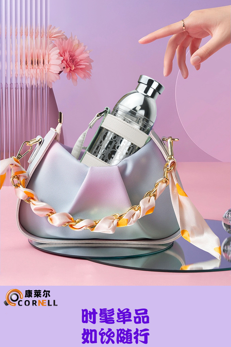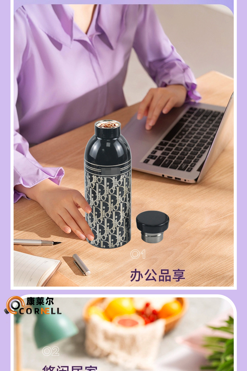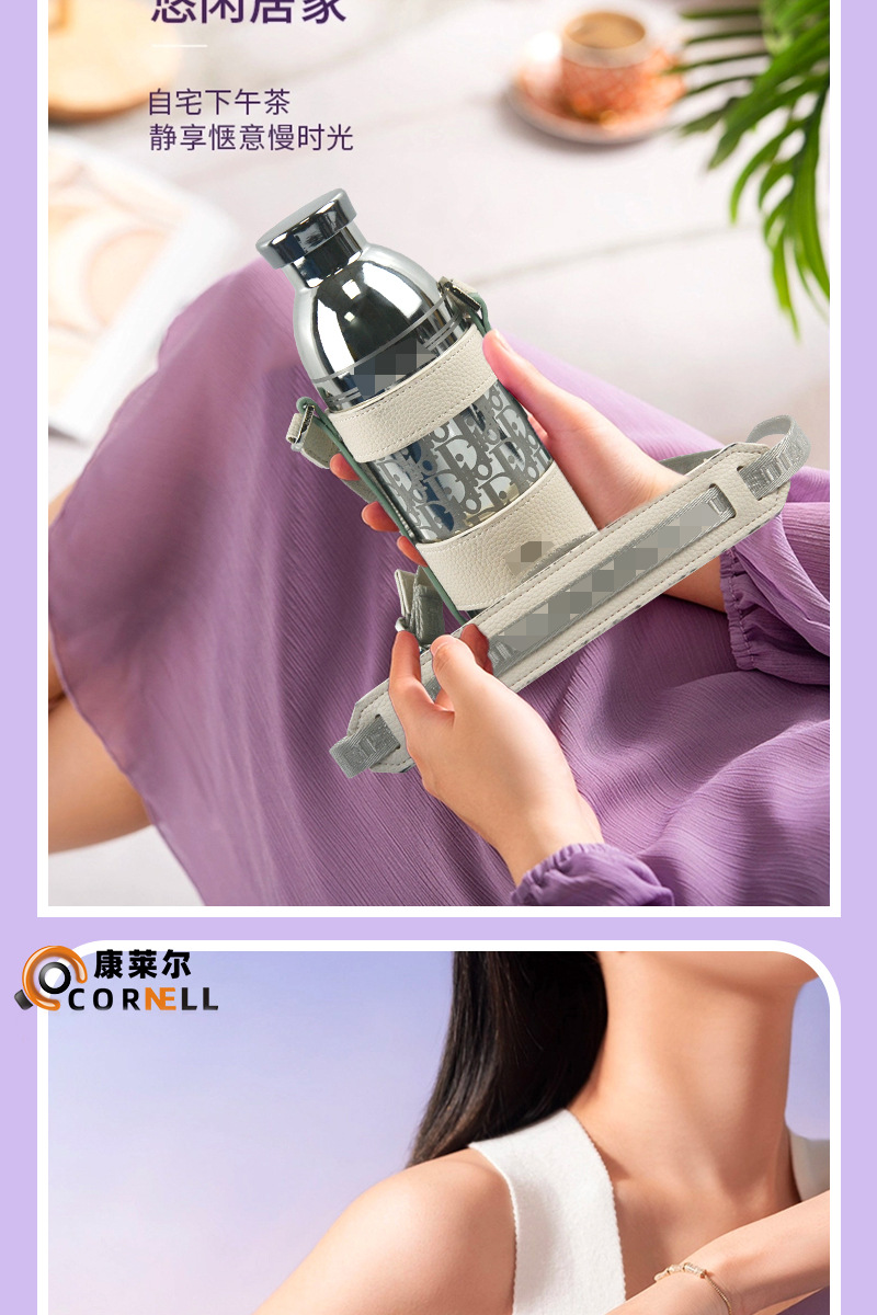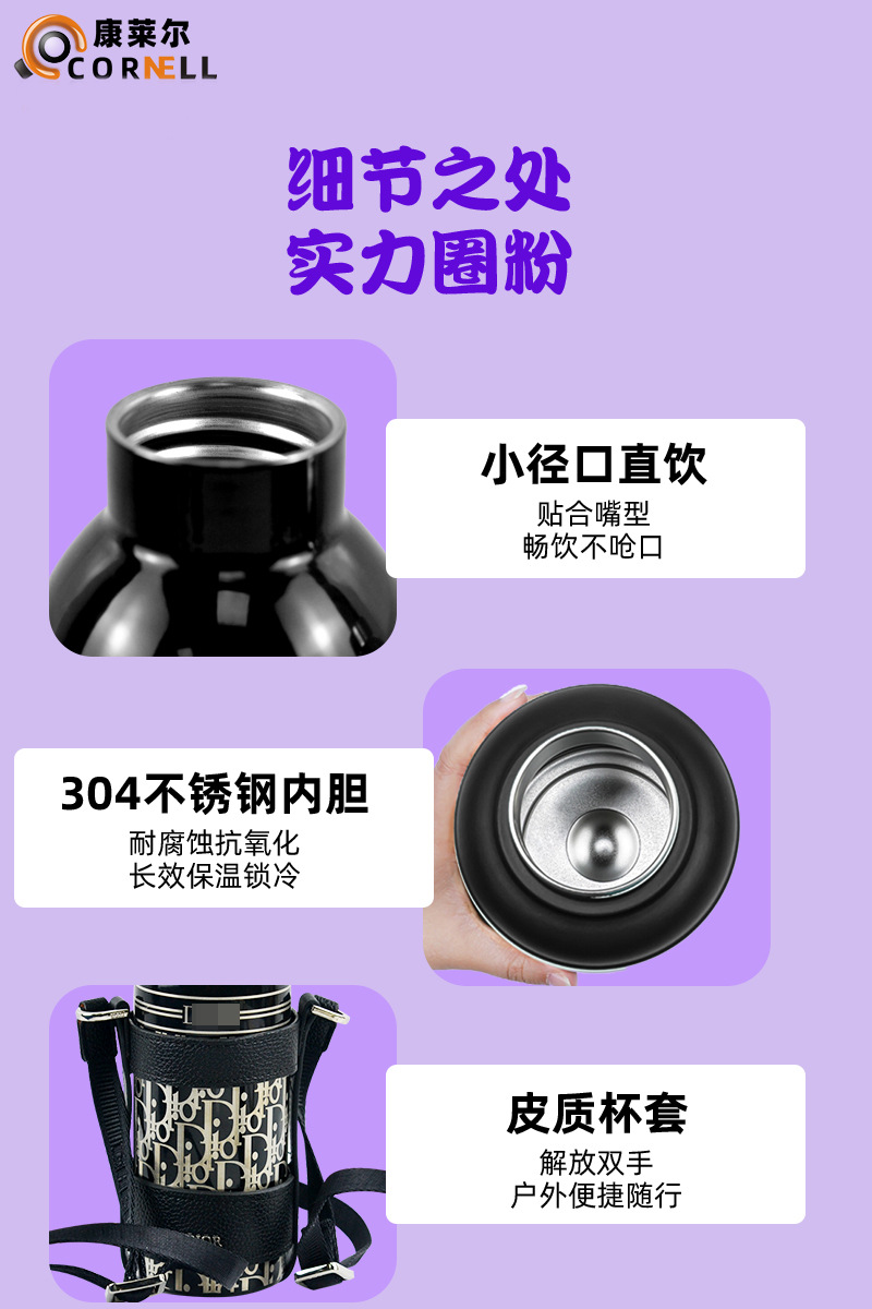 D家同款不锈钢保温杯户外便携背带运动水壶情侣爆款轻奢水杯批发