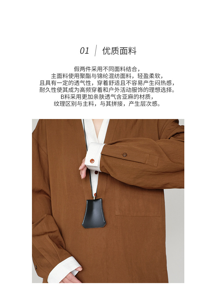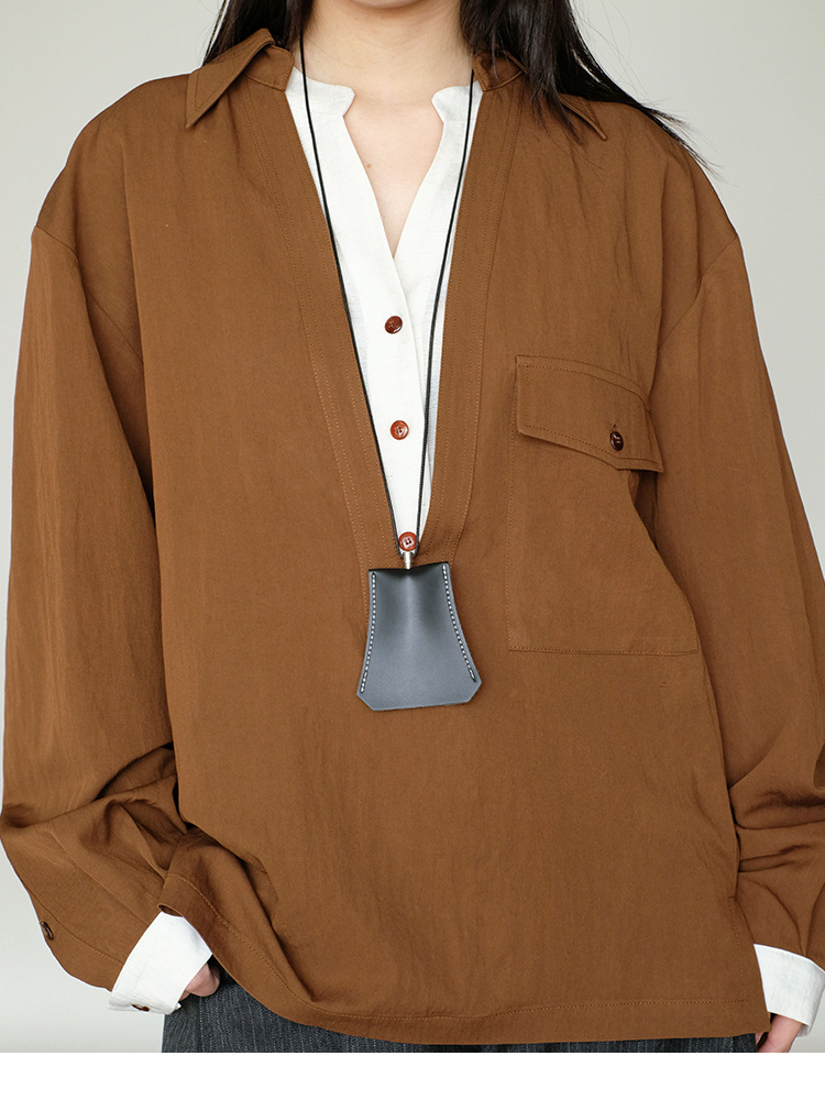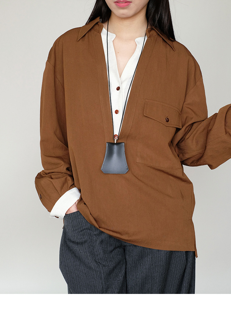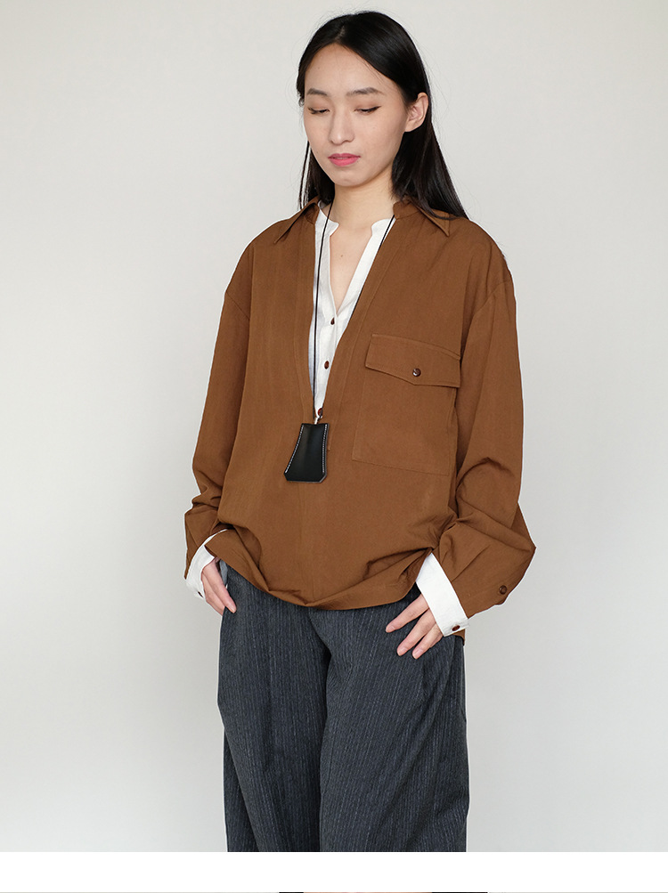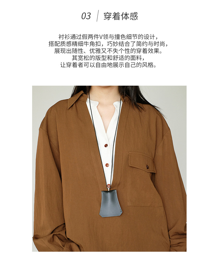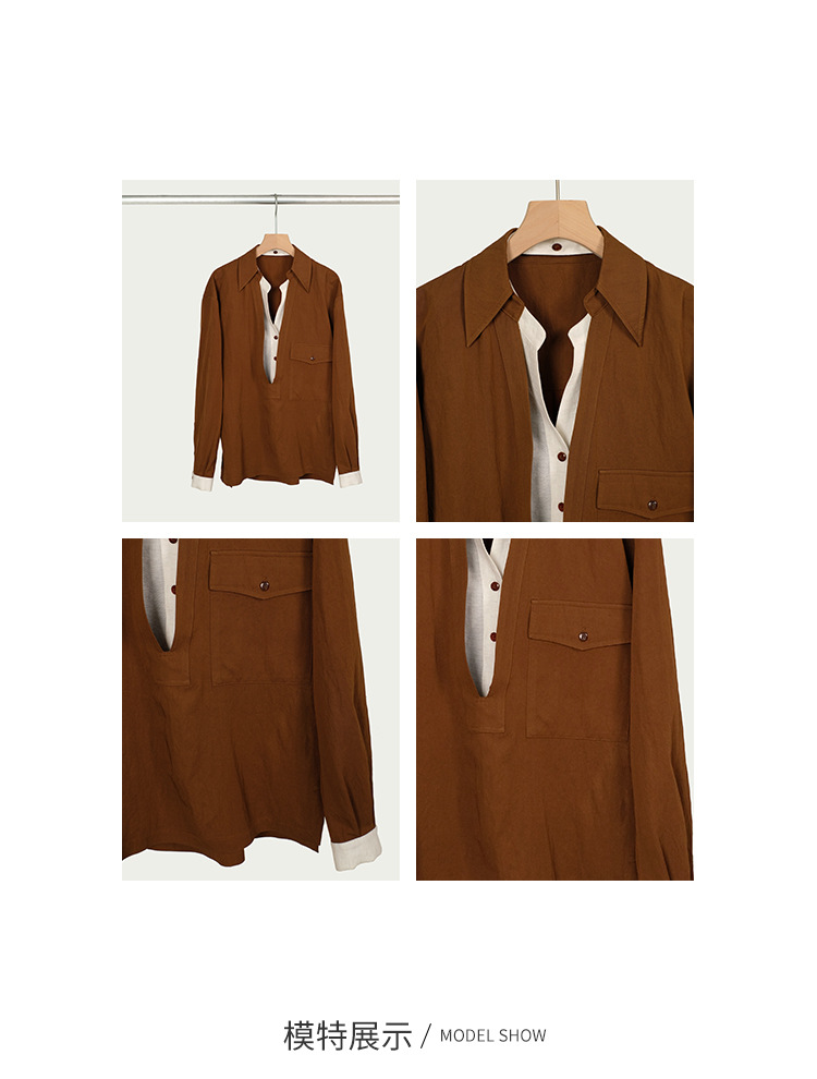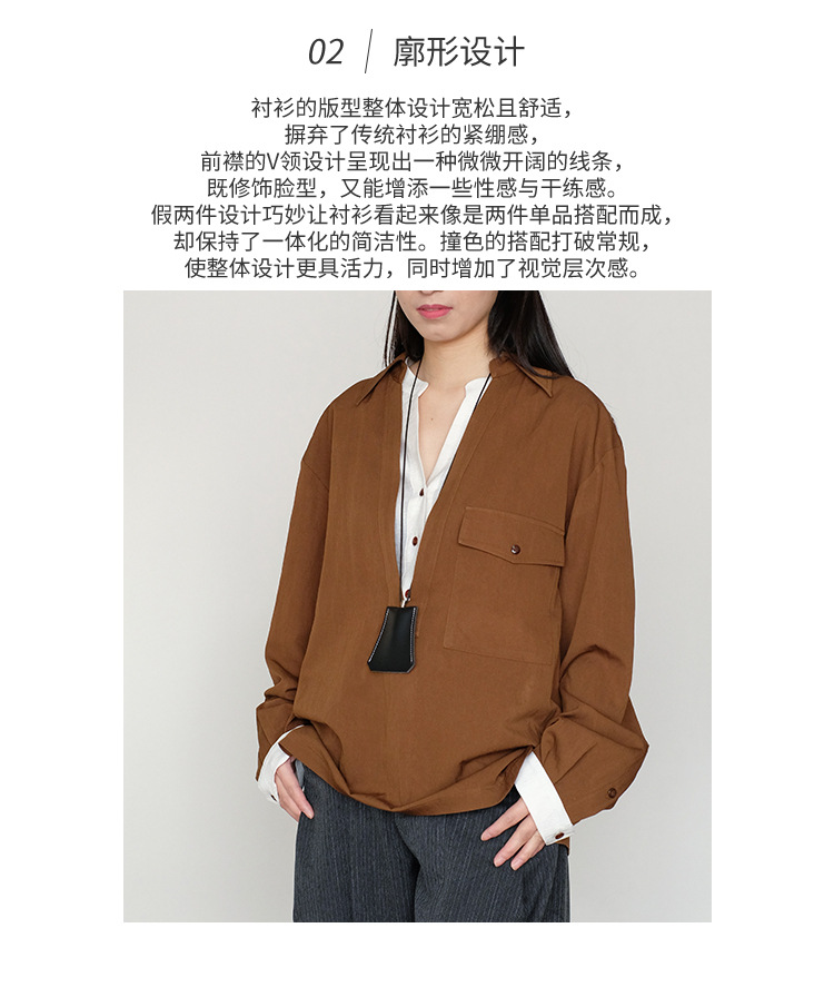 25 봄과 여름 레트로 게으른 색상 대조 가짜 투피스 간단한 높은 우아한 셔츠 디자인 V 넥 긴 소매 탑