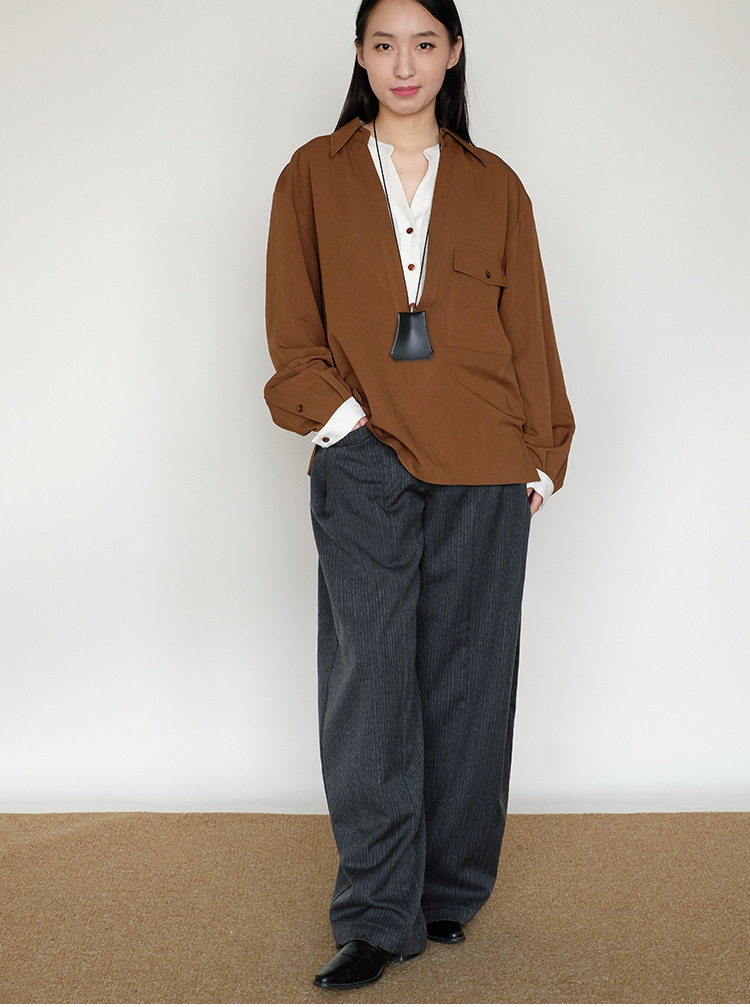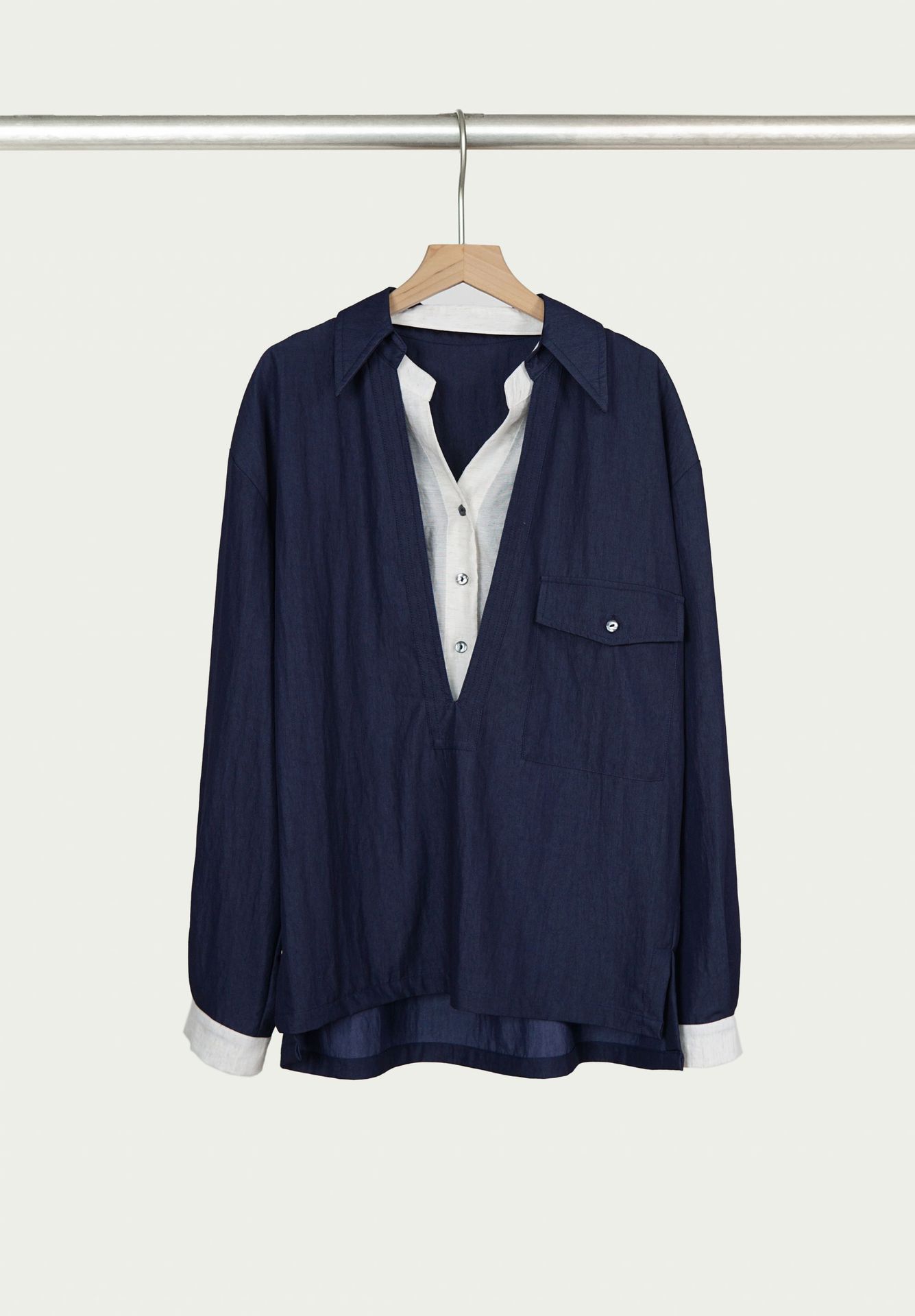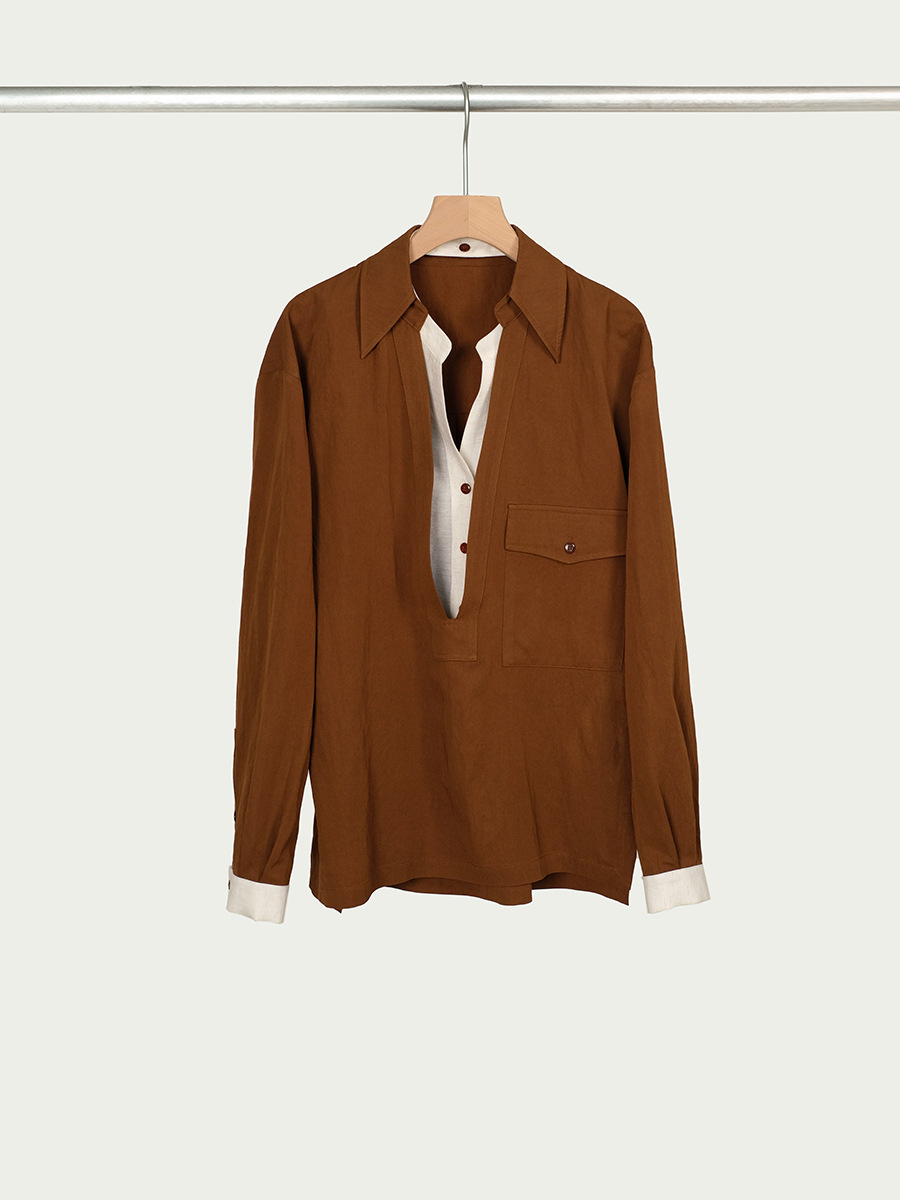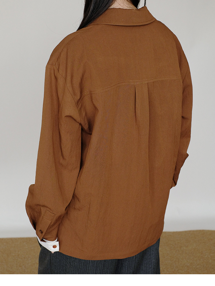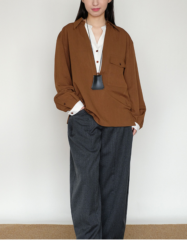 25 봄과 여름 레트로 게으른 색상 대조 가짜 투피스 간단한 높은 우아한 셔츠 디자인 V 넥 긴 소매 탑