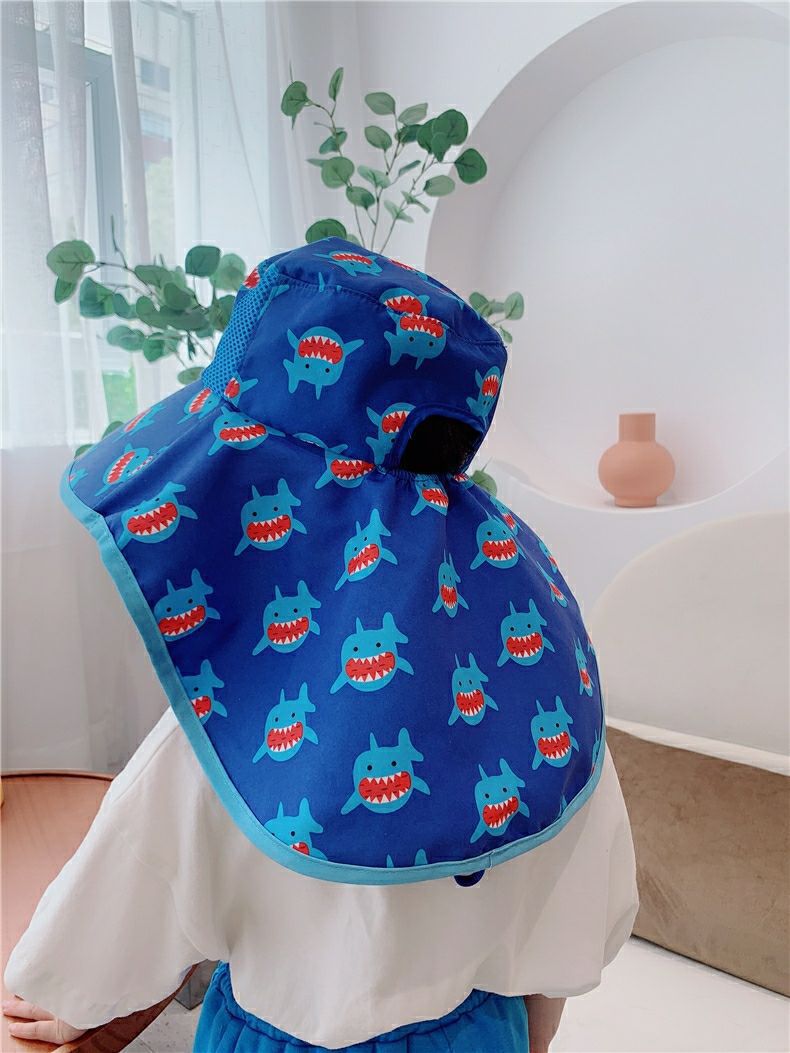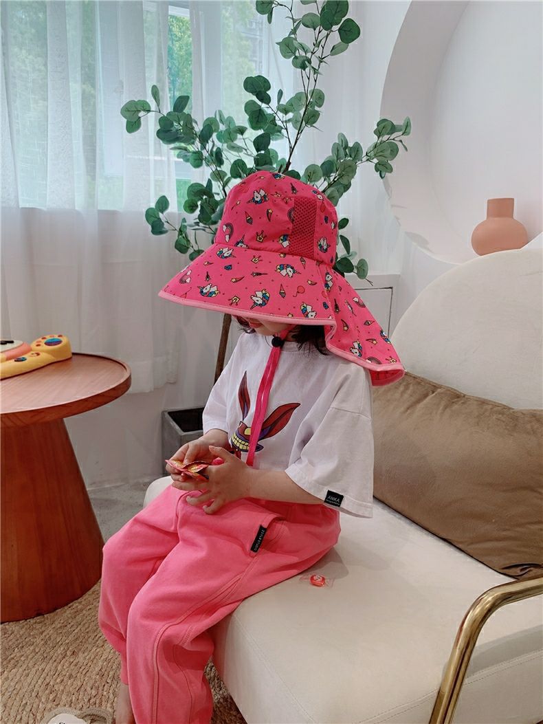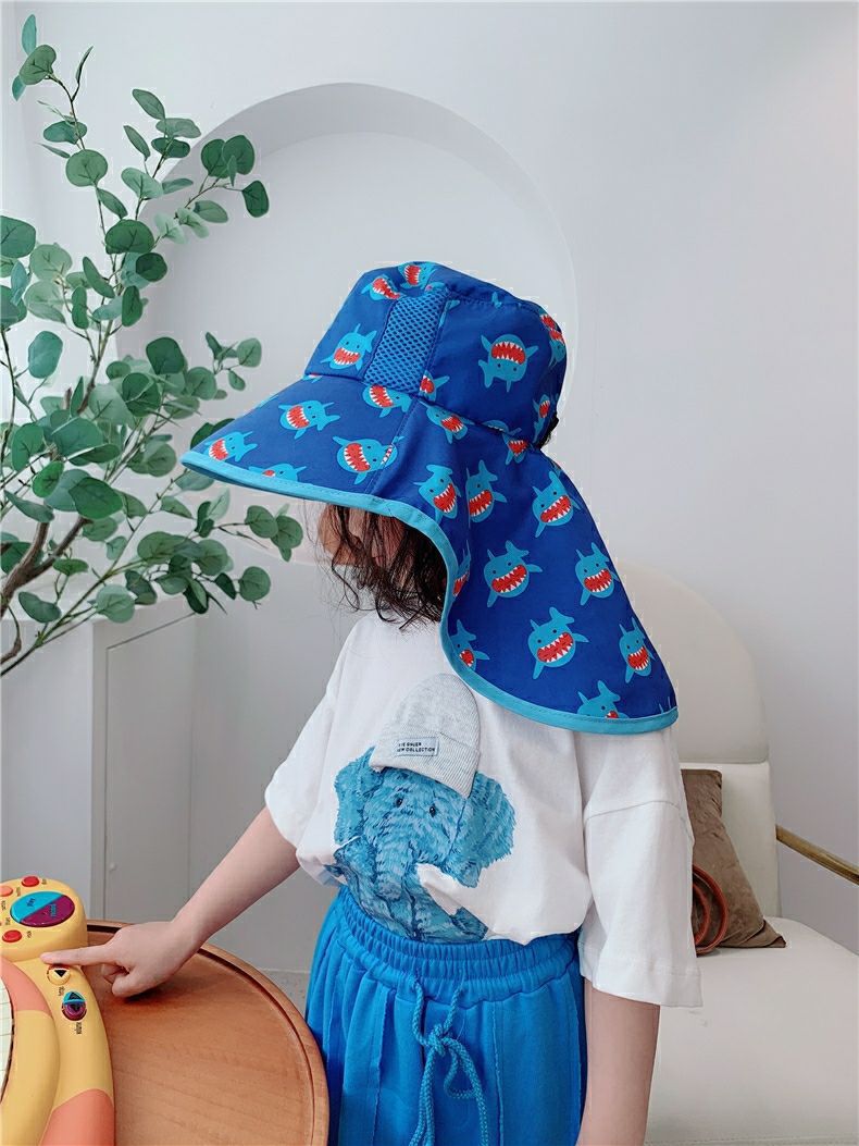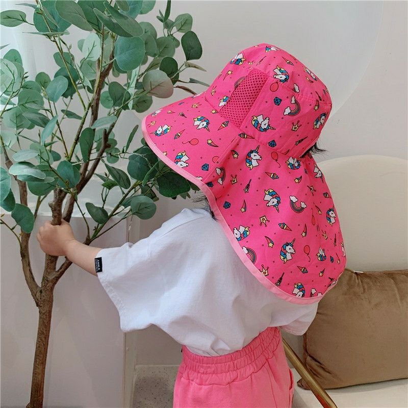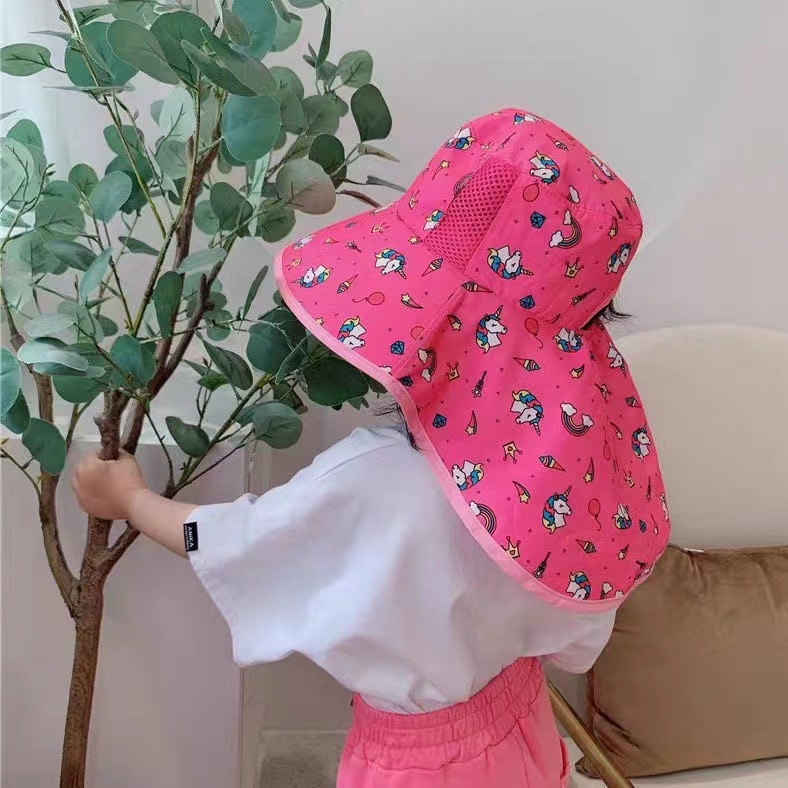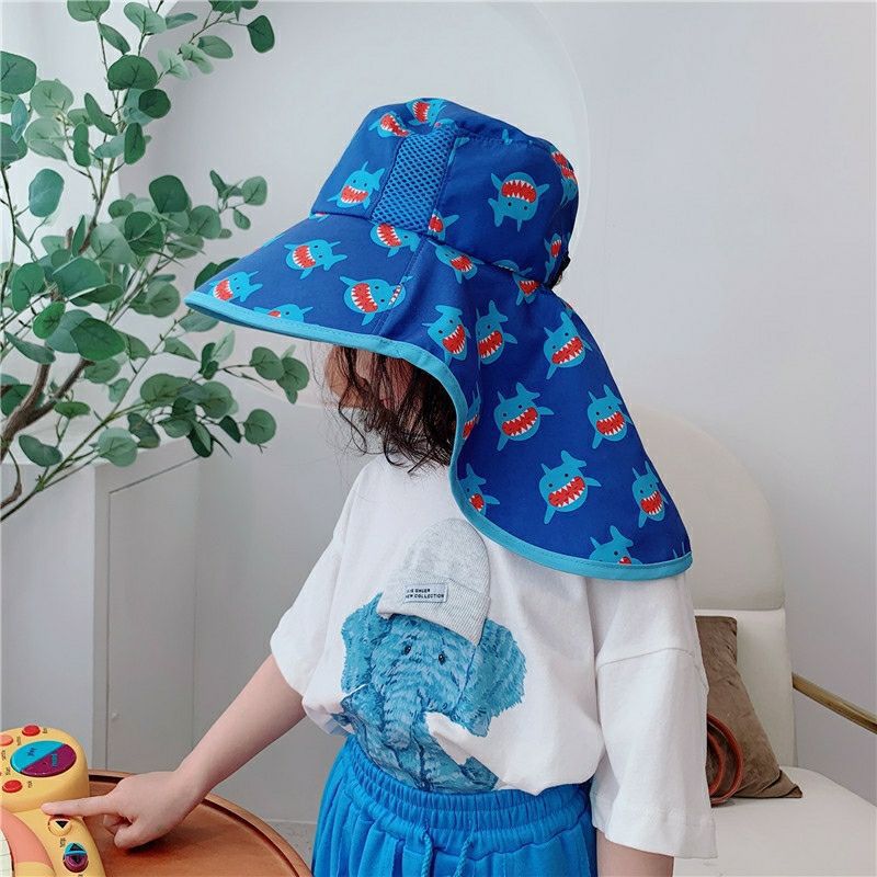 어린이 해변 태양 모자 여름 햇빛 모자 야외 통기성 메쉬 큰 목도리 목 보호 여행 모자 아이들스토어 가기