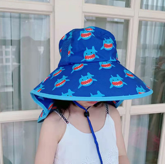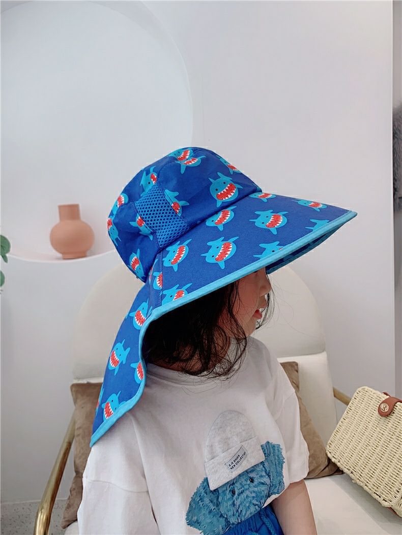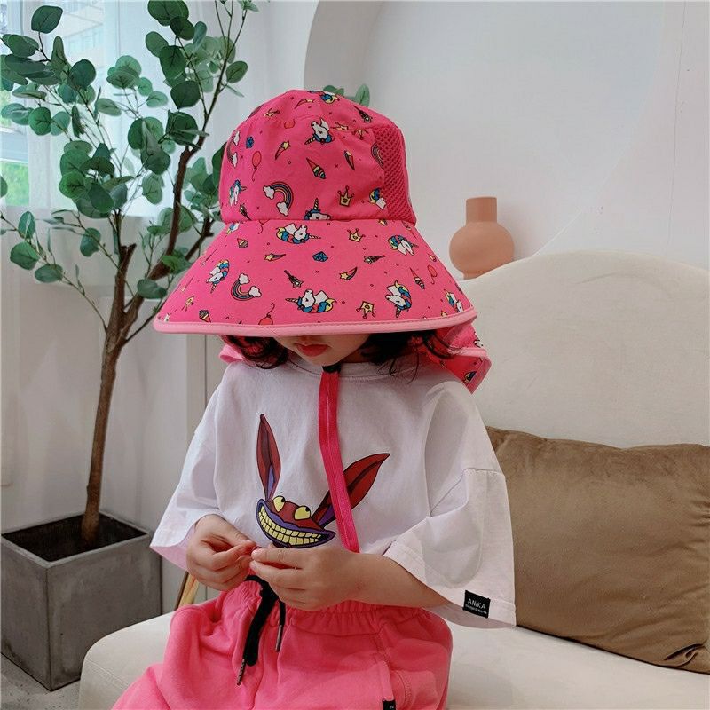 어린이 해변 태양 모자 여름 햇빛 모자 야외 통기성 메쉬 큰 목도리 목 보호 여행 모자 아이들