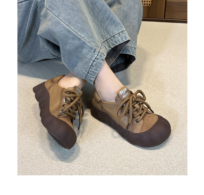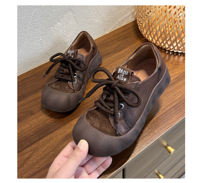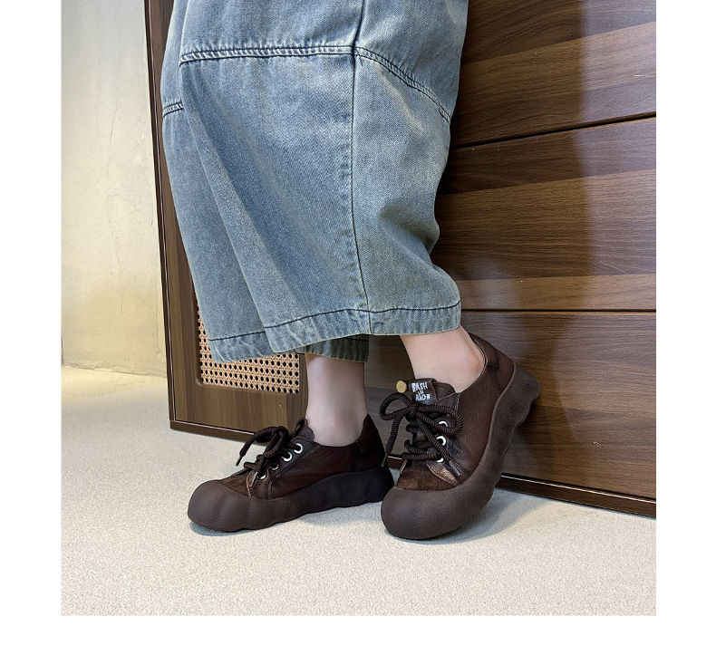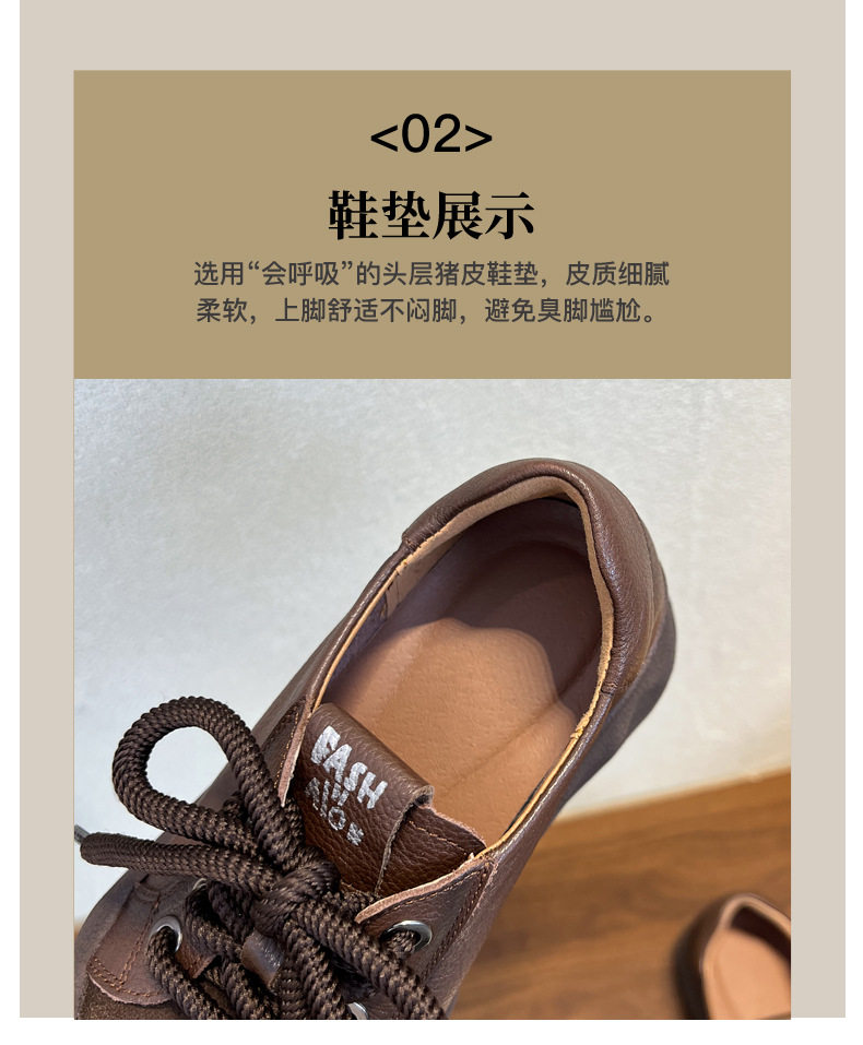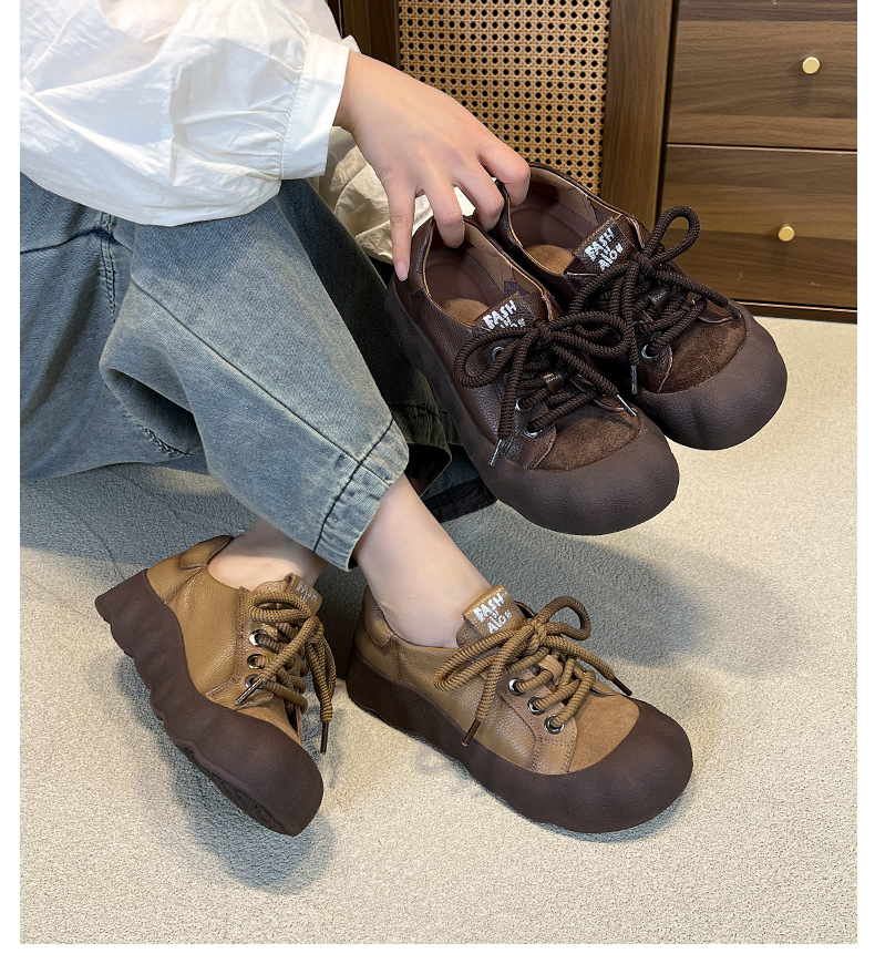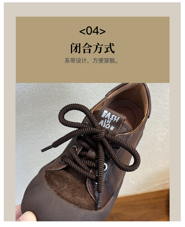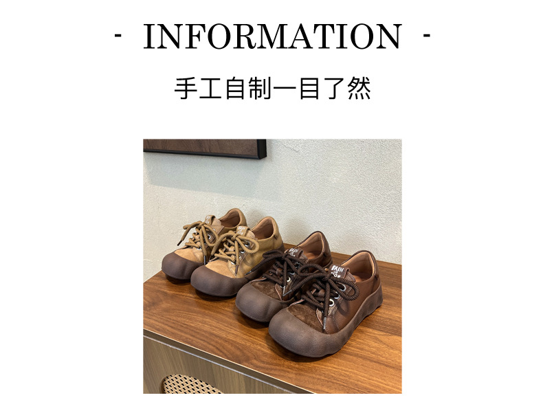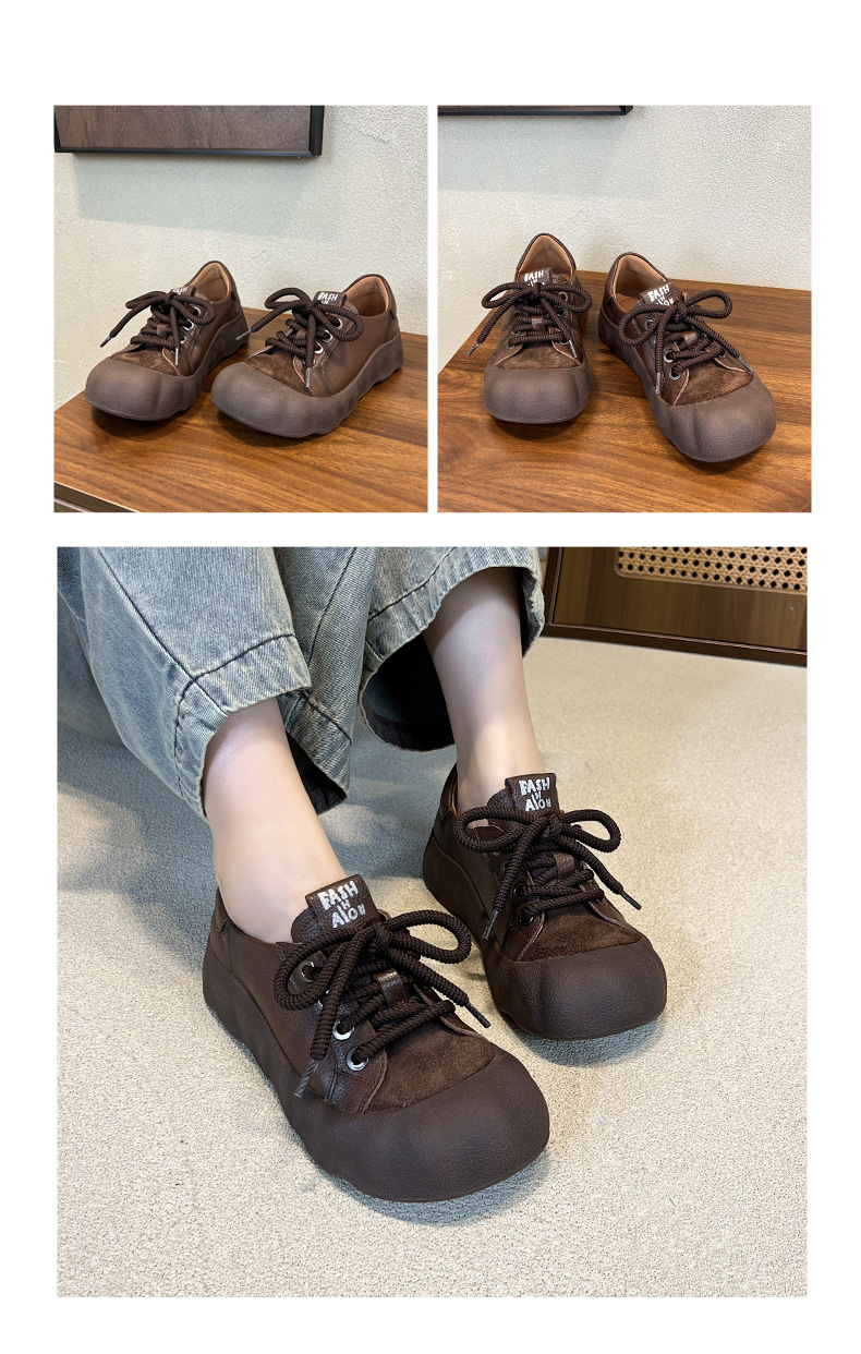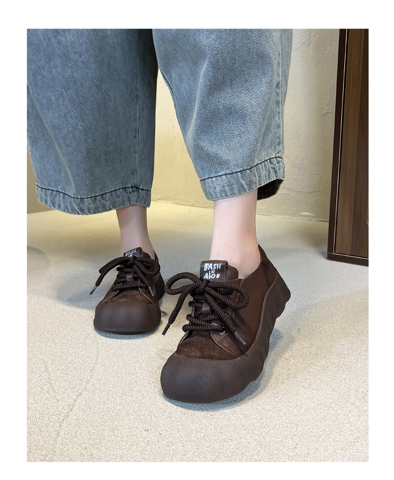 빈티지 캐주얼 가죽 여성 신발 미드 힐 레이스 업 발가락 캐주얼 스니커즈 2025 봄 탑 레이어 Cowhide 딥 입 싱글 레이어 신발스토어 가기