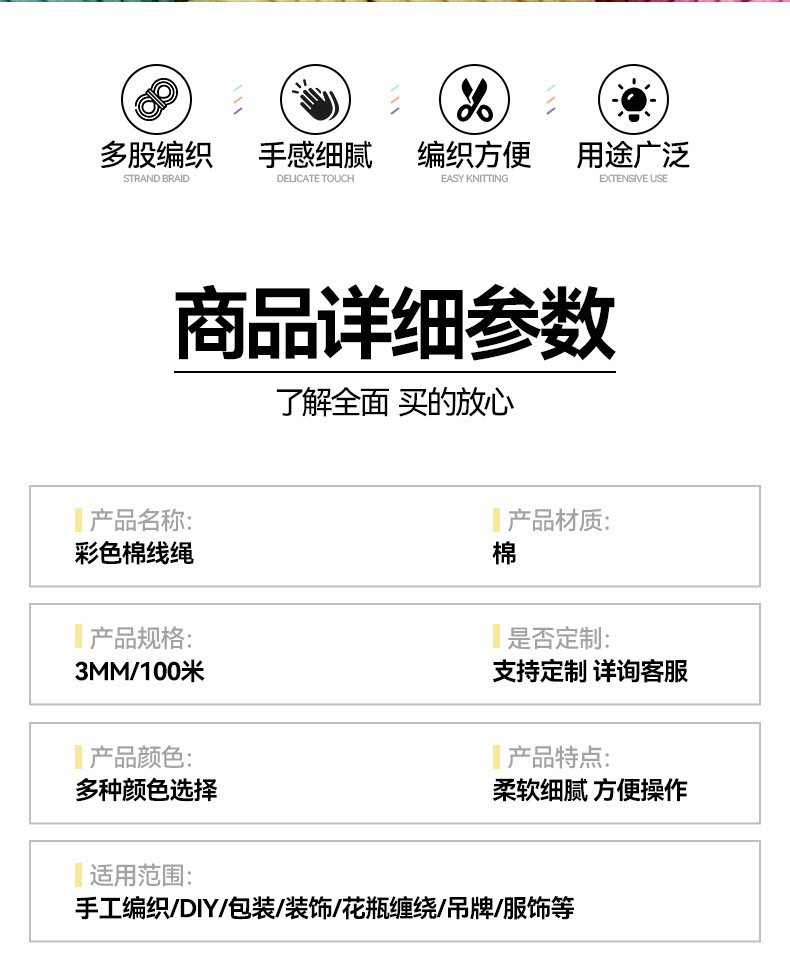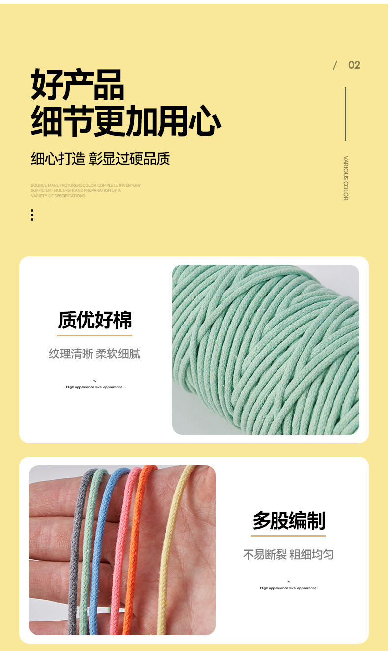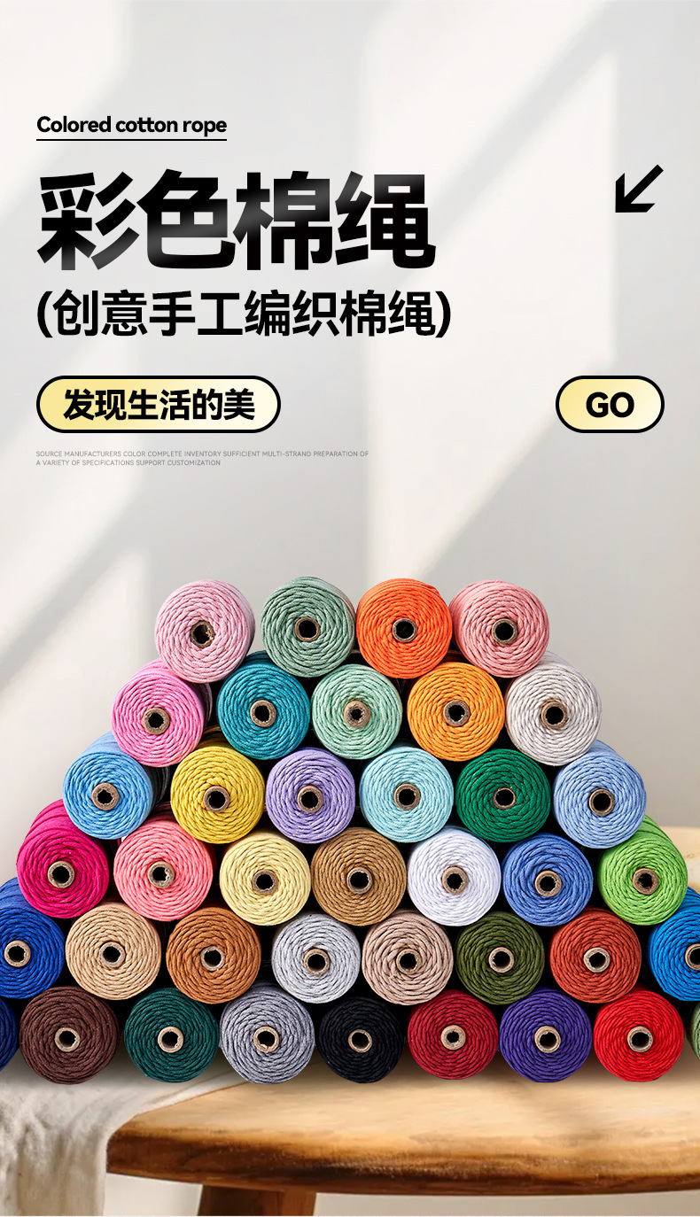 3mm50 m 컬러 코어-Spuffed 면 로프 가구 번들 의류 장식 면 로프 국경 직접 공급스토어 가기