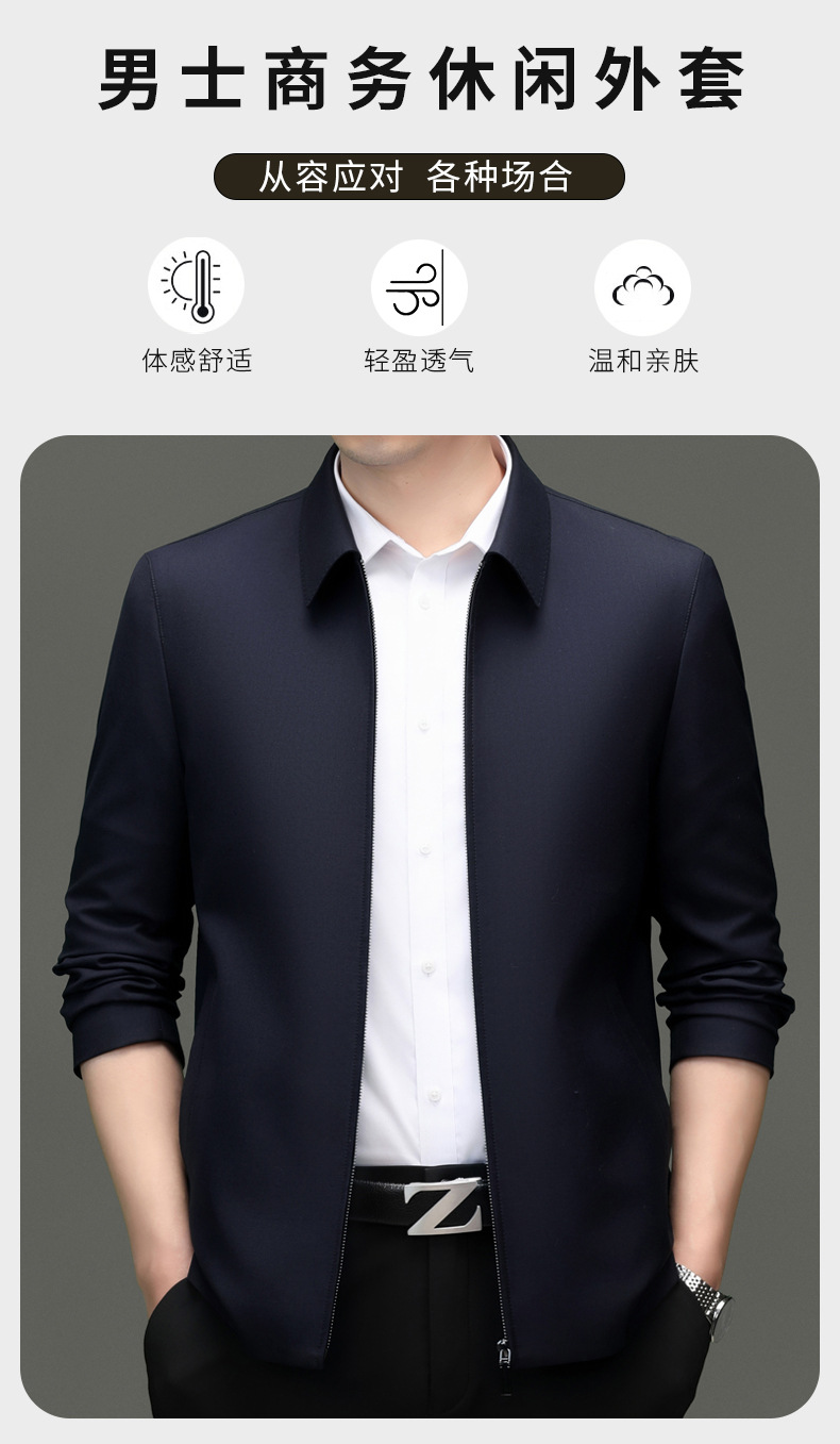 남성 라이트 비즈니스 하이 엔드 부티크 울 멀 베리 실크 재킷 봄과 가을 중년 주요 행정 간부 재킷 남성