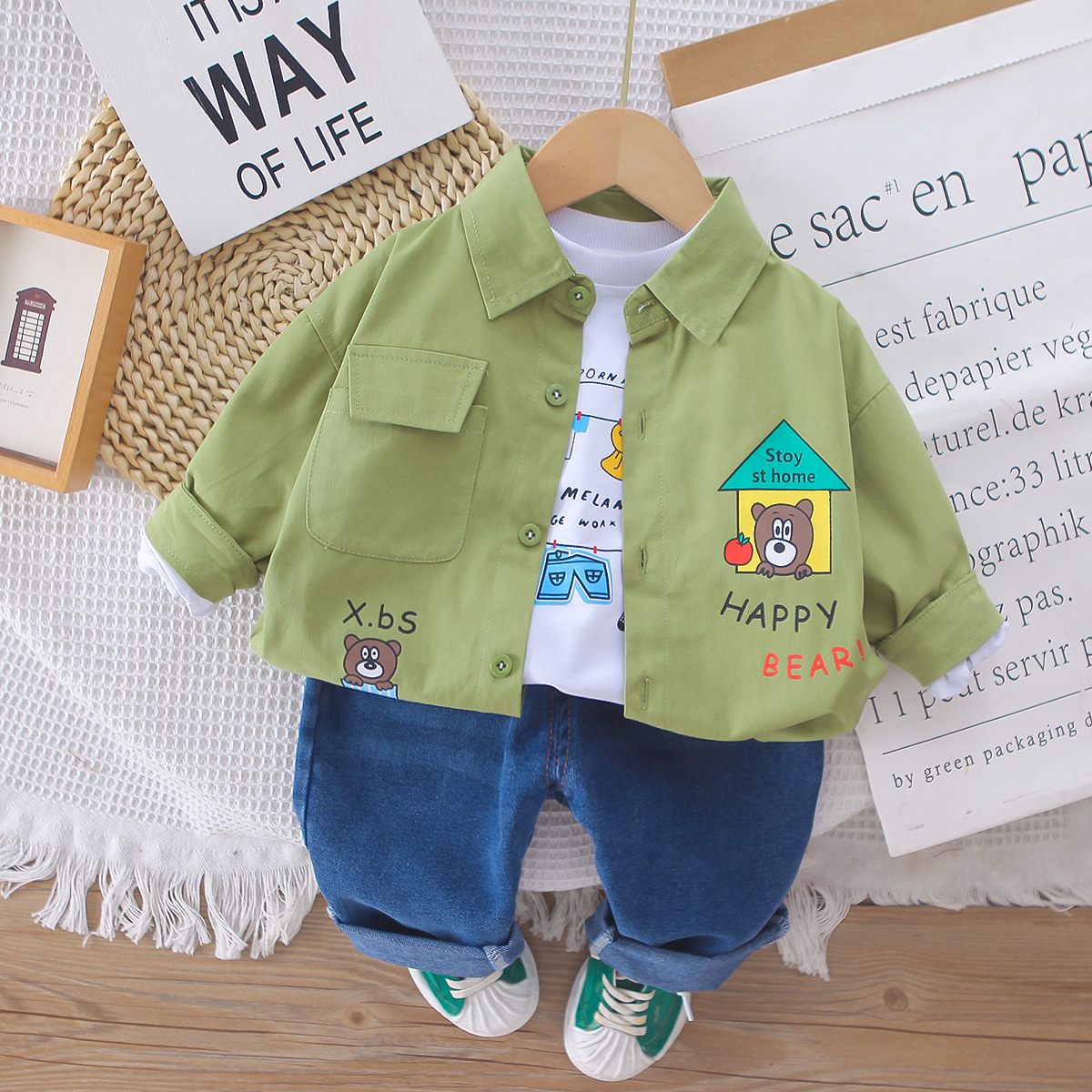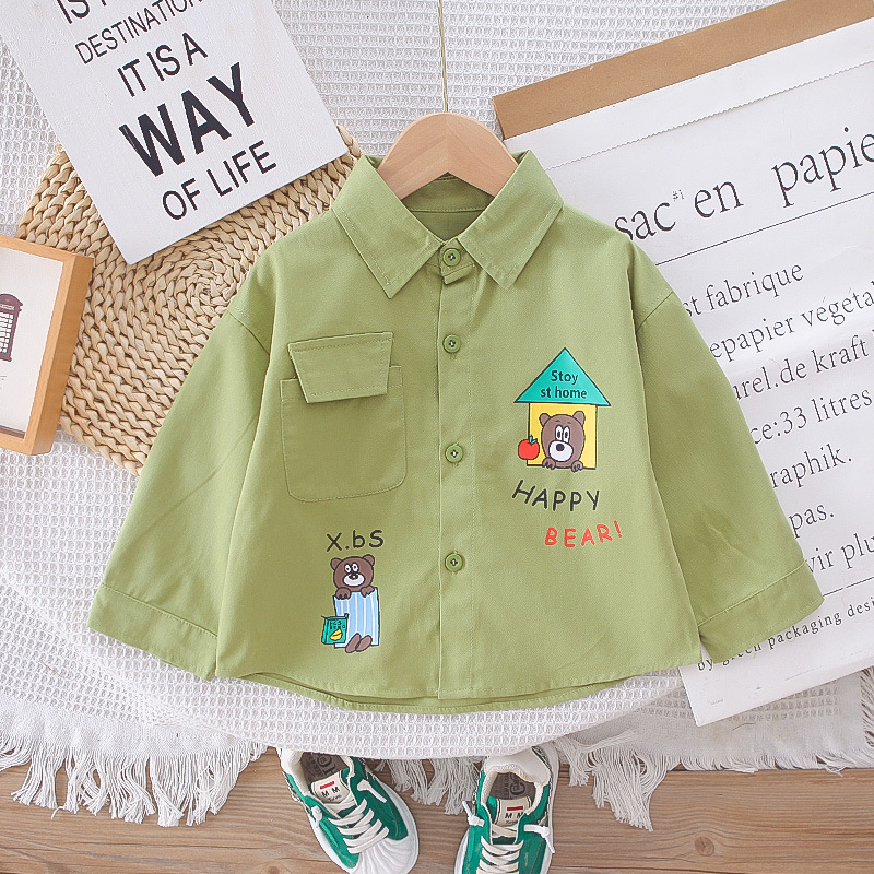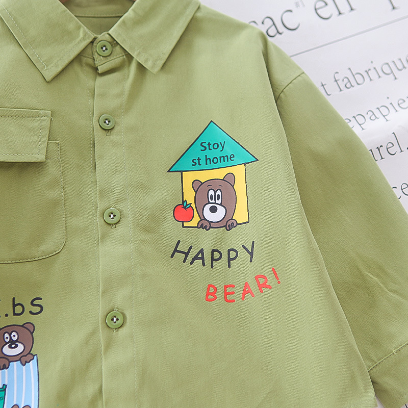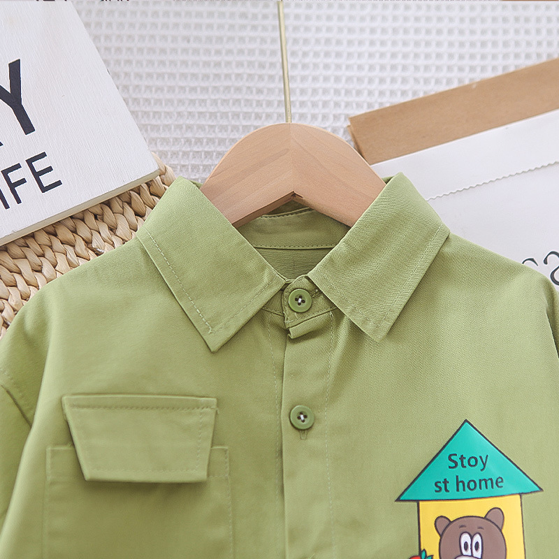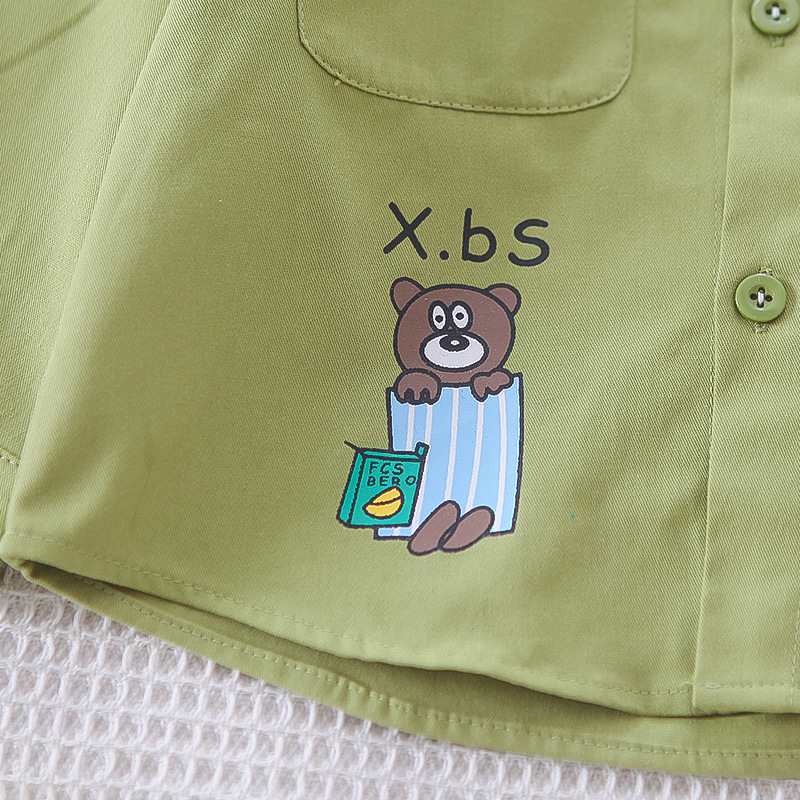 남자들의 봄 패션 셔츠 세트 2025 봄과 가을 새 소년 아기 한국식 셔츠 코트 3 피스 세트 트렌디스토어 가기
