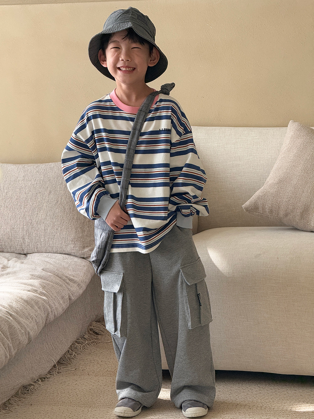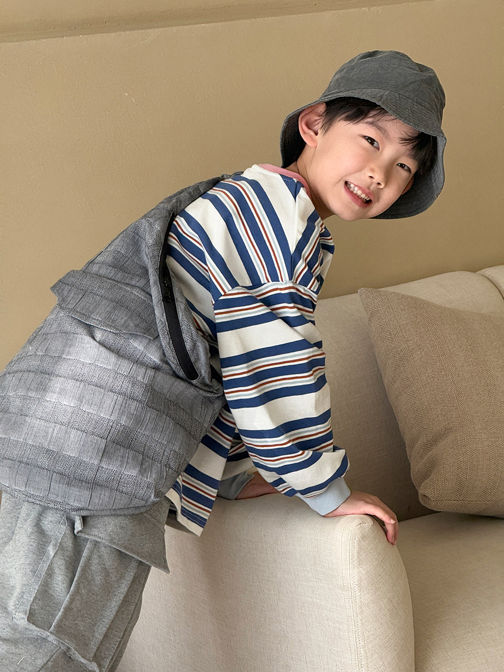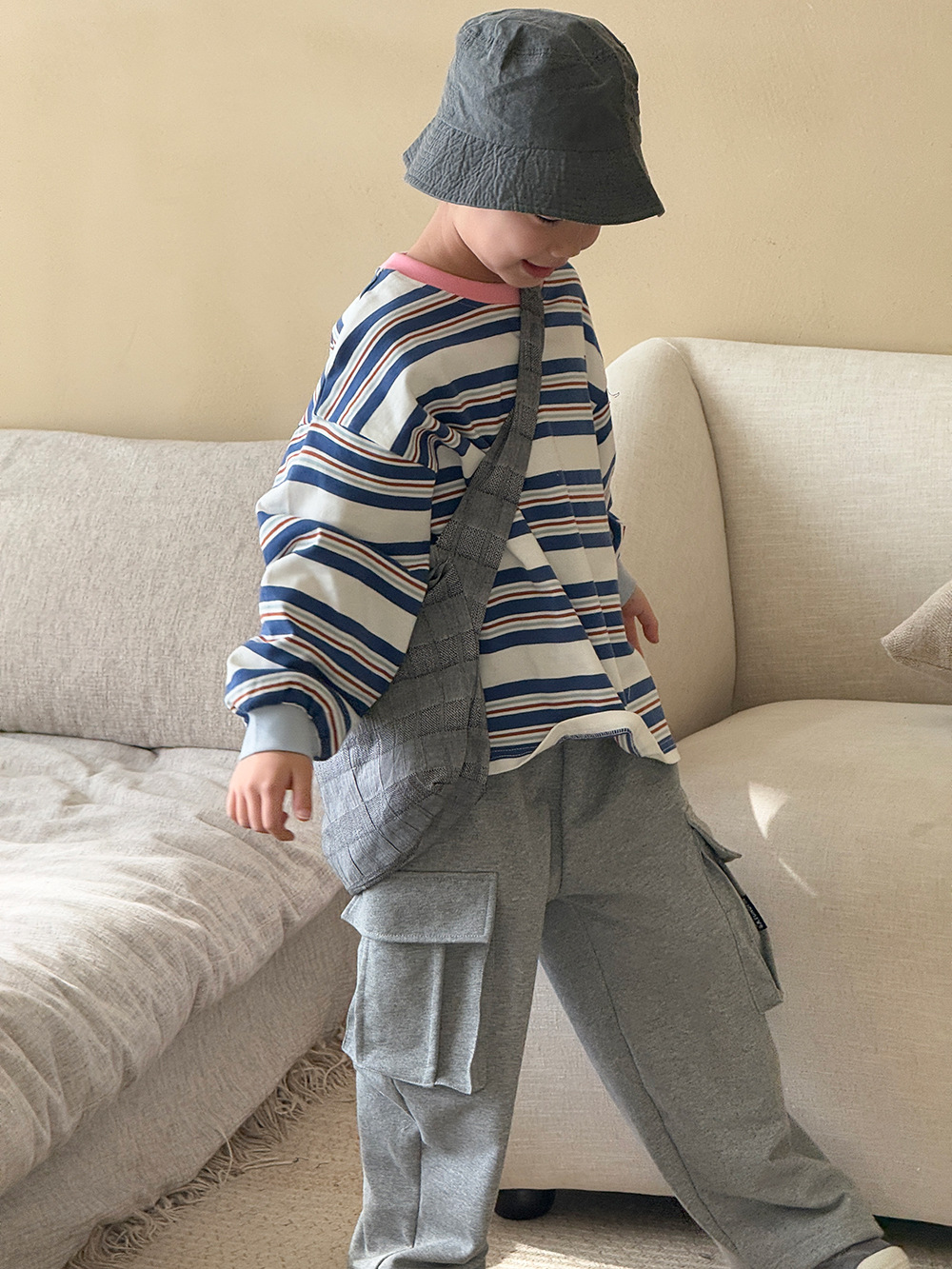 남자들의 긴 소매 티셔츠 봄 2024 새로운 아동복 어린이 여성 아기 줄무늬 느슨한 탑 외부 착용베이스 셔츠 T