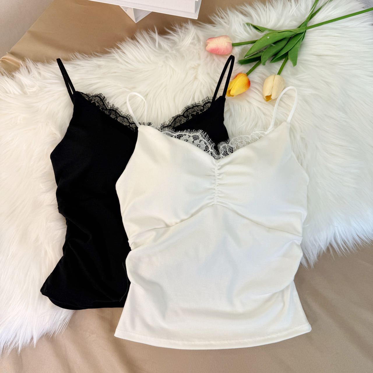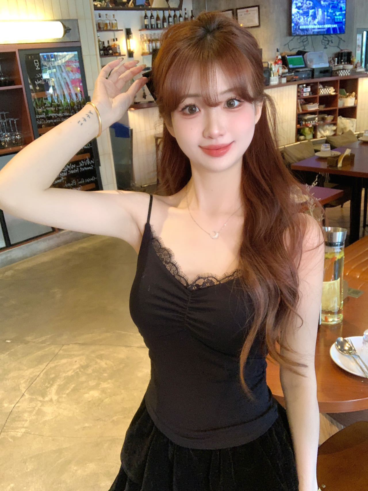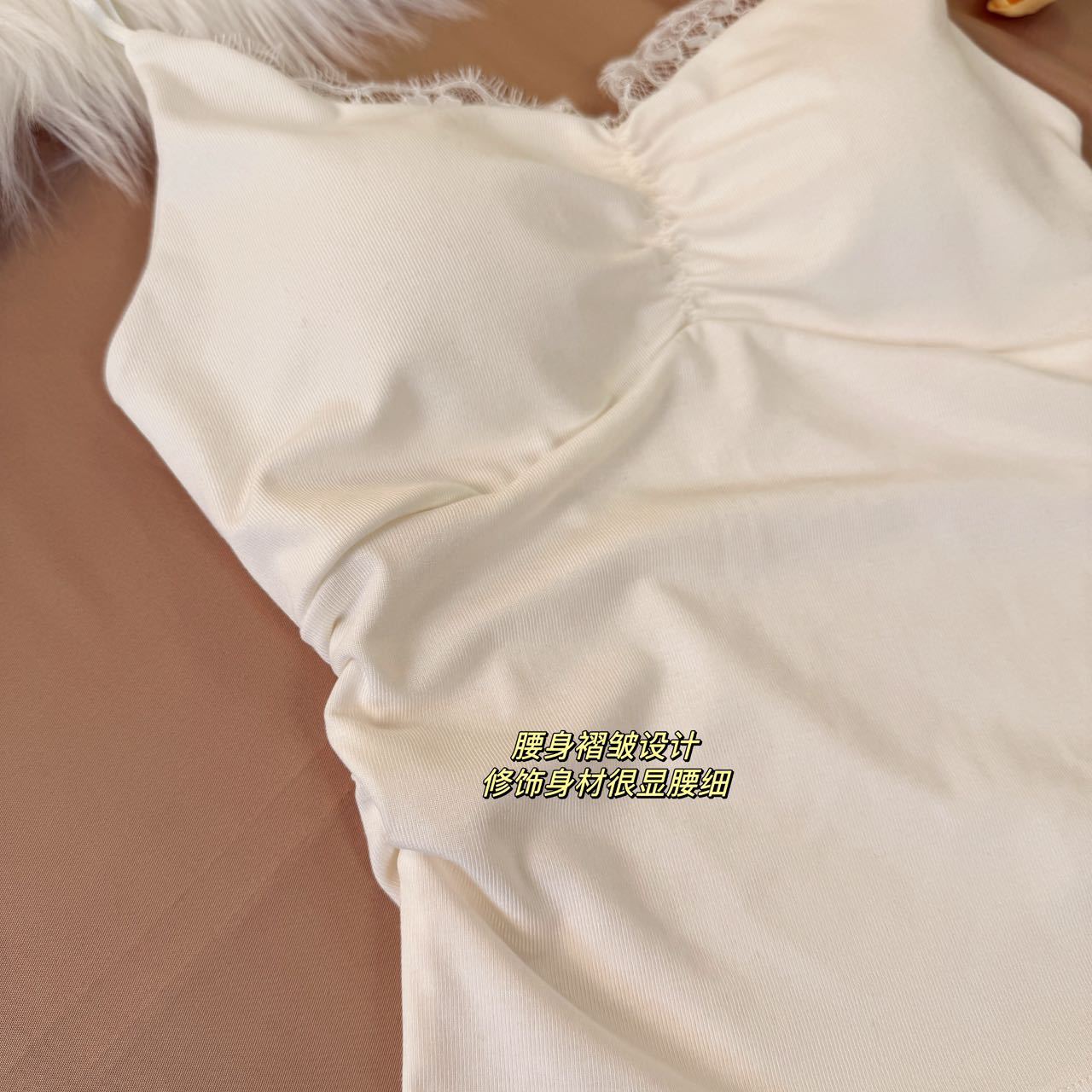 2025 새로운 레이스 스트랩 고정 원피스 코스터 순수 인테리어 조끼 V 넥 허리 슬리밍 올 매치 탑