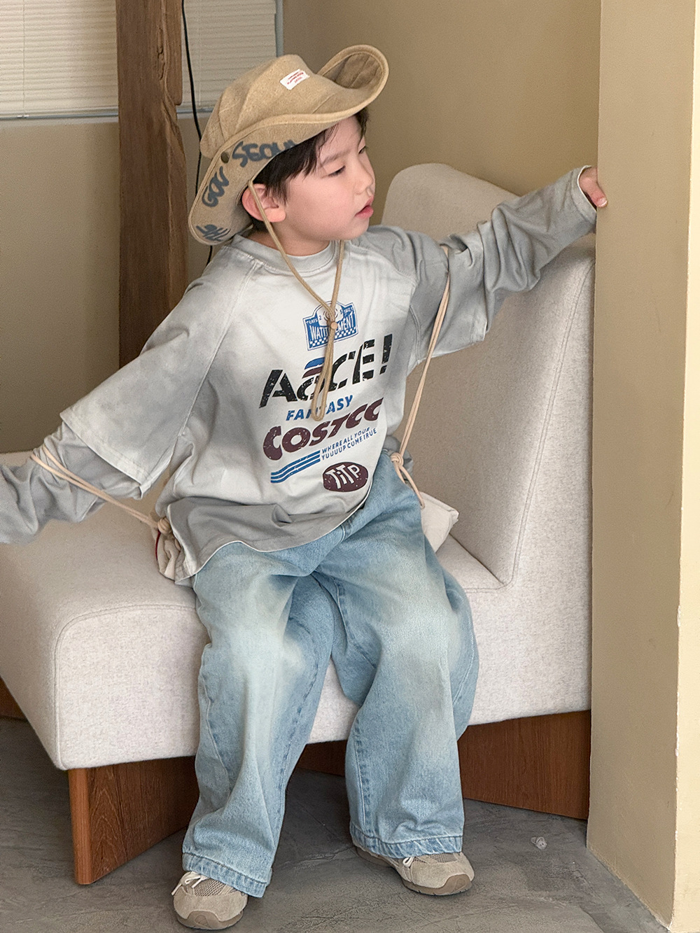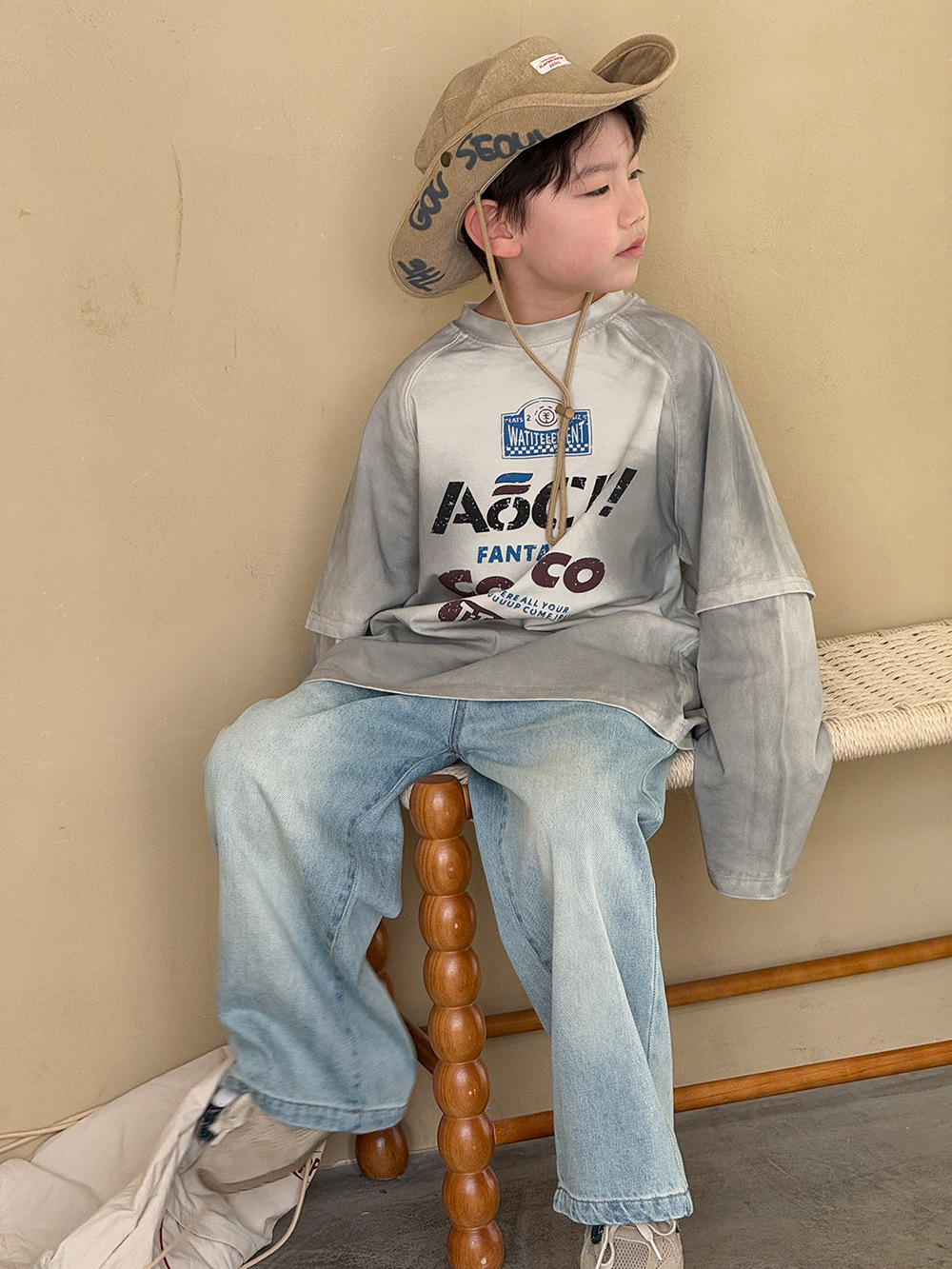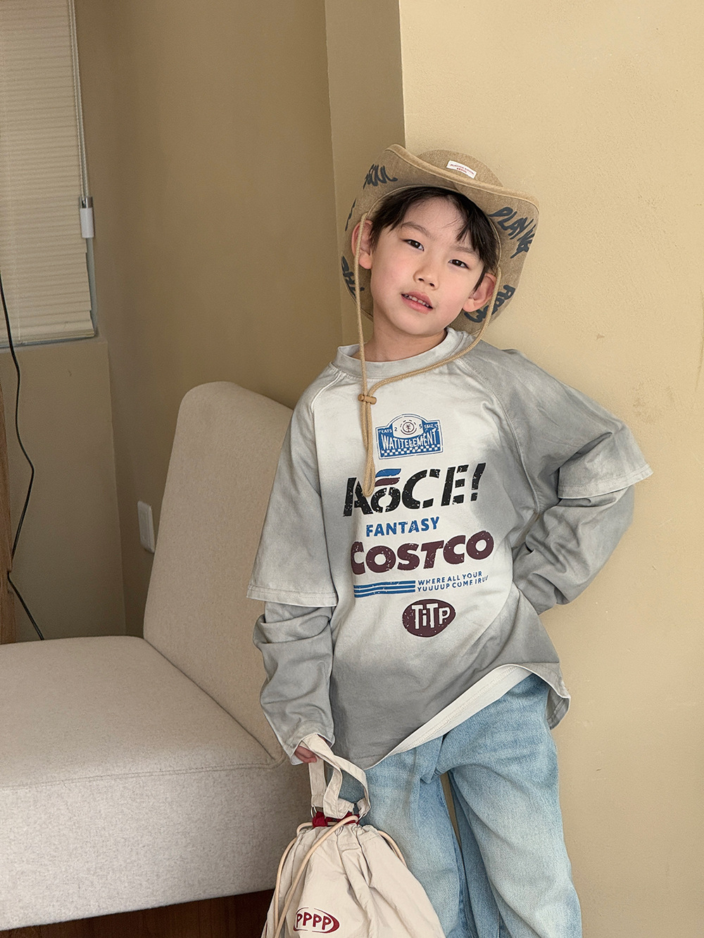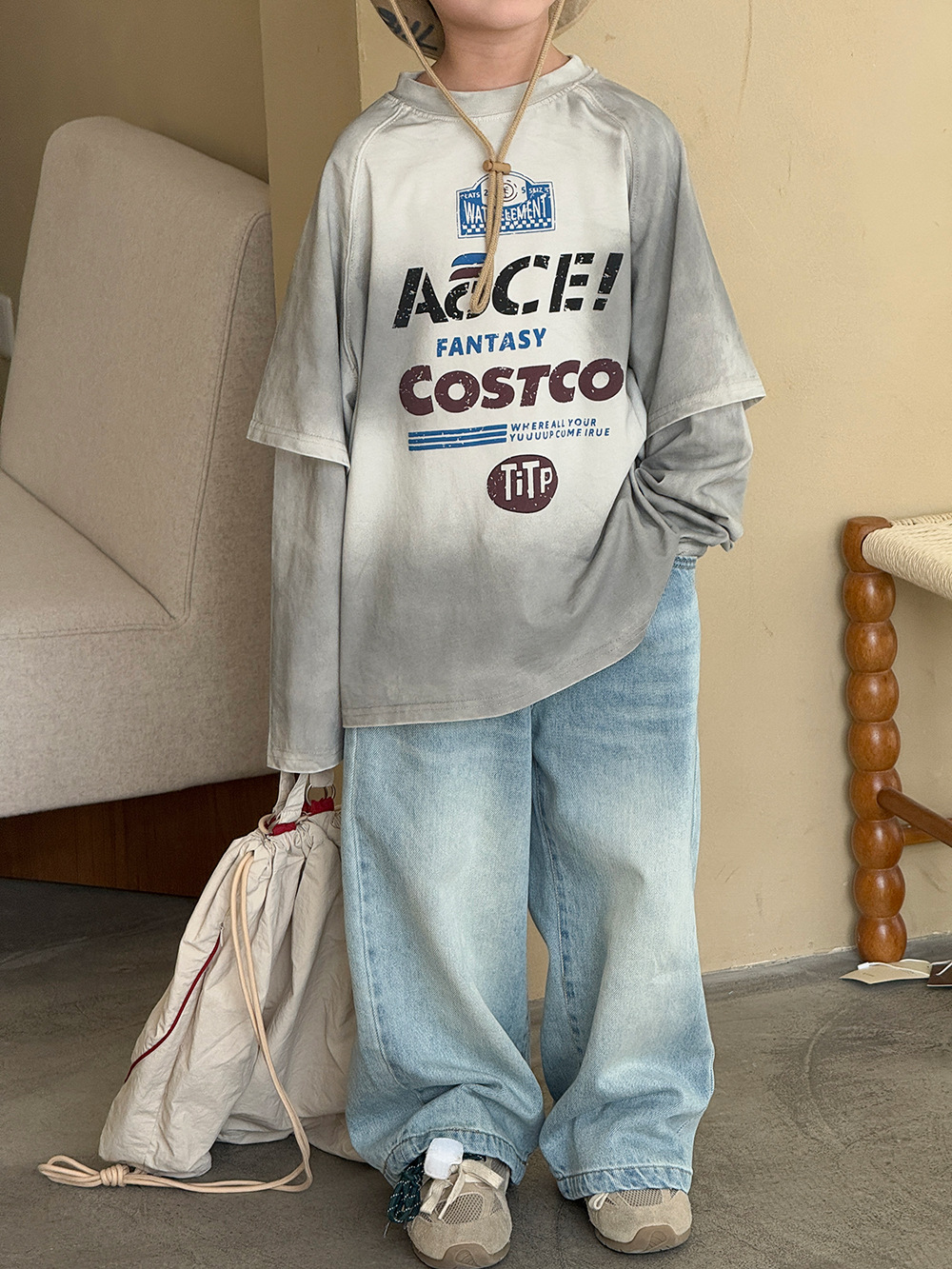 남학생 긴팔 티셔츠 2025 년 봄과 가을 새 가짜 투피스 소년 최고 서양식 편지 봄 아동베이스 셔츠 T스토어 가기