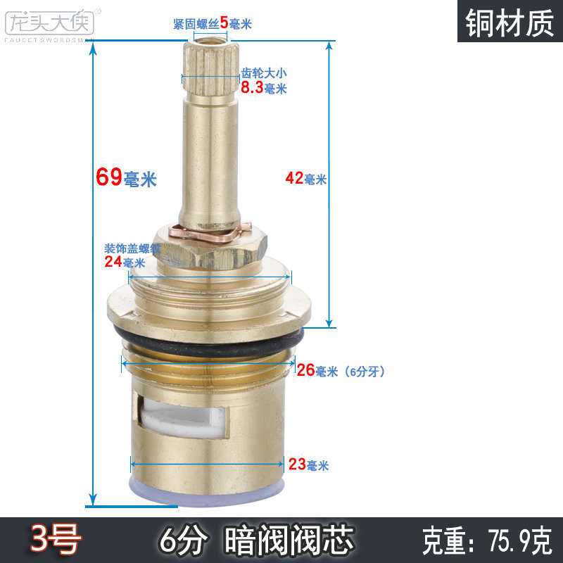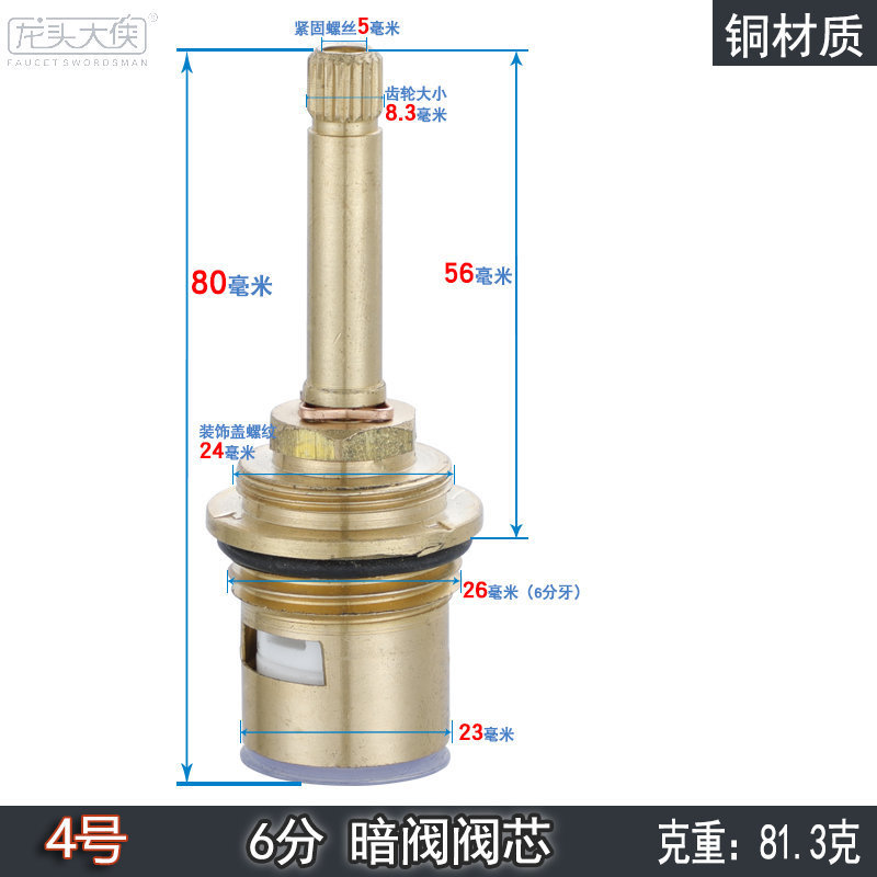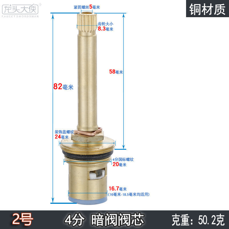 4分暗阀阀芯6分水龙头陶瓷片阀芯截止阀阀芯铜加长阀芯水龙头配件