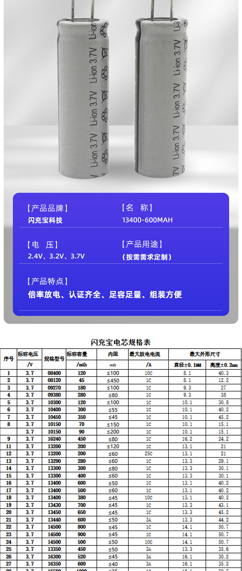 13400 용량 성 리튬 배터리 미용 악기 어린이 장난감 리튬 배터리 물 어머니 램프 공장 맞춤형 3.7V