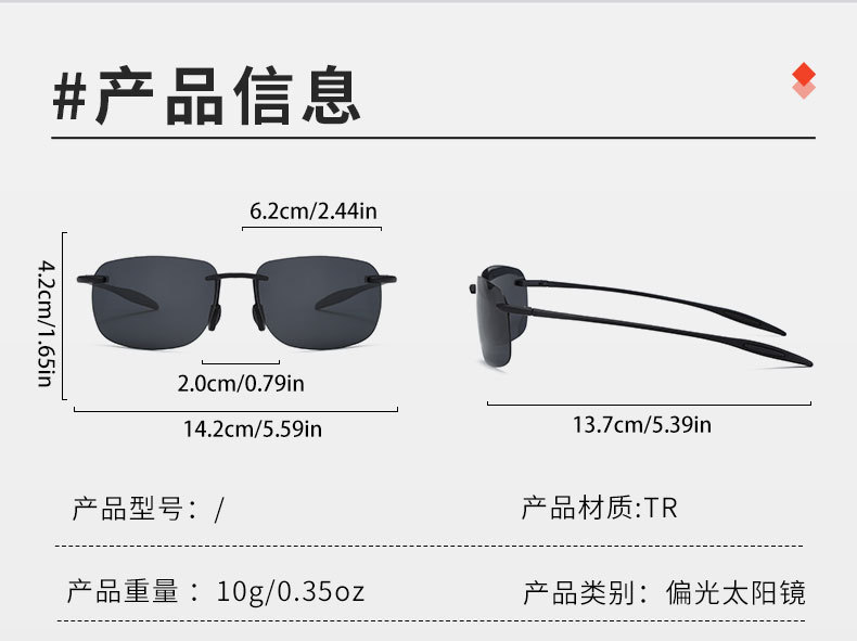 TR 프레임리스 편광 선글라스 남성 국경 아마존 경량 UV 보호 TAC 스벤 선글라스
