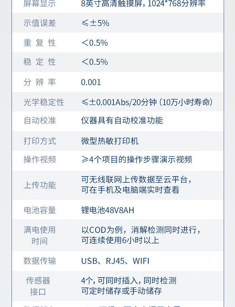 휴대용 COD 탐지기 수질 암모니아 질소 총 인 질소 총 다중 매개 변수 빠른 분석 중금속 결정 기기