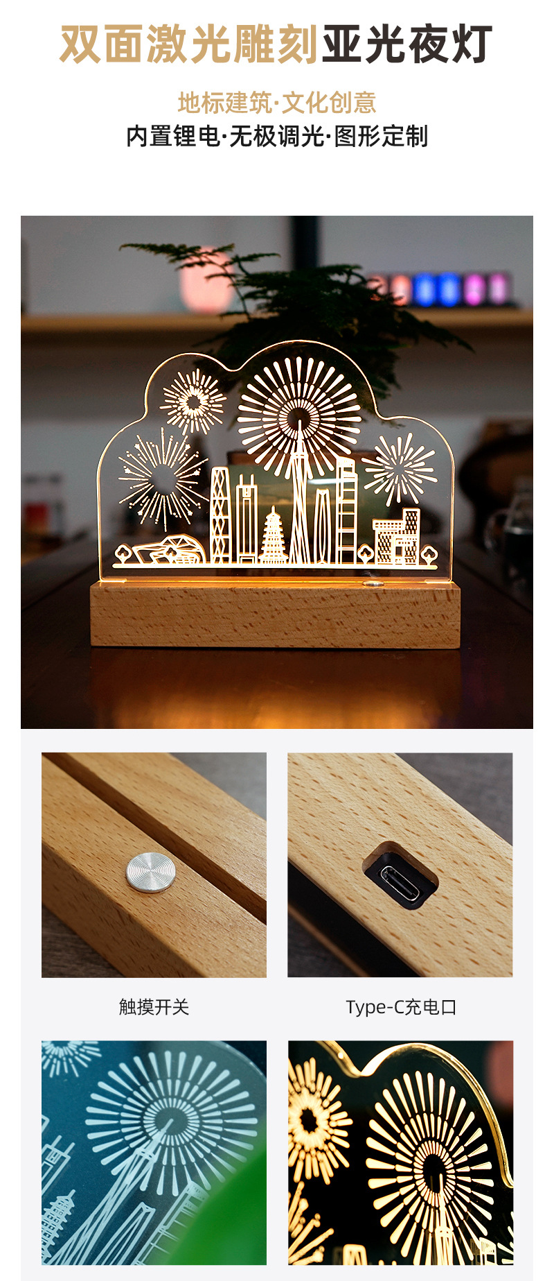 창조적 인 장식품 밤 빛 도시 문화 및 창조적 인 선물 여행 아크릴 밤 빛 사용자 정의 양면 레이저 마킹스토어 가기
