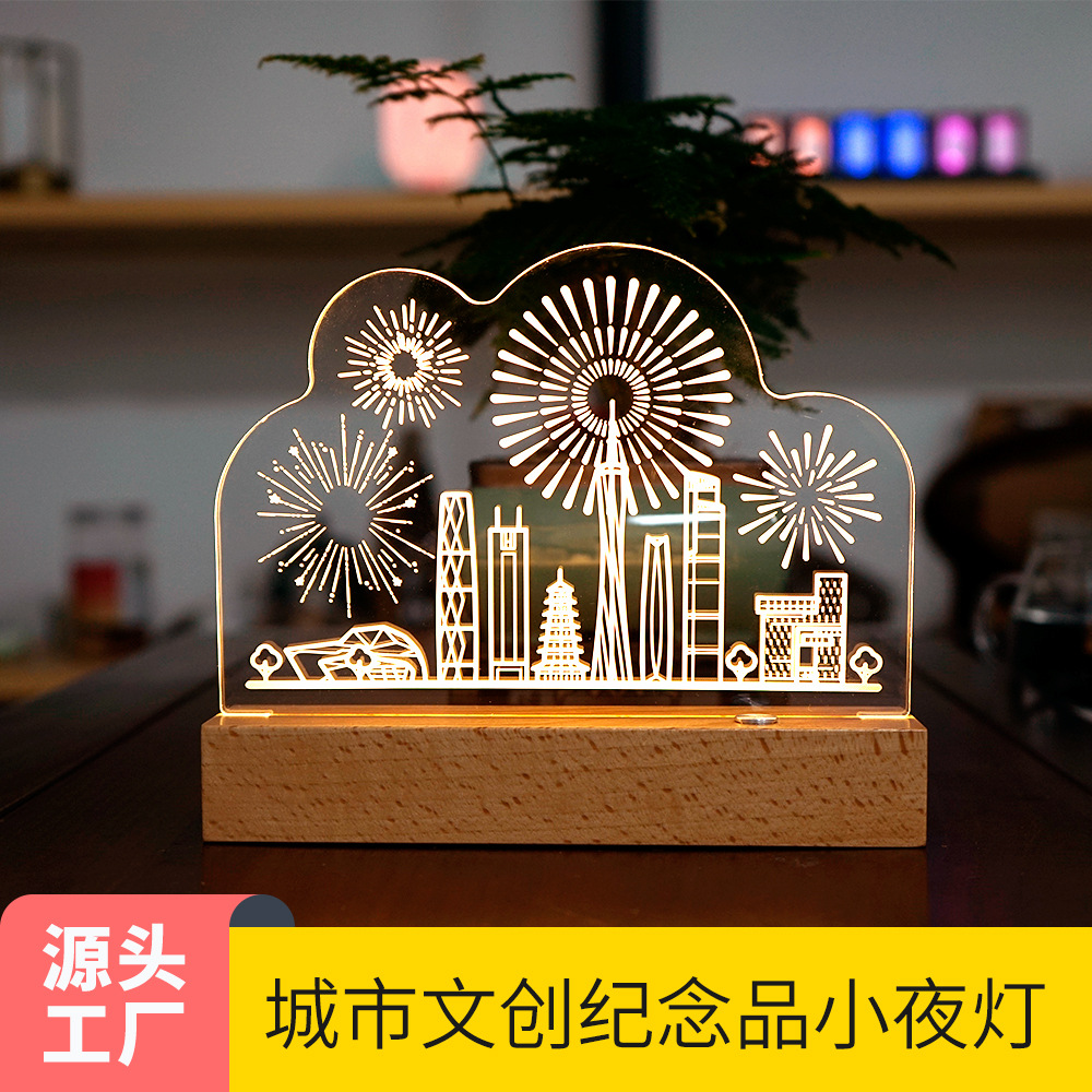창조적 인 장식품 밤 빛 도시 문화 및 창조적 인 선물 여행 아크릴 밤 빛 사용자 정의 양면 레이저 마킹