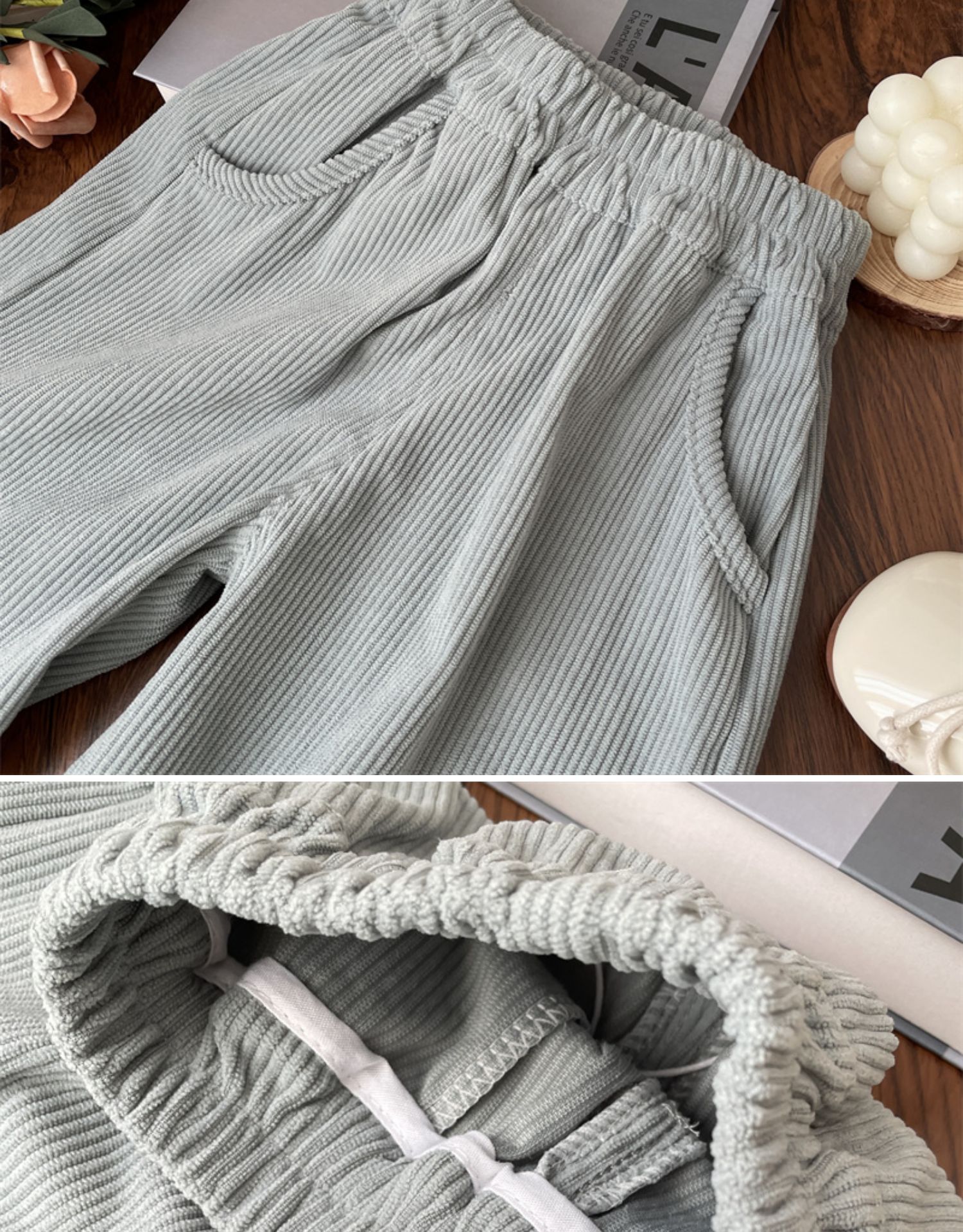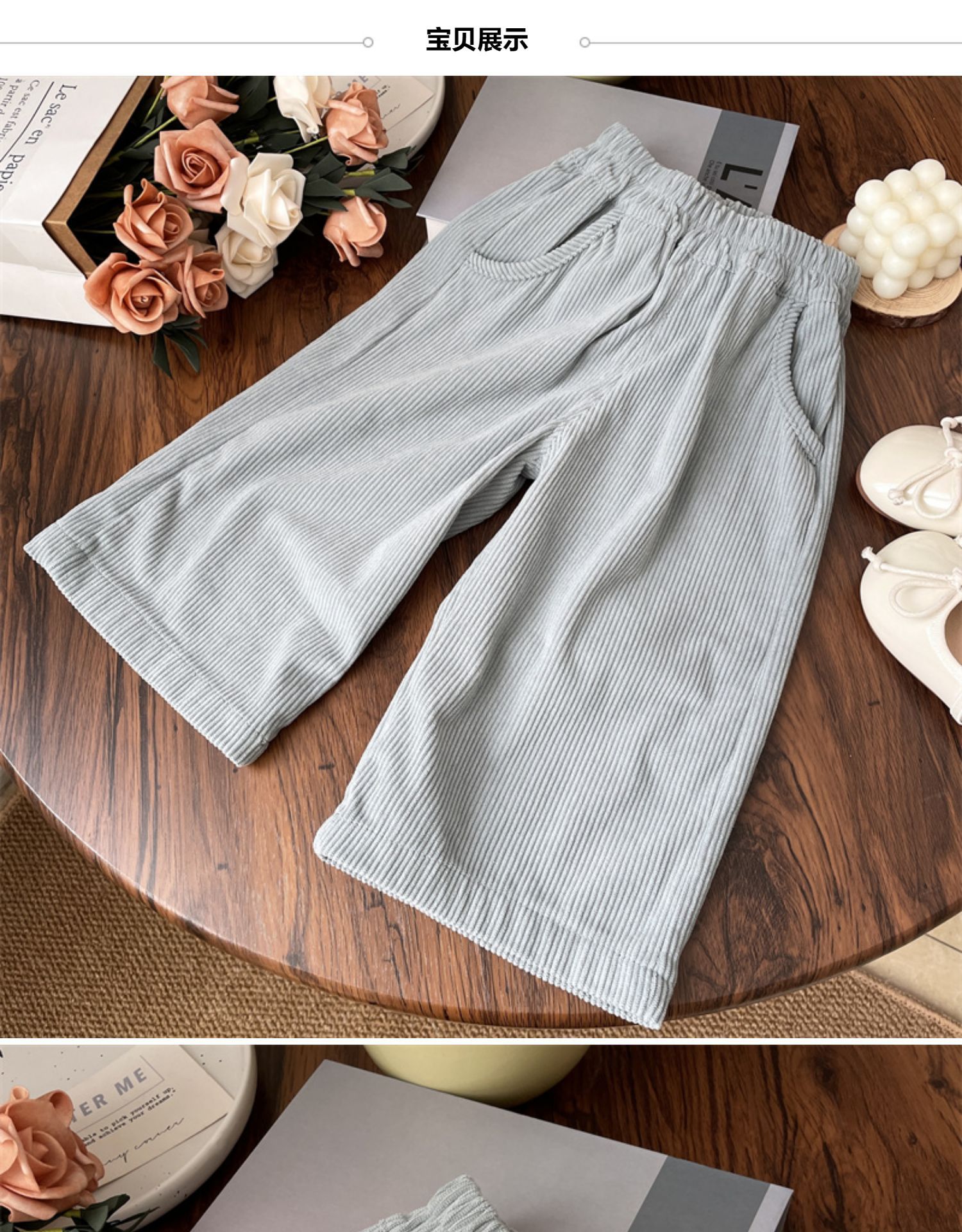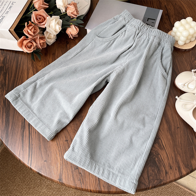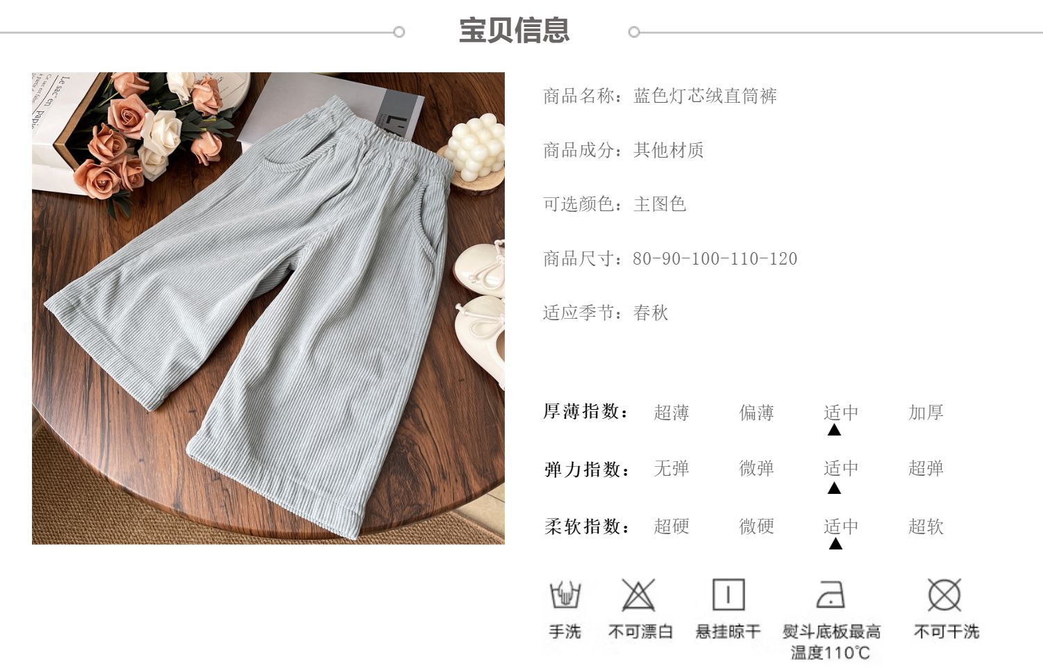 봄과 가을 아기 블루 코듀로이 스트레이트 다리 바지 소녀 코듀로이 와이드 레그 바지 어린이 바지 서양식 어린이 캐주얼 바지스토어 가기