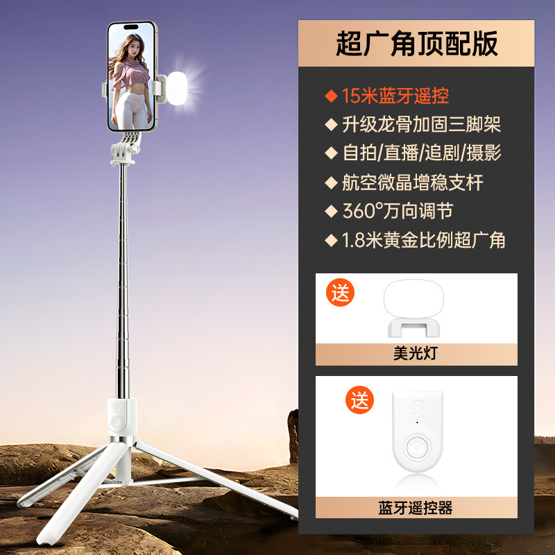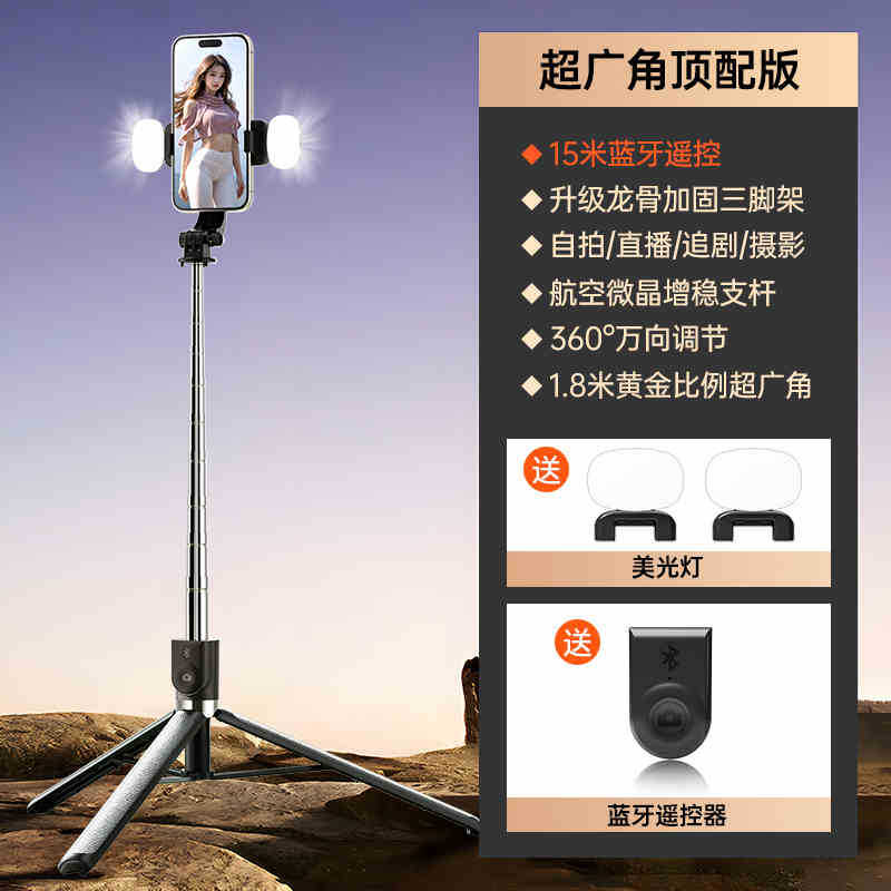 [국경 간 폭발] 1.8 m 셀카 스틱 블루투스 원격 제어 대담한 삼각대 빛 채우기 빛 라이브 여행 필수스토어 가기