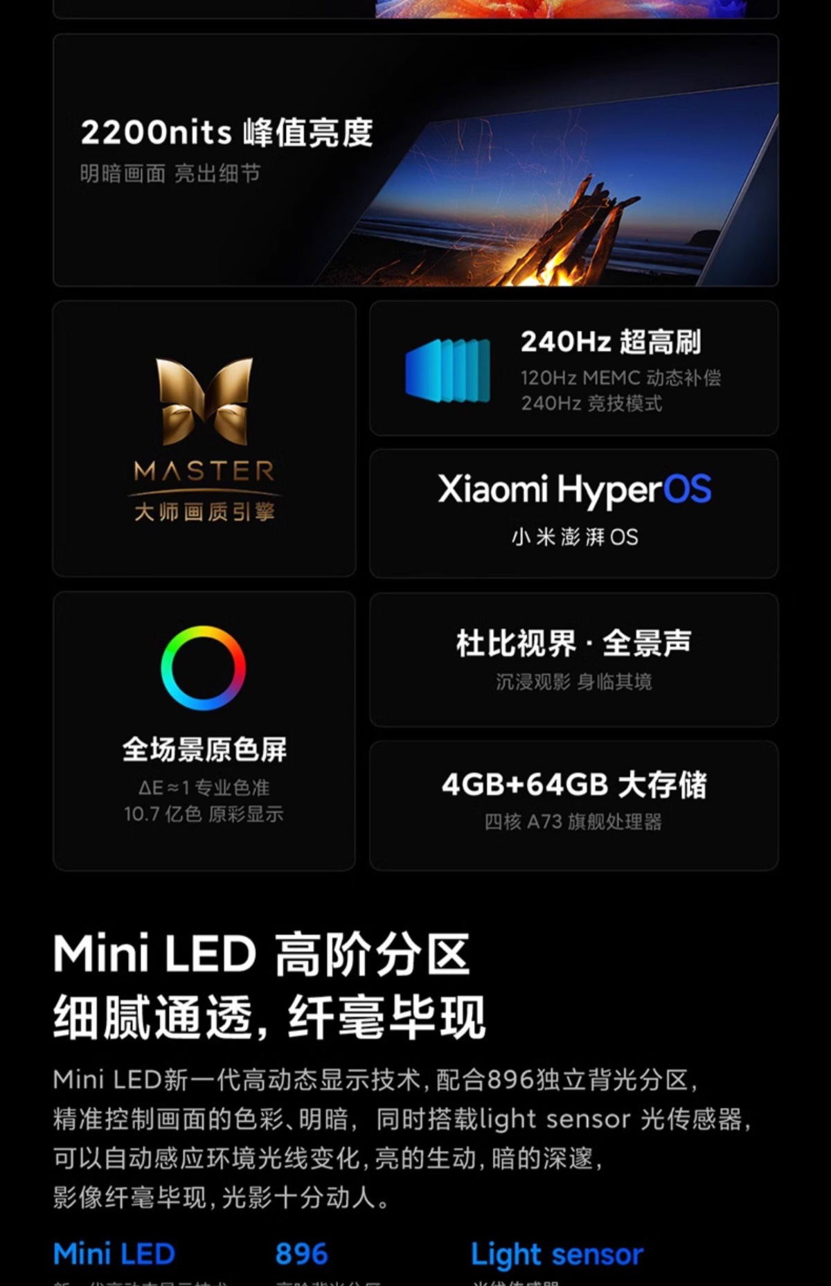 TV SPro MiniLED 65inch 하이존 플랫스크린 TV 가정용 스마트 음성 제어스토어 가기