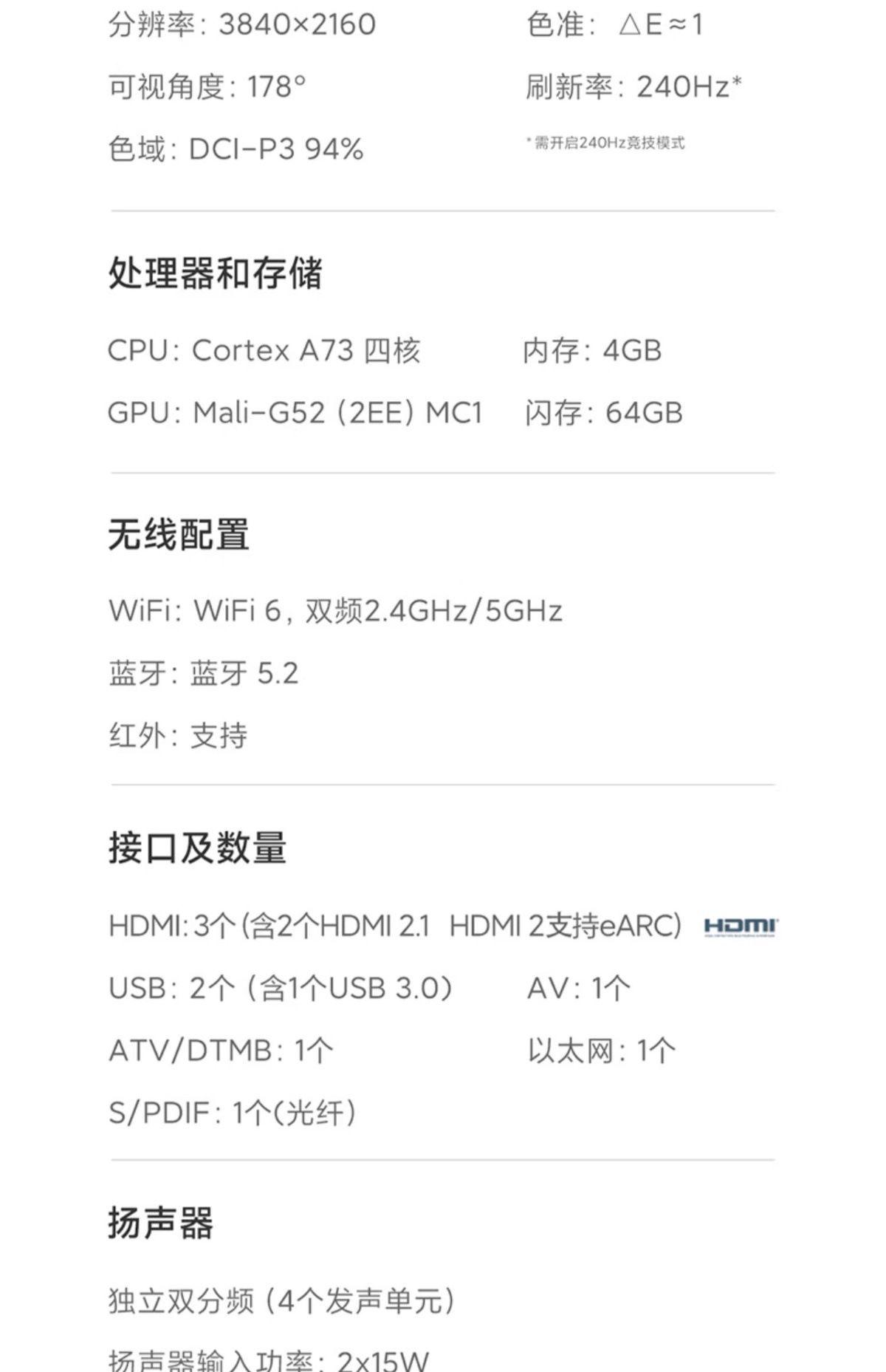 TV SPro MiniLED 65inch 하이존 플랫스크린 TV 가정용 스마트 음성 제어
