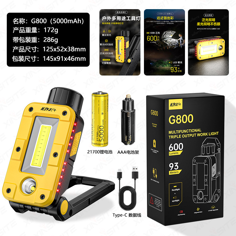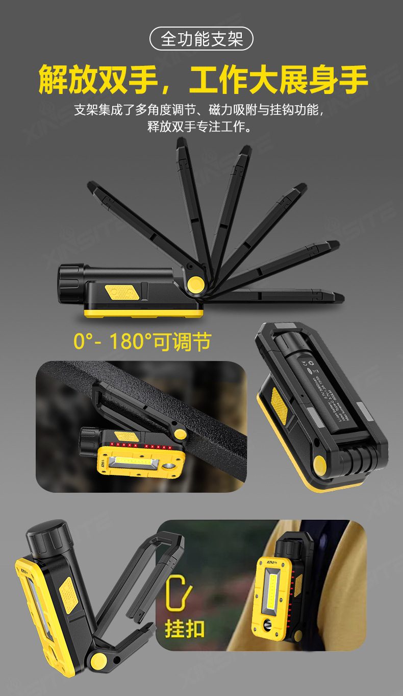 국경 간 새로운 COB 접이식 작업 조명 USB 충전 자석 LED 장거리 라이트 자동차 유지 보수 조명