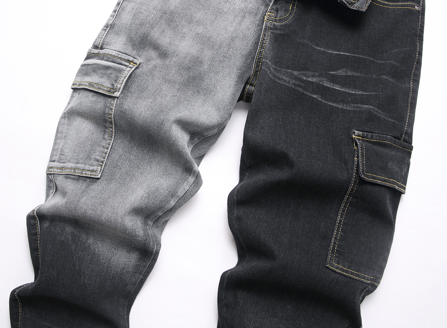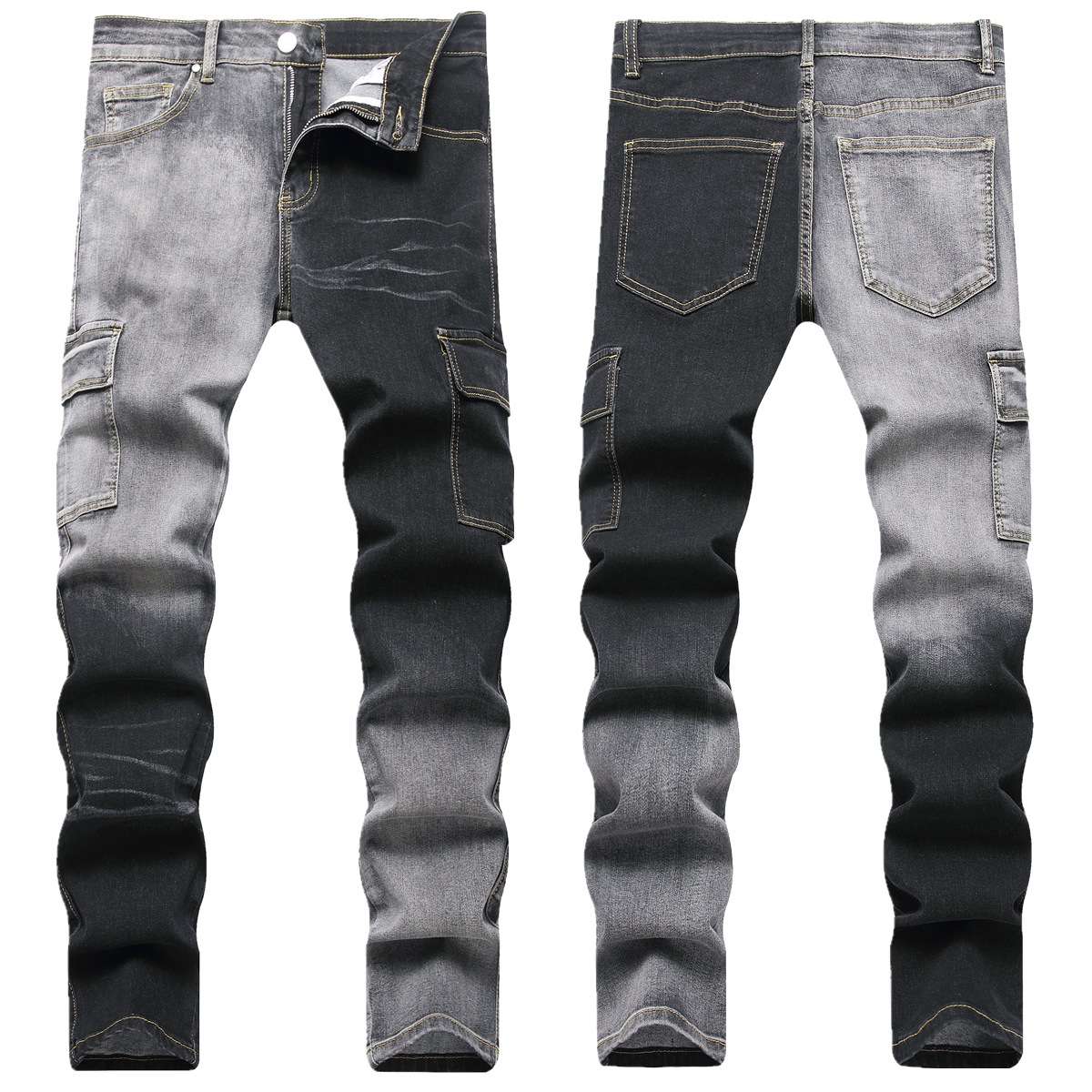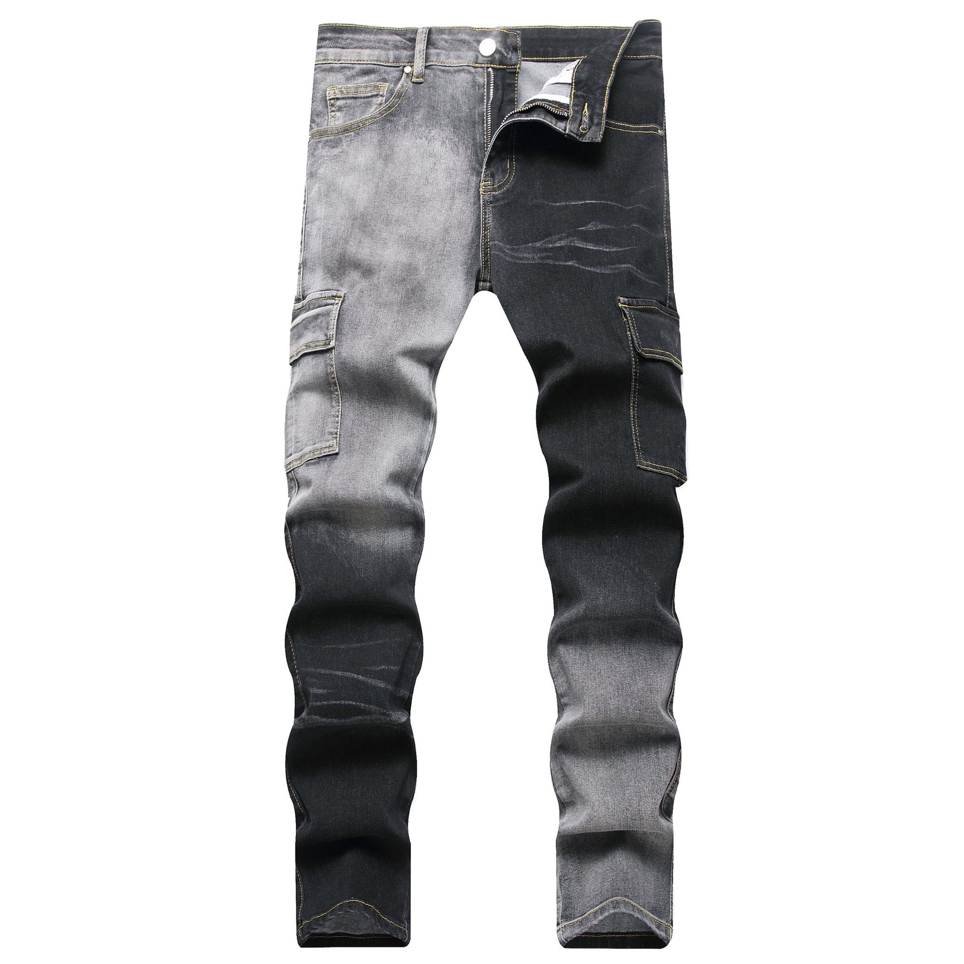 재고 공급 2025 년 유럽과 미국의 대외 무역 거리 조수 슬림 스트레이트 블랙 그레이 대비 아마존 남성 데님 바지