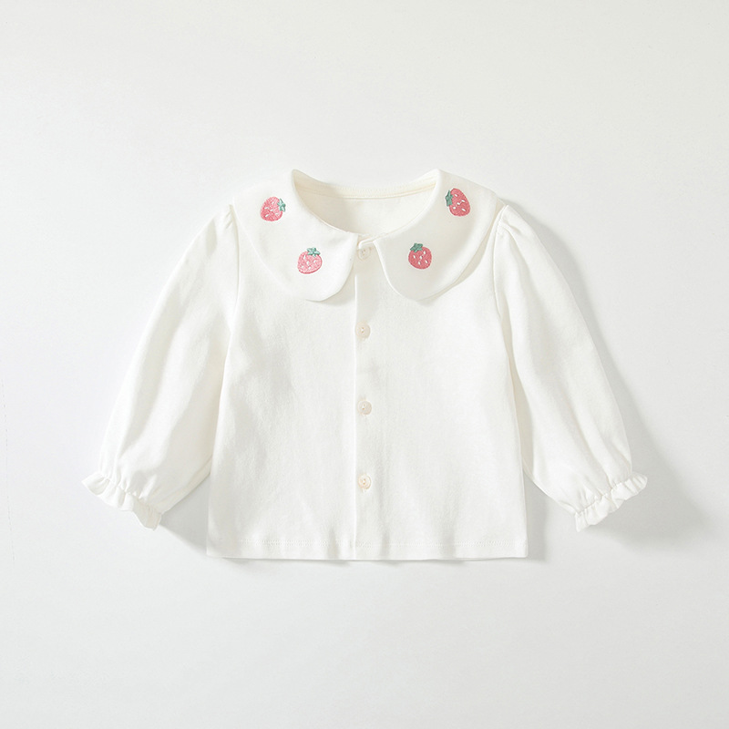 • 칼라 자수 딸기 밑단 셔츠 25C003-2